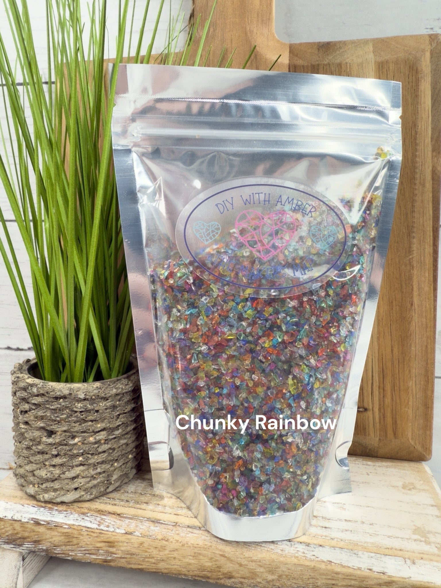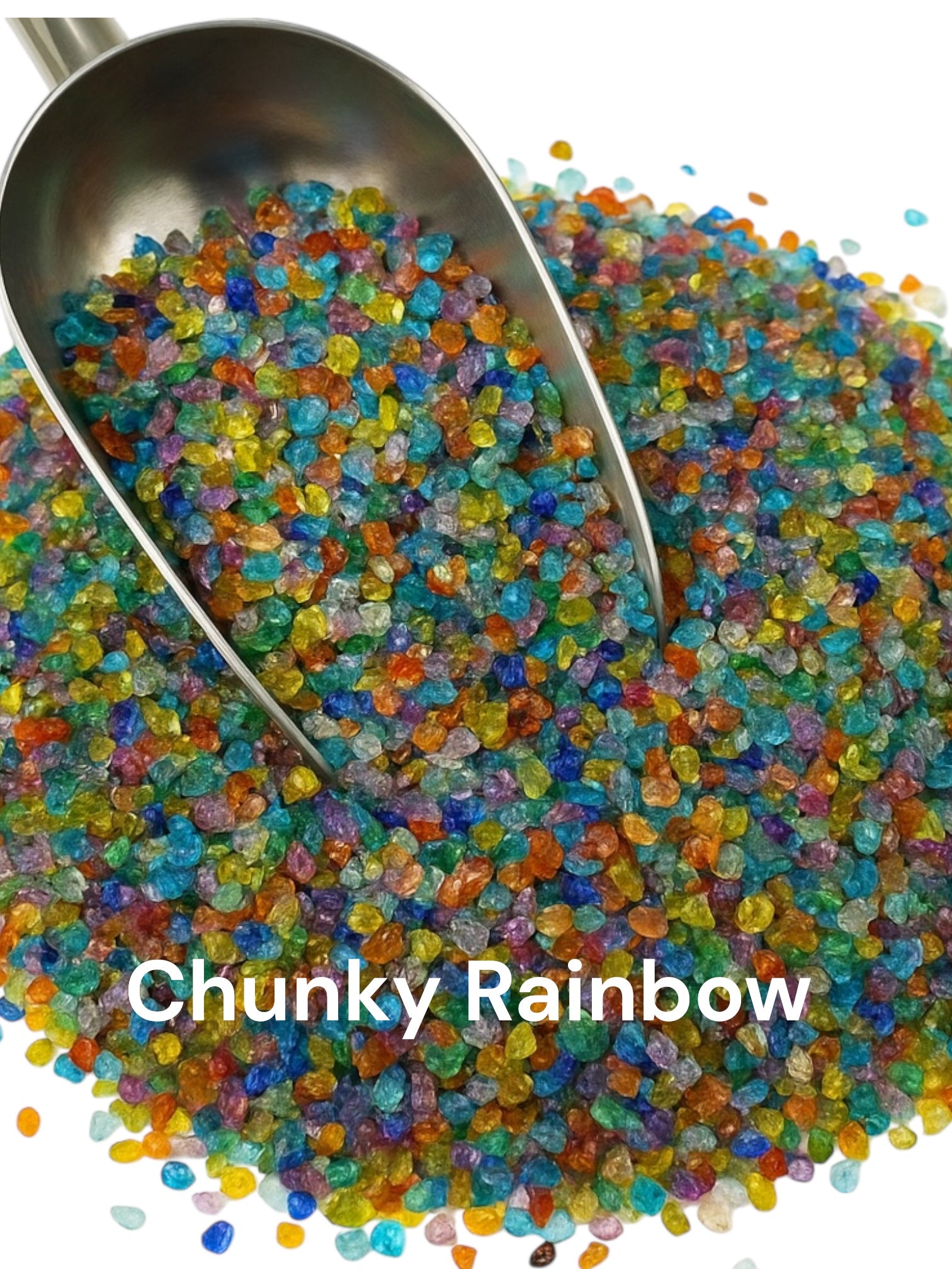 Add strength and elegance to your glass art projects with our 3-6 mm size CHUNKY Rainbow Crushed Glass.