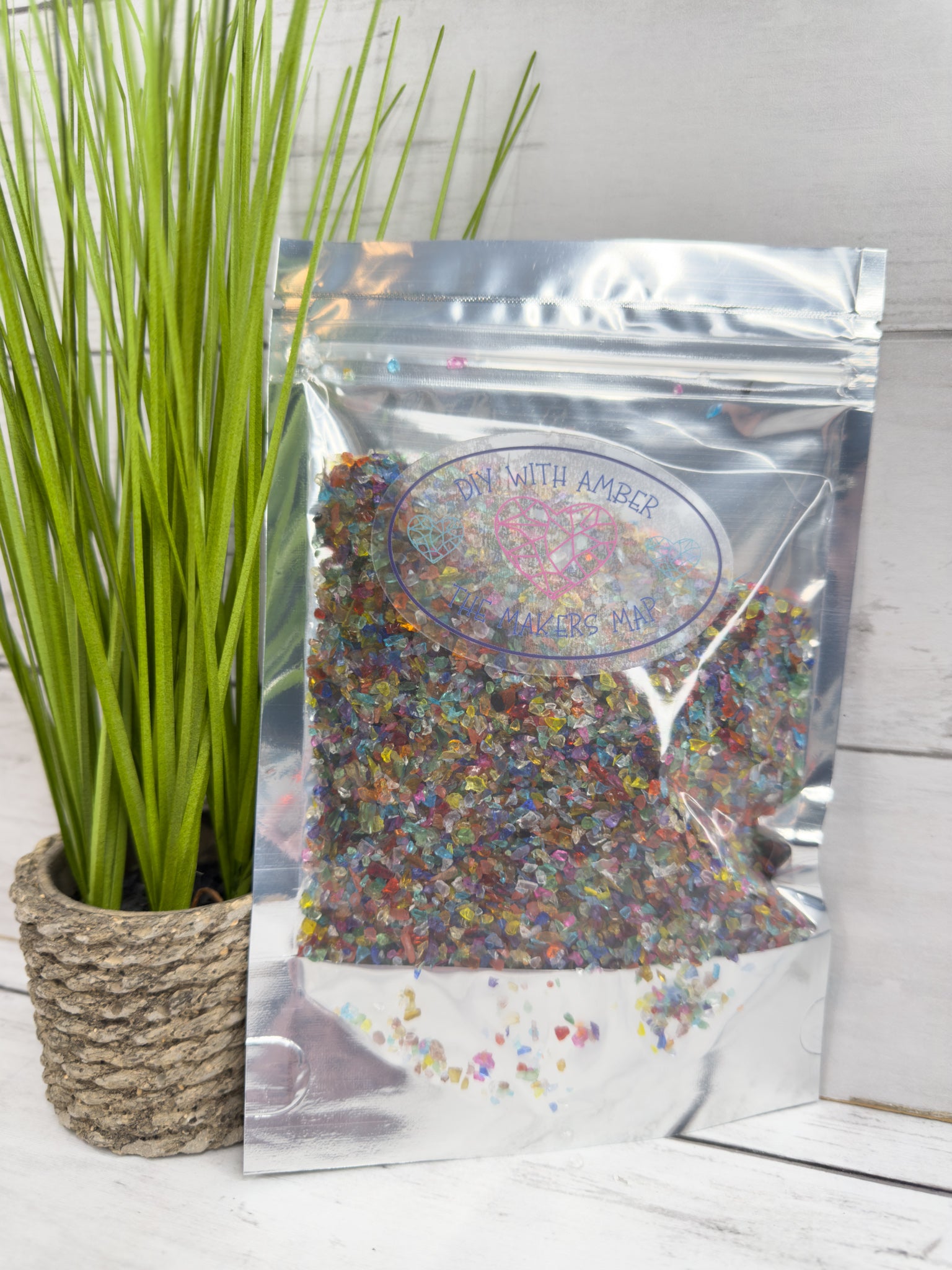 The size of our glass is 1-3 mm, meaning there are some very small pieces and some chunkier pieces. This makes our glass perfect for adding dimension & texture, the irregular shapes of the crushed glass give a unique look to resin art, mixed media, and many other home decor projects.