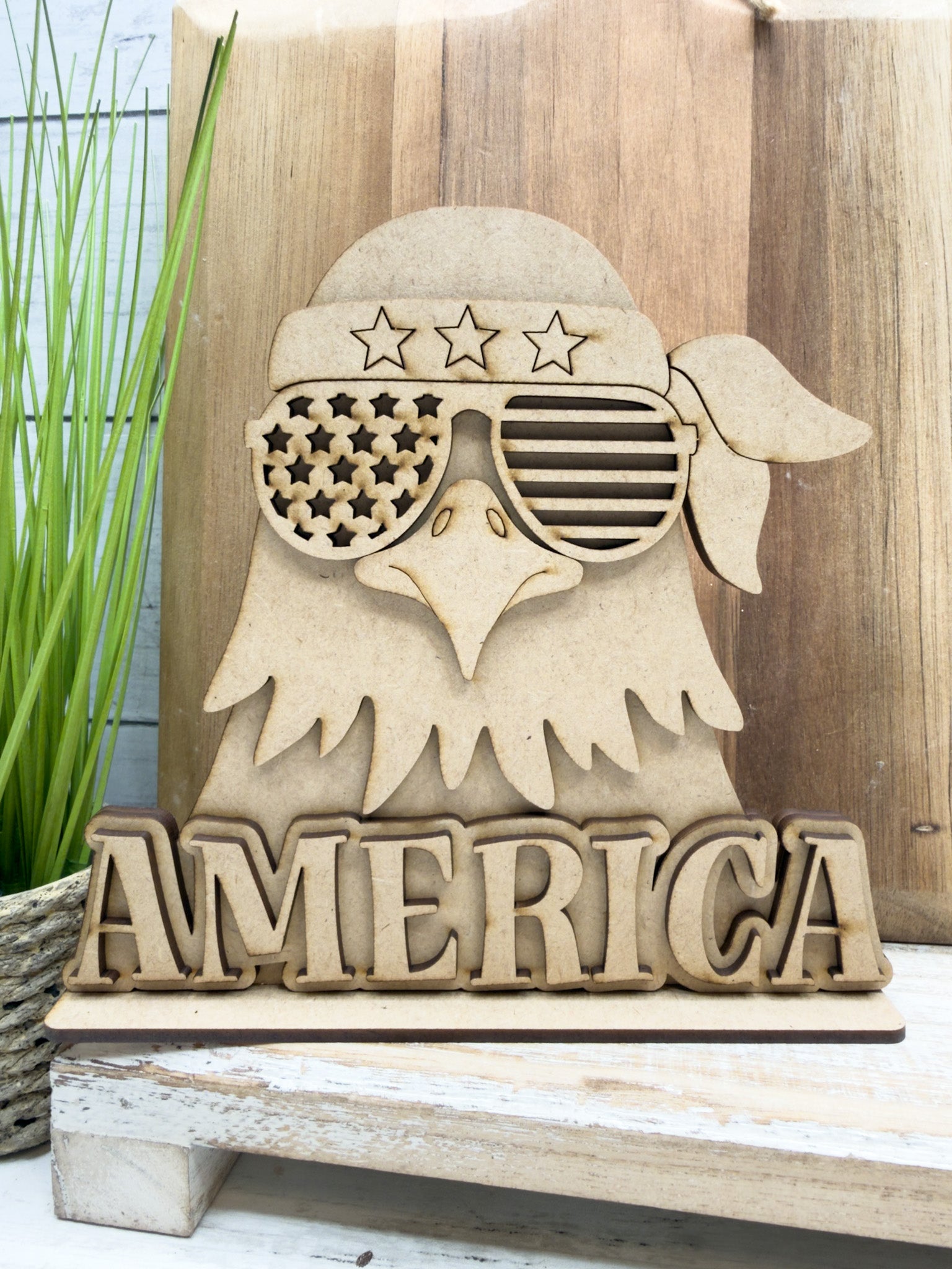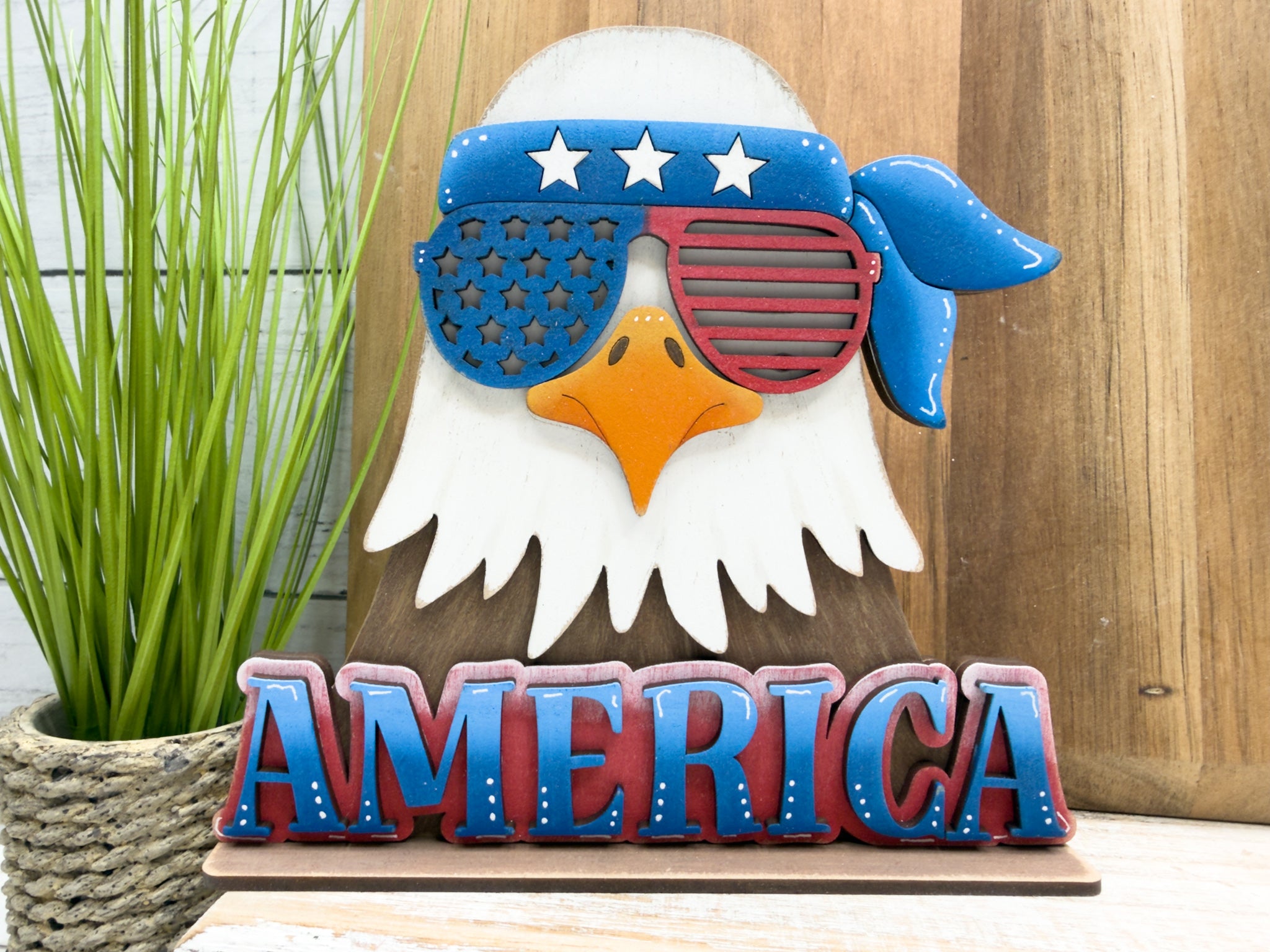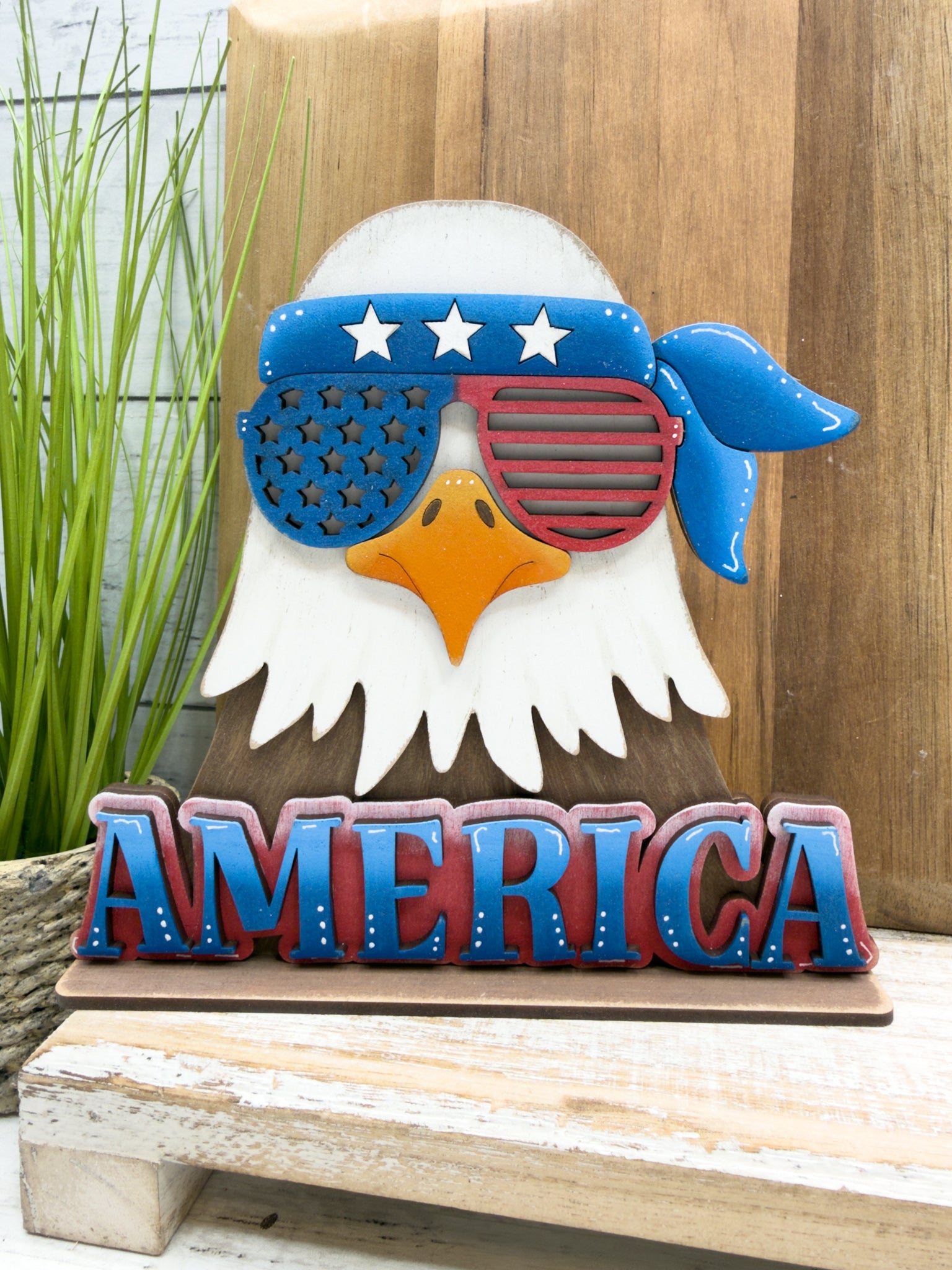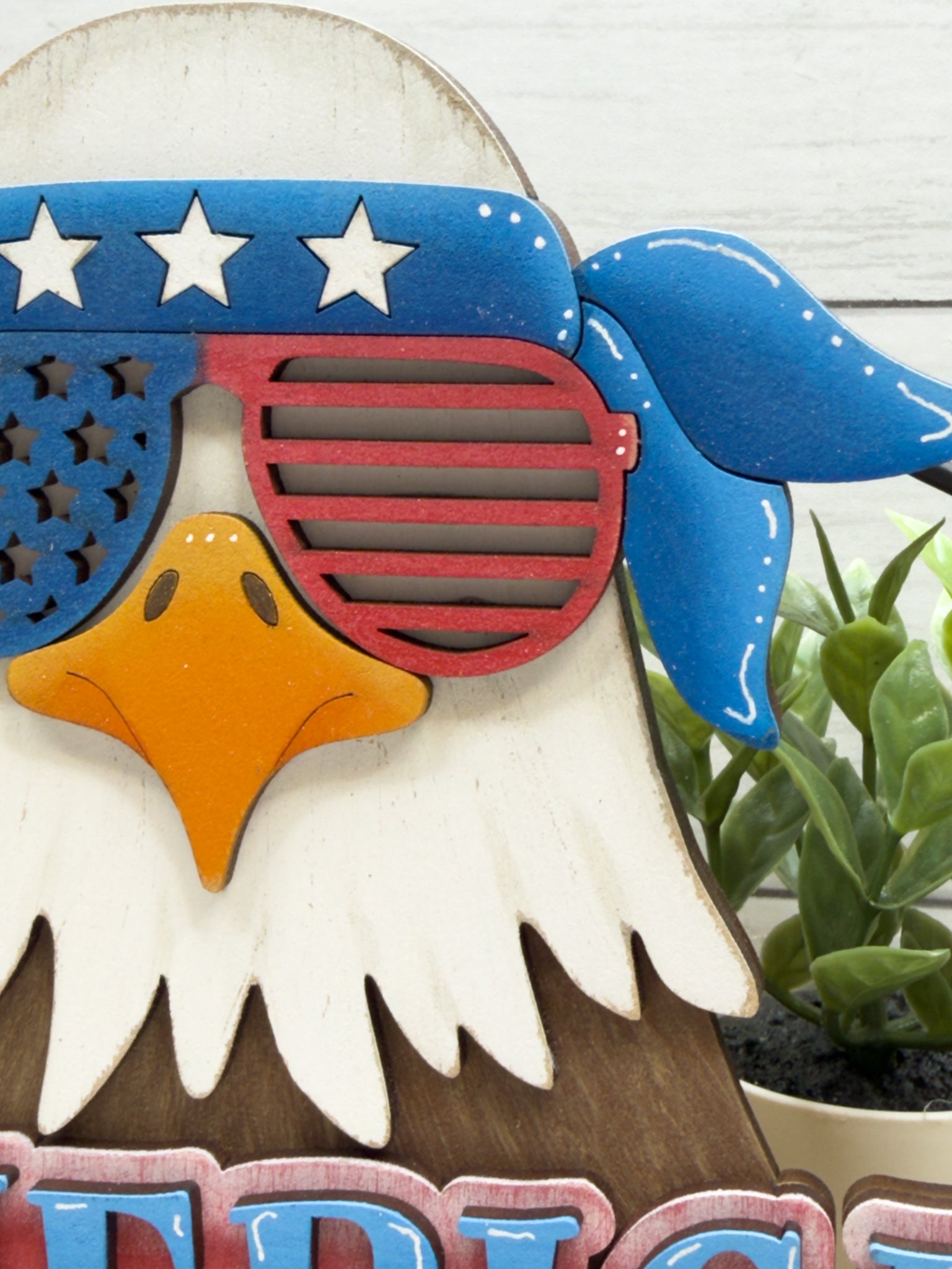 If you’re looking for something a little more bold and playful for your patriotic decor, this America Eagle Shelf Sitter DIY Kit is it. The eagle rocking flag sunglasses and a bandana gives it a fun, modern twist while still keeping that classic red, white, and blue feel.