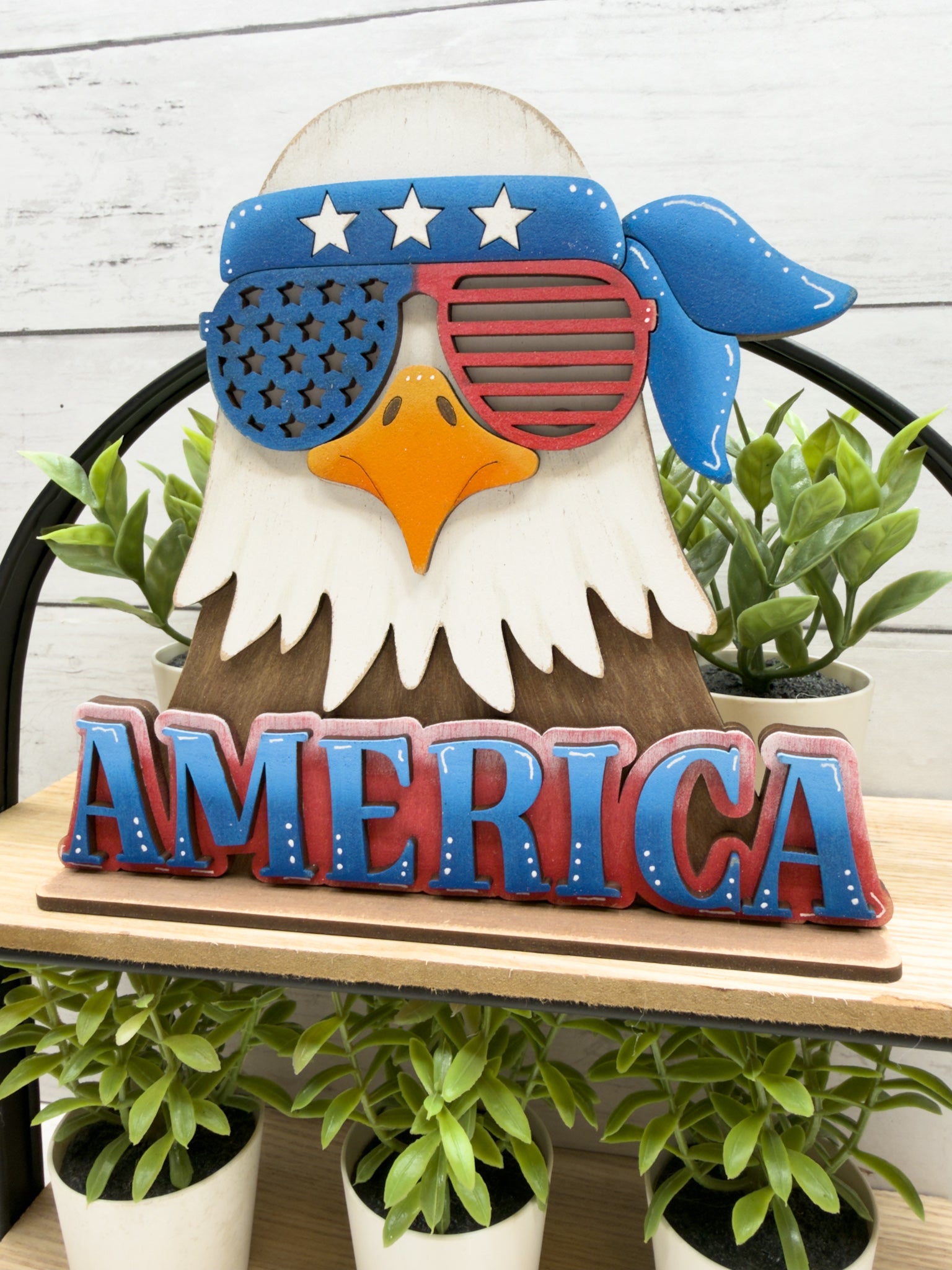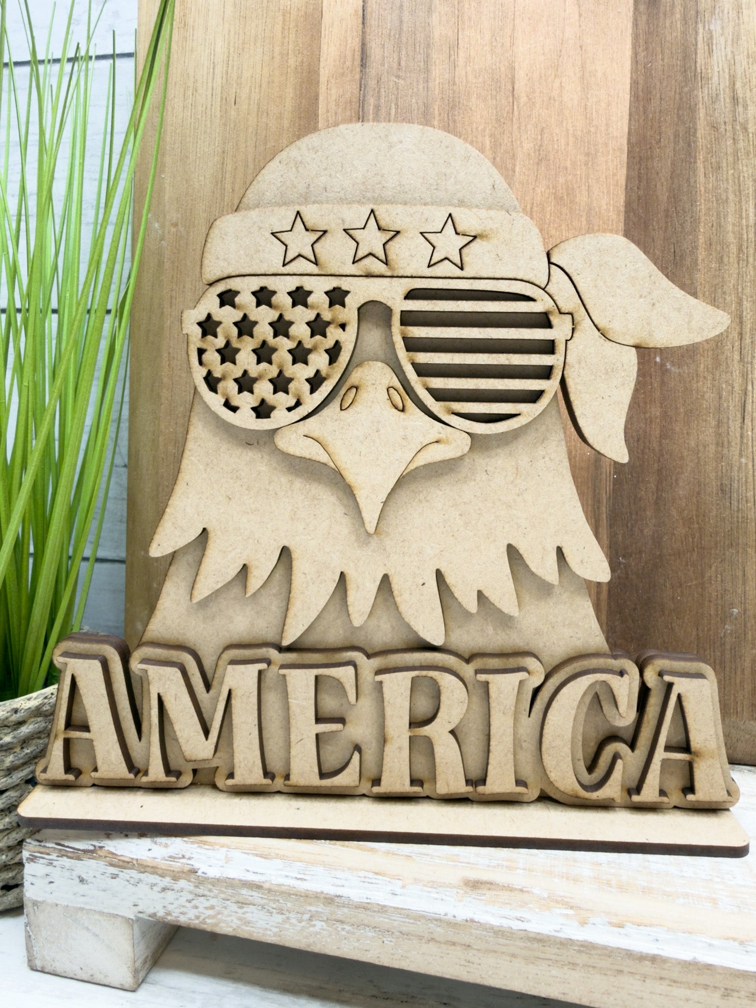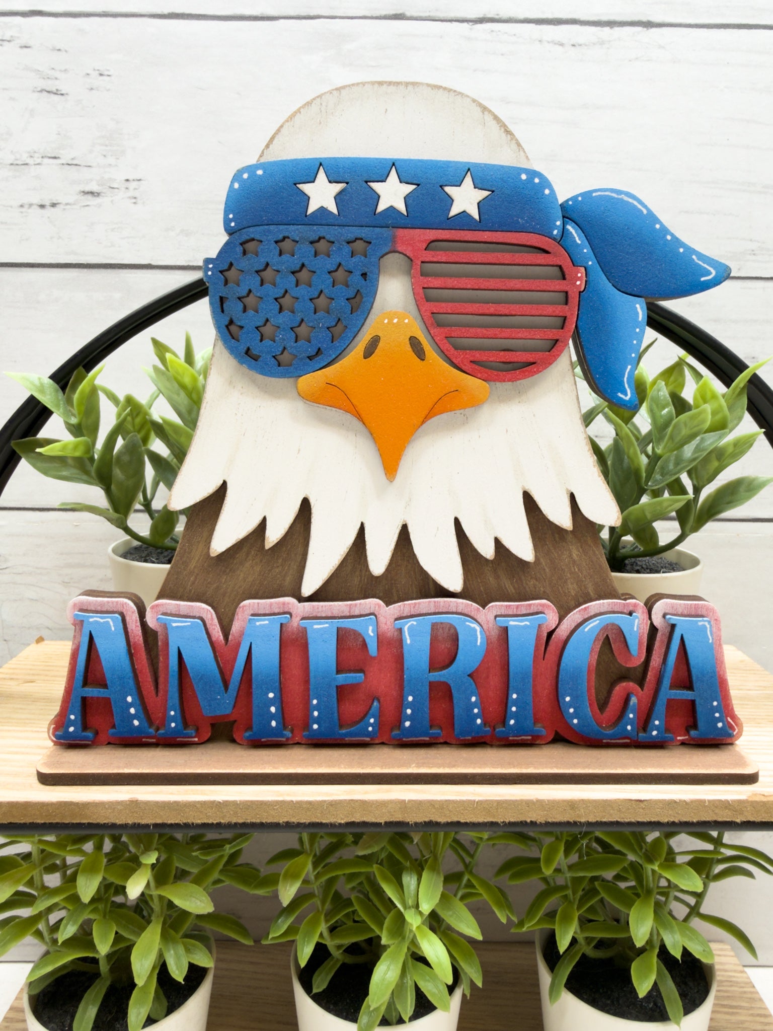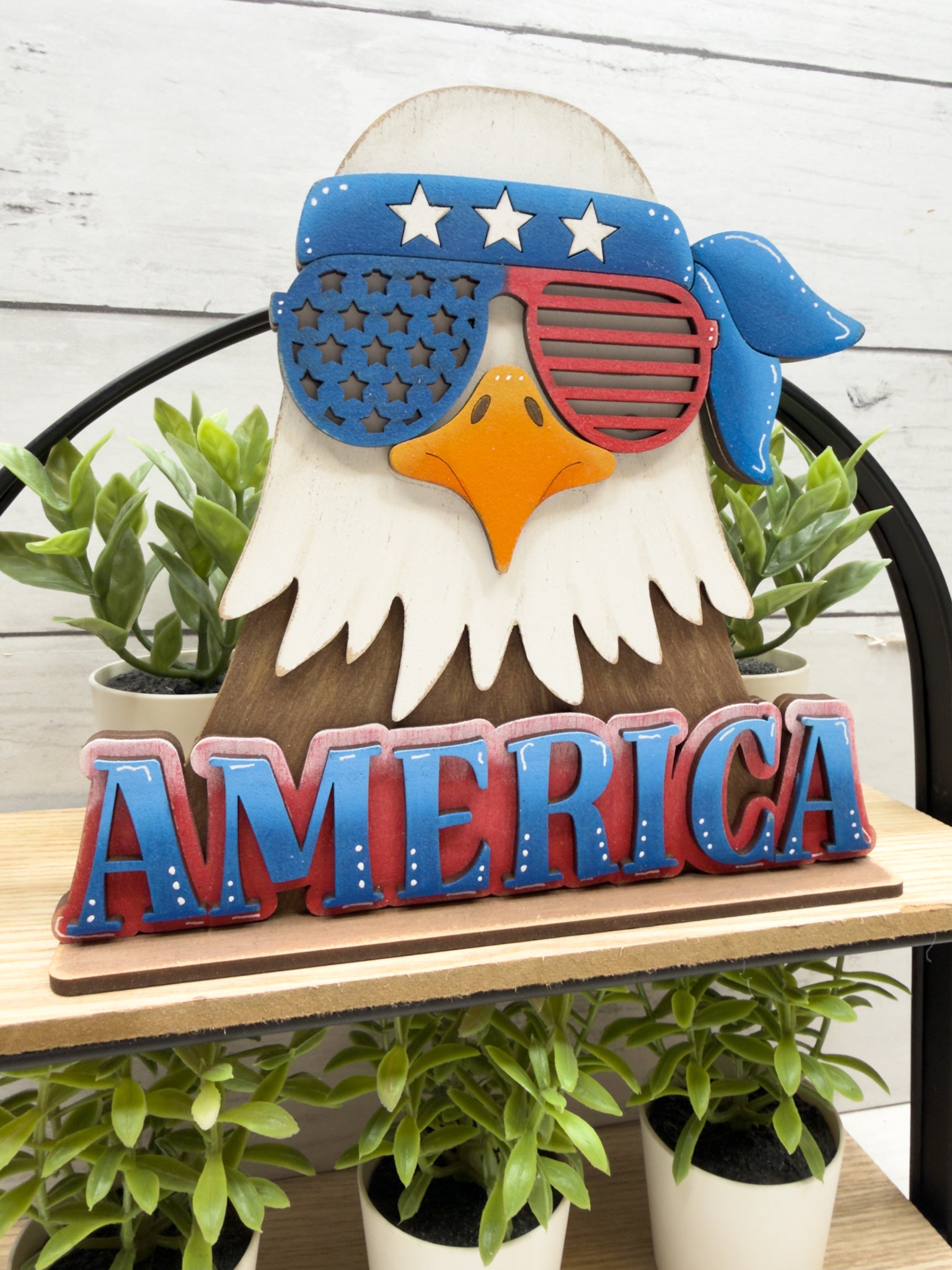 If you’re looking for something a little more bold and playful for your patriotic decor, this America Eagle Shelf Sitter DIY Kit is it. The eagle rocking flag sunglasses and a bandana gives it a fun, modern twist while still keeping that classic red, white, and blue feel.