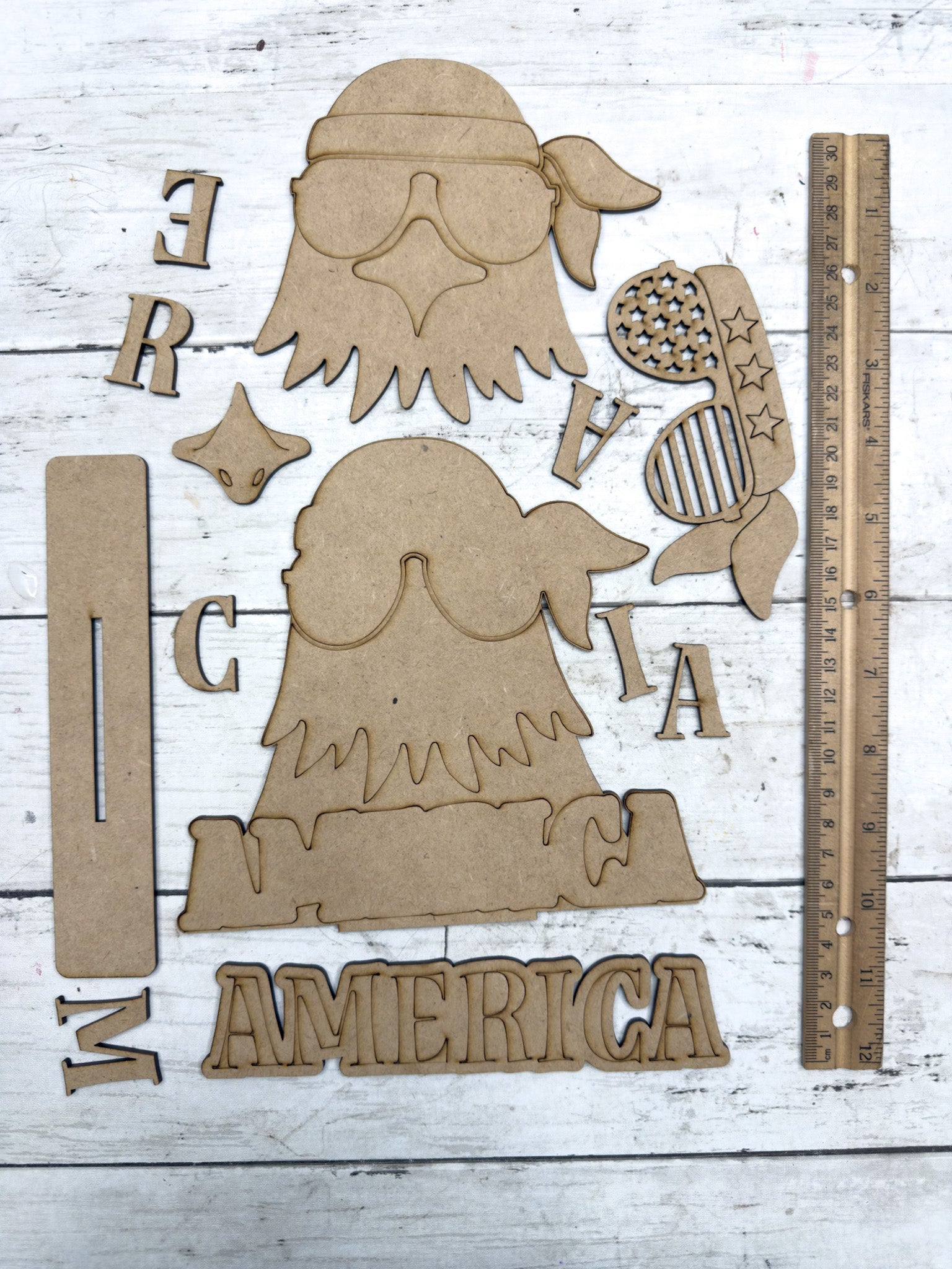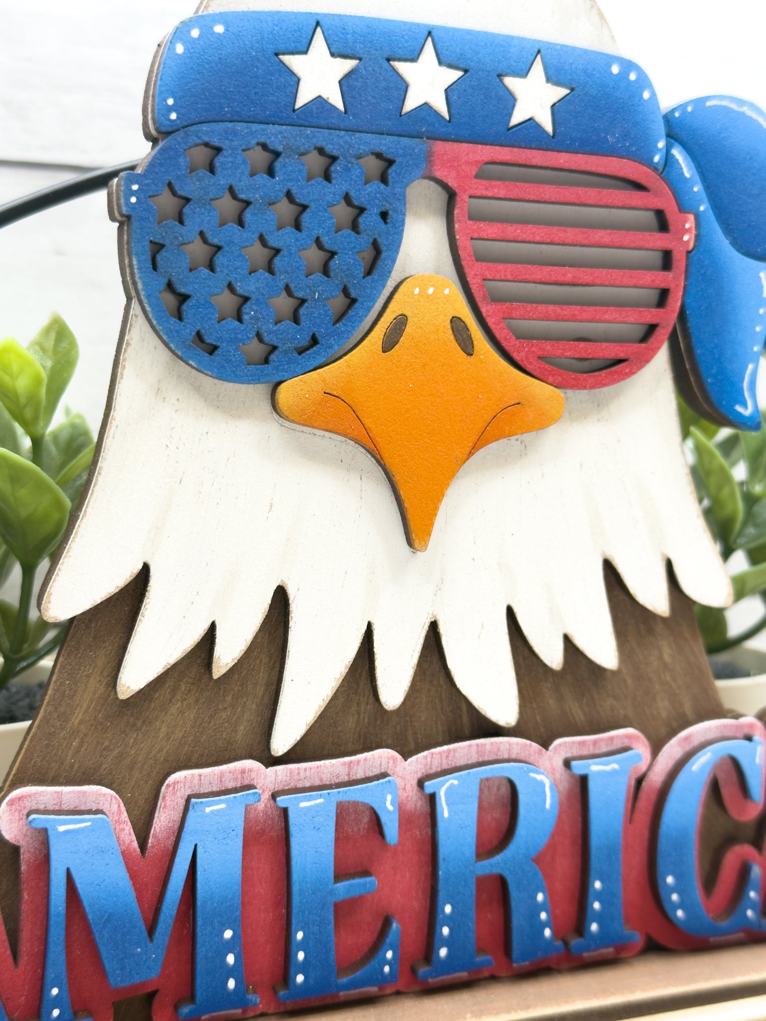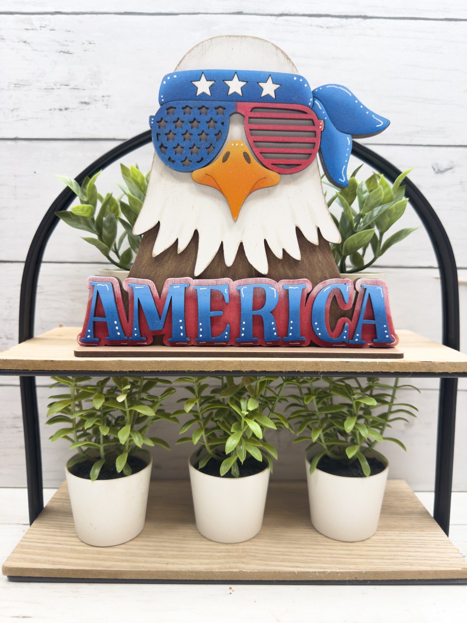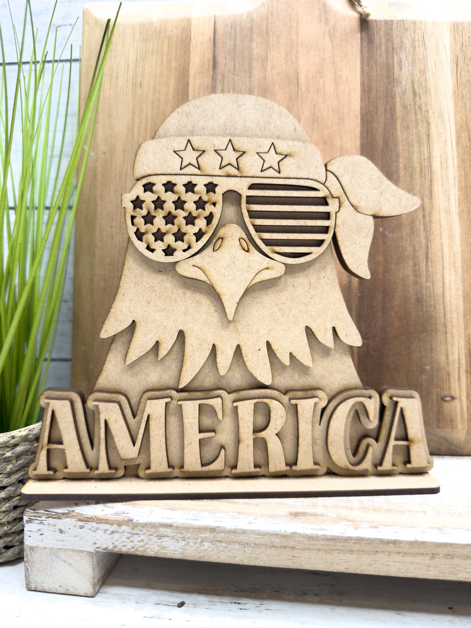 If you’re looking for something a little more bold and playful for your patriotic decor, this America Eagle Shelf Sitter DIY Kit is it. The eagle rocking flag sunglasses and a bandana gives it a fun, modern twist while still keeping that classic red, white, and blue feel.