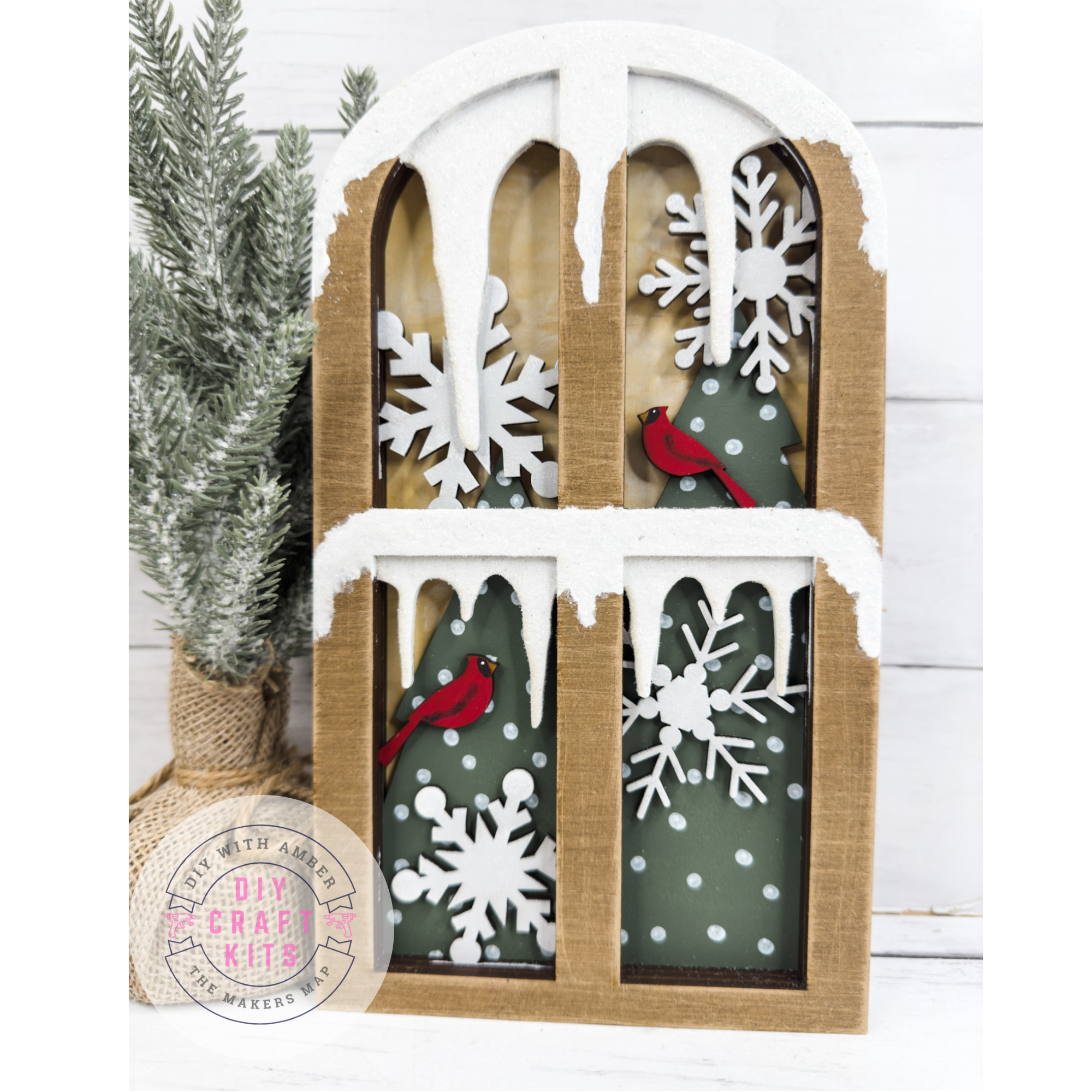 Bring a touch of winter magic into your crafting with this Arched Window Winter Scene DIY Kit! This beautifully laser-cut wood kit features snowflakes, icicles, trees, and sweet little cardinals peeking through each windowpane. Perfect for painting, staining, or leaving natural for a rustic farmhouse look.