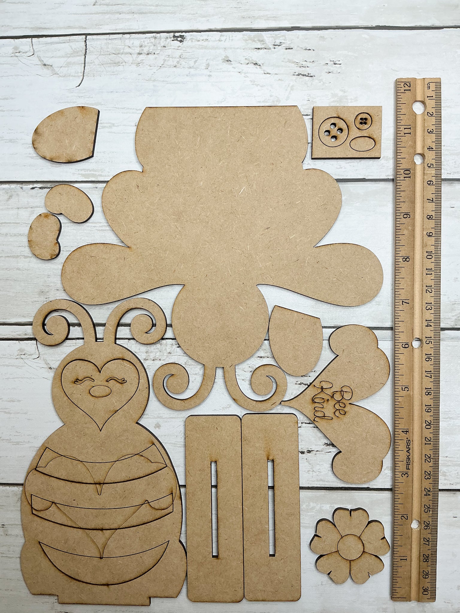 You will only receive the wooden craft kit pieces shown in the photos.