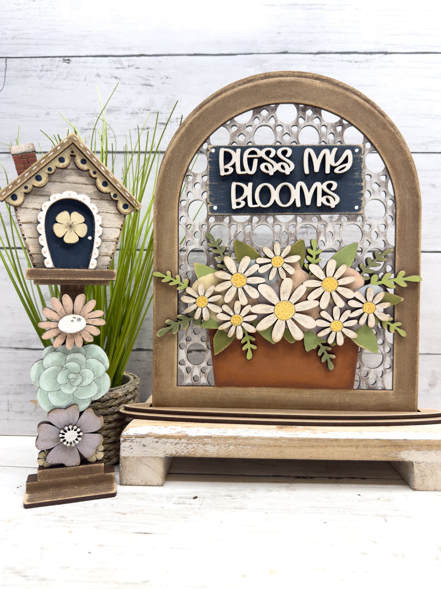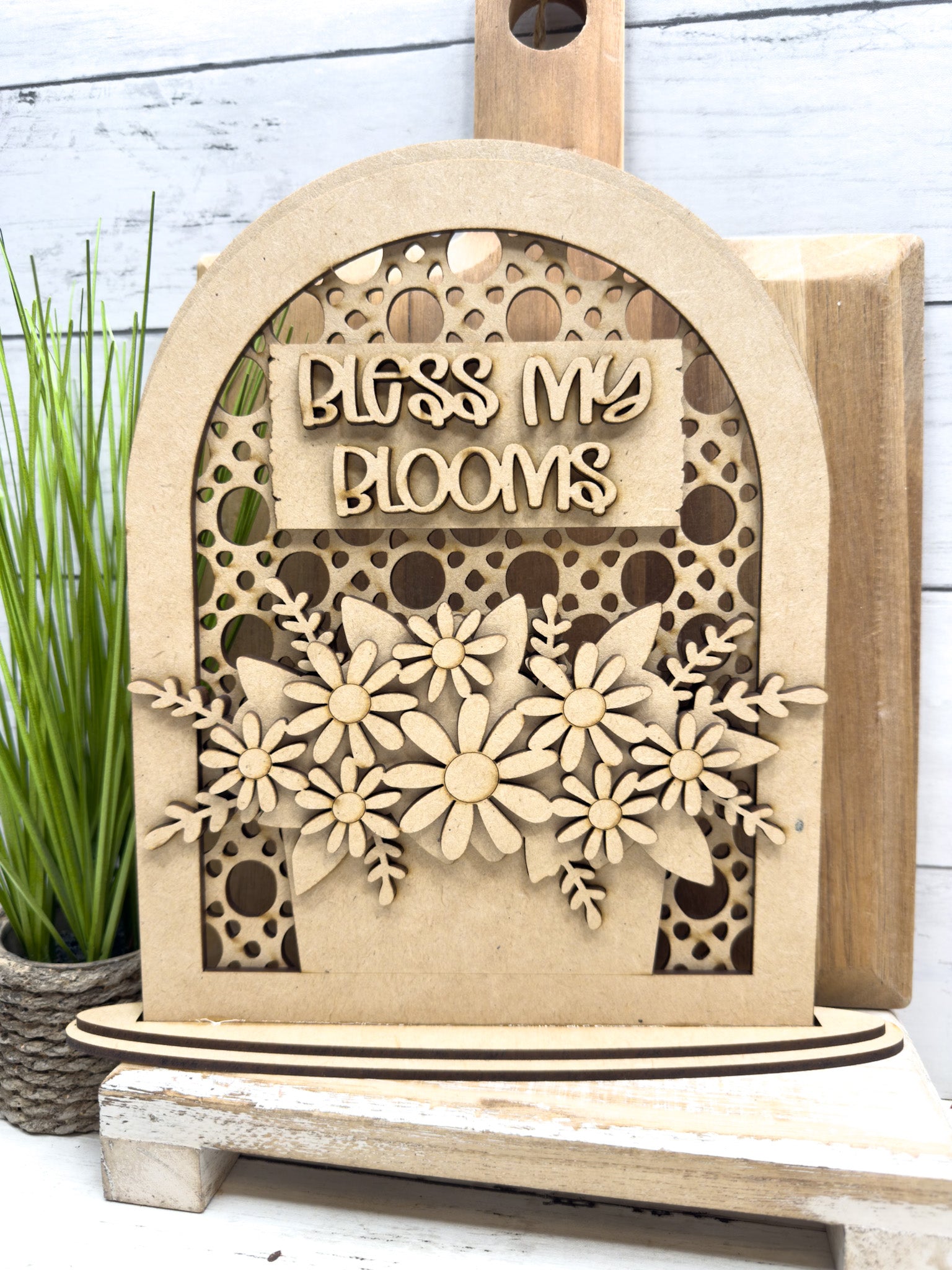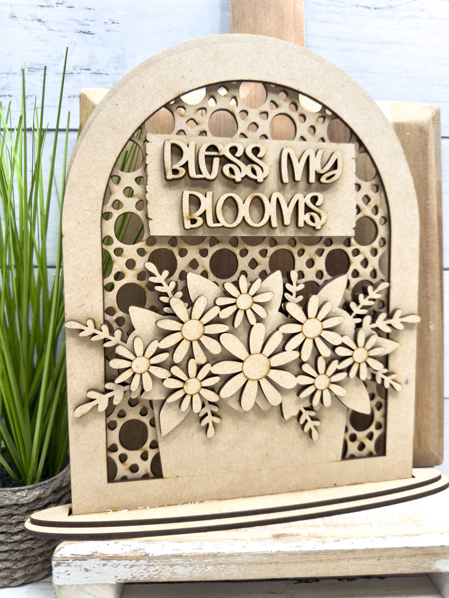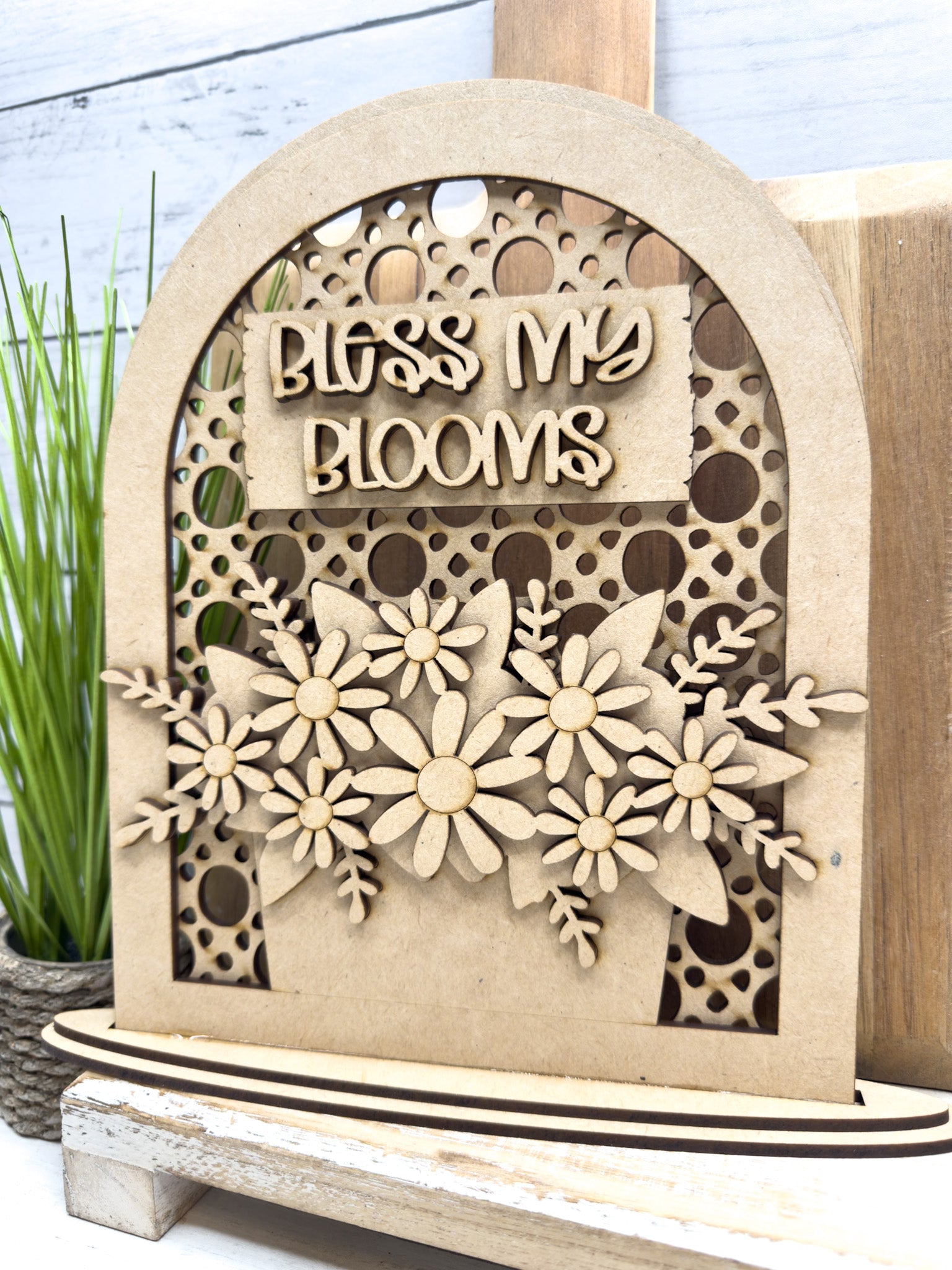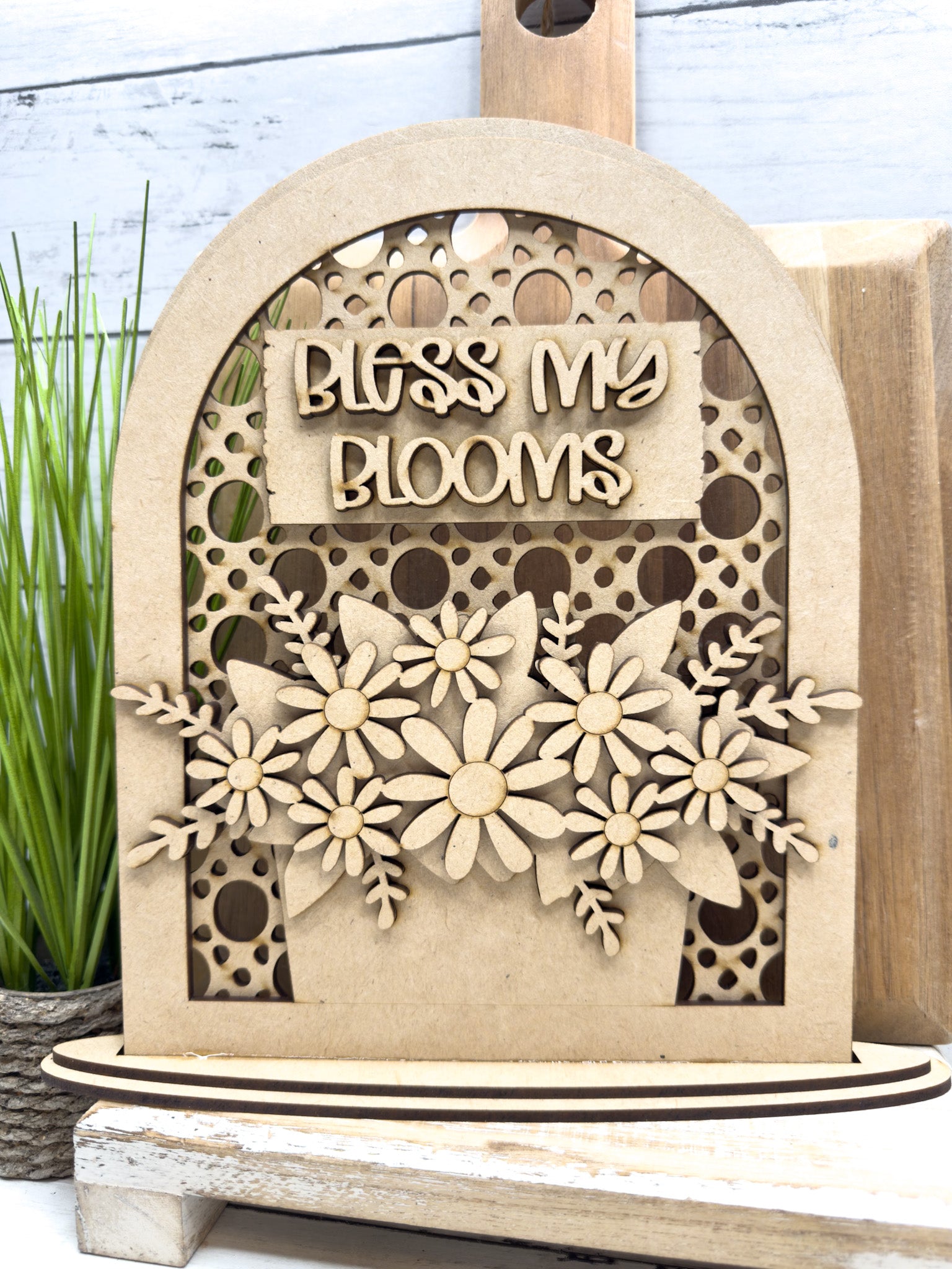 Add a sweet touch of spring to your home with our Bless My Blooms Shelf Sitter DIY Kit š¼ This layered laser-cut wood design features a beautiful arched frame, delicate floral details, and a charming āBless My Bloomsā sentiment ā perfect for spring decorating, tiered trays, shelves, mantels, or gift giving.