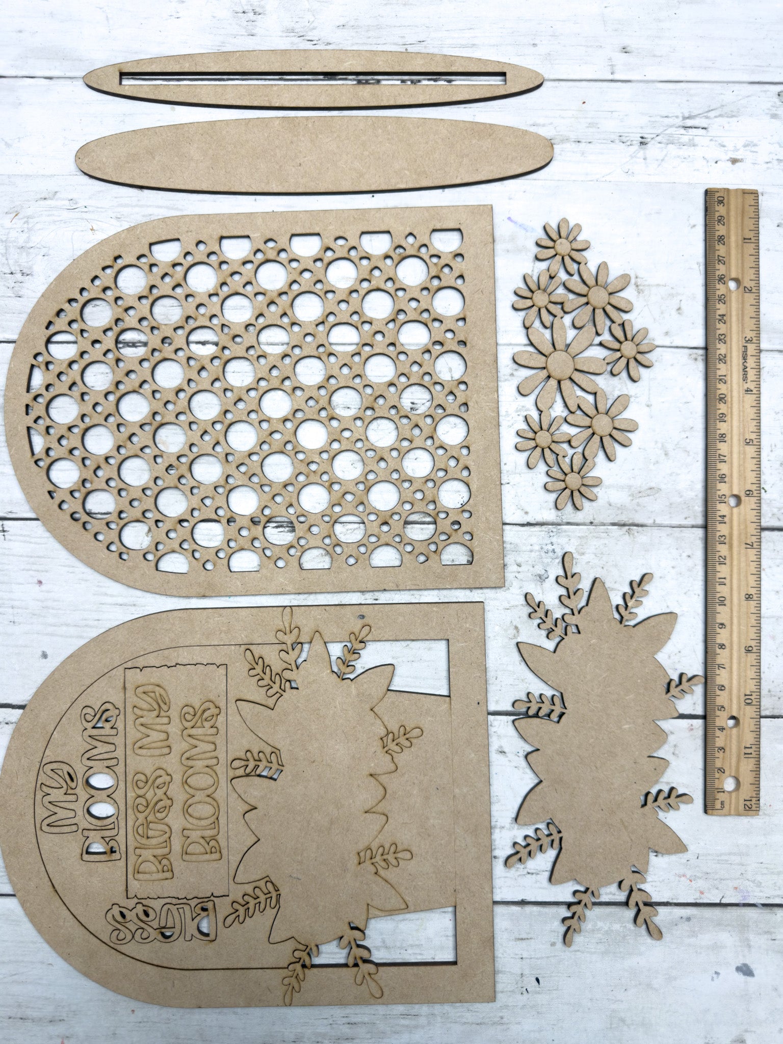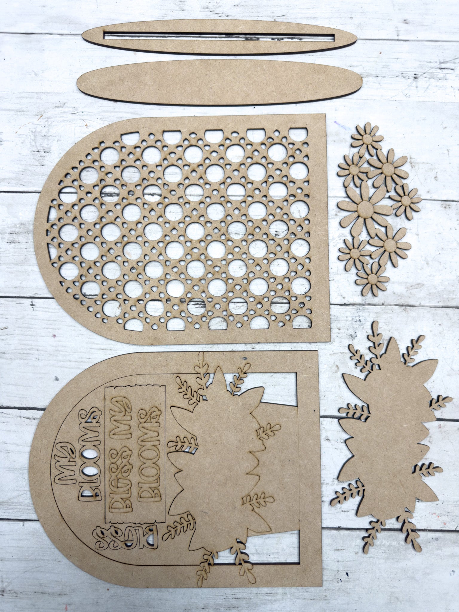 Precision laser-cut wood pieces (1/8" HDF)