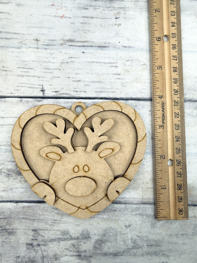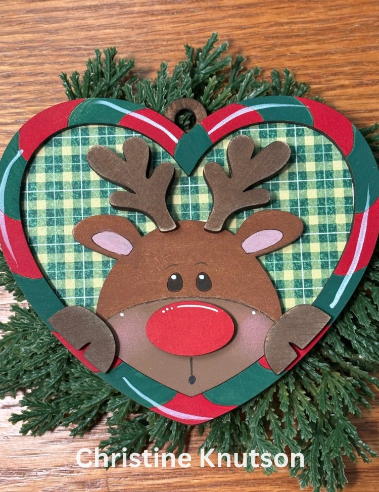 • Candy cane heart ornament with reindeer design