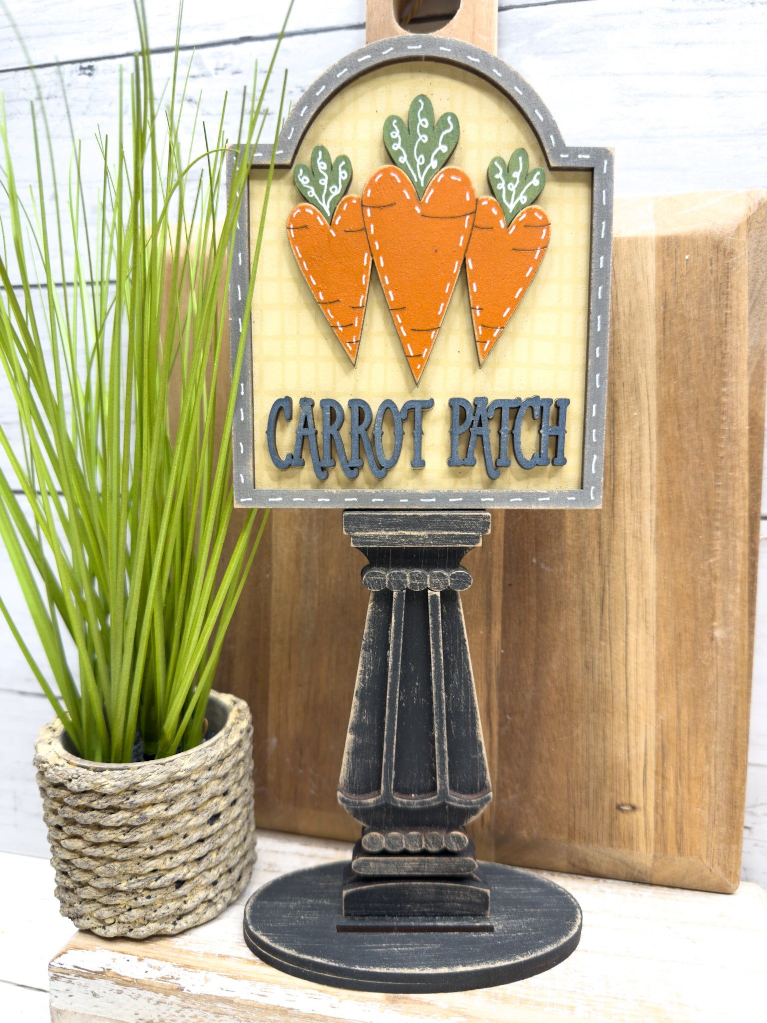 This Carrot Patch insert for our Interchangeable Spindle Base would look amazing added into your home decor!