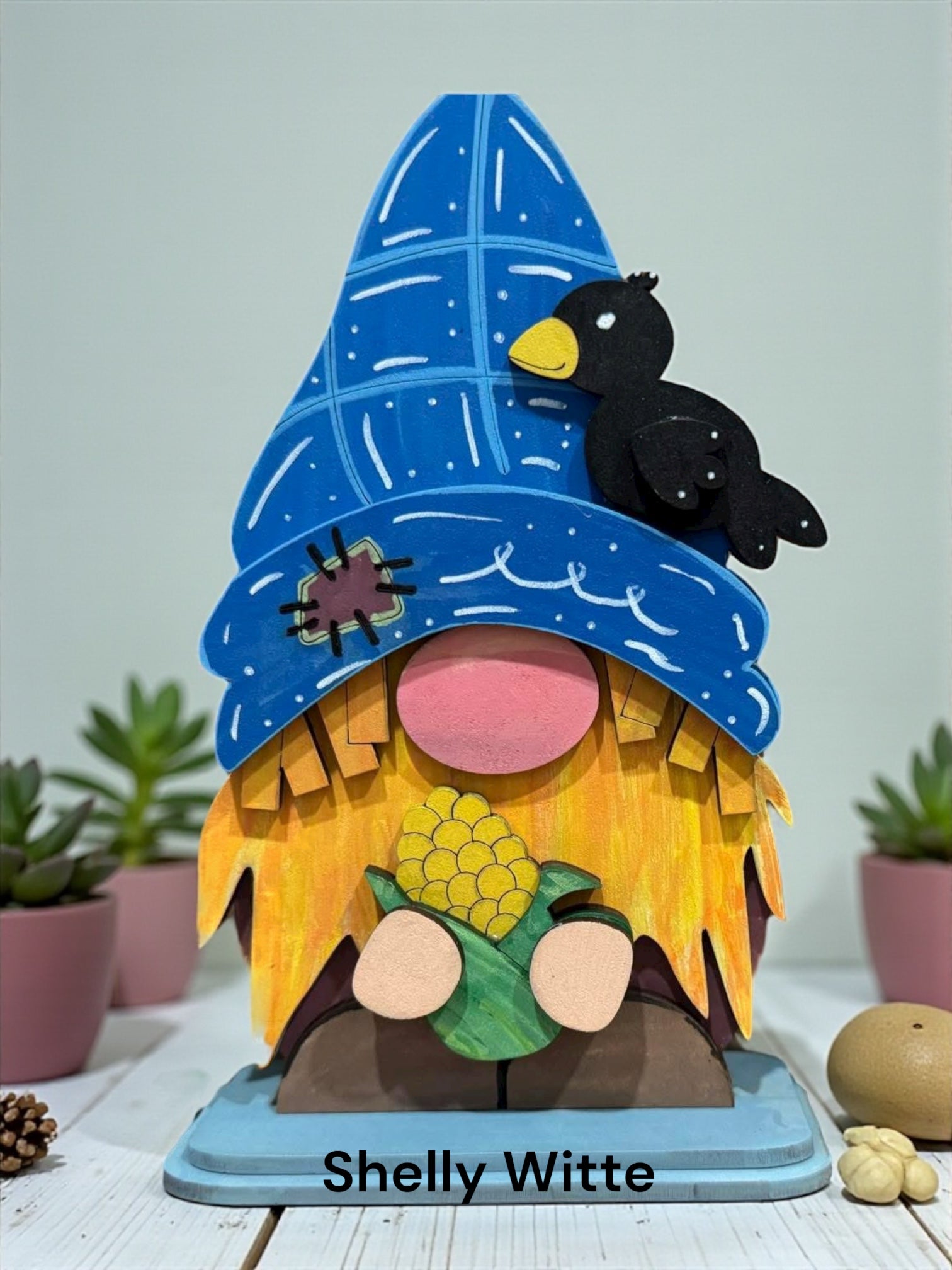 This mini Corn Gnome Scarecrow shelf sitter would also be fun for a paint party, craft night, or kid's school activity.