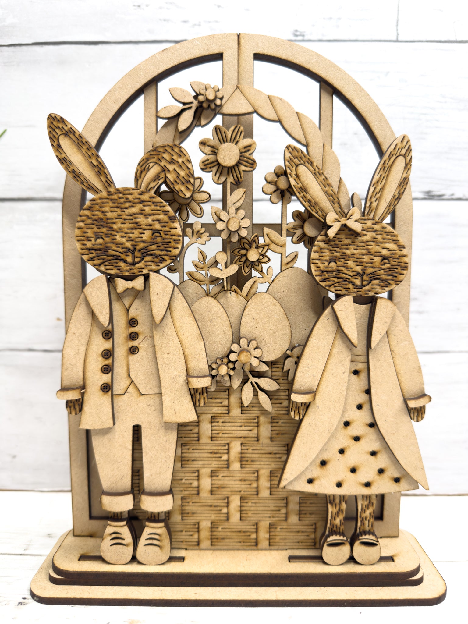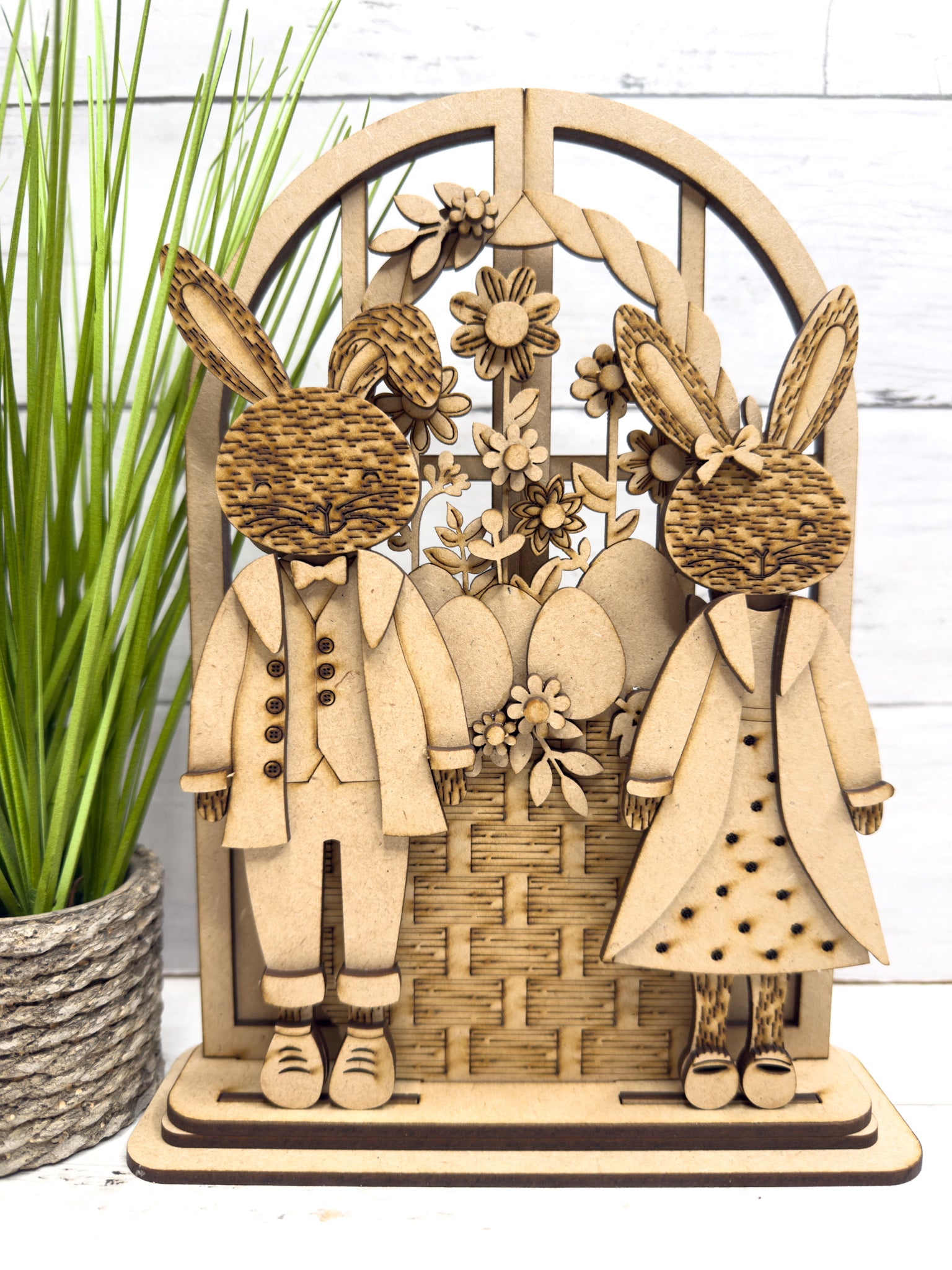 Celebrate springtime sweetness with the Easter Bunnies and Basket Trio Insert, part of our Interchangeable Arched Window Collection. This layered DIY insert is designed to sit in front of our arched window base, making it easy to swap seasonal décor while keeping the same beautiful background in place year after year.