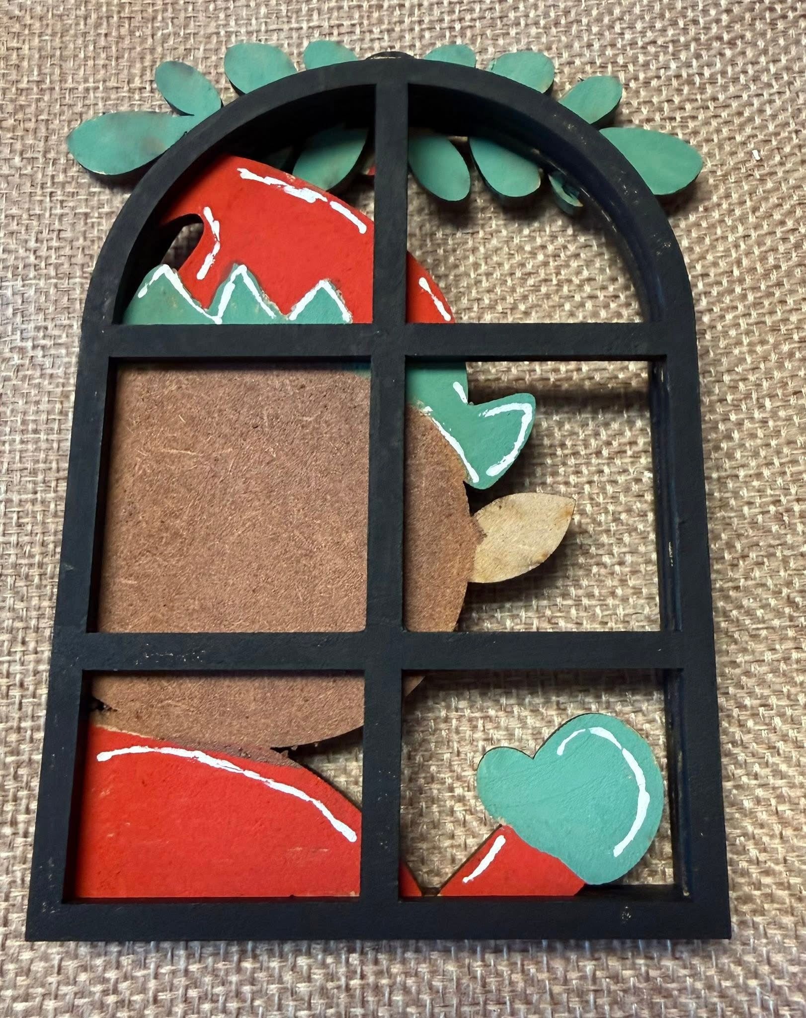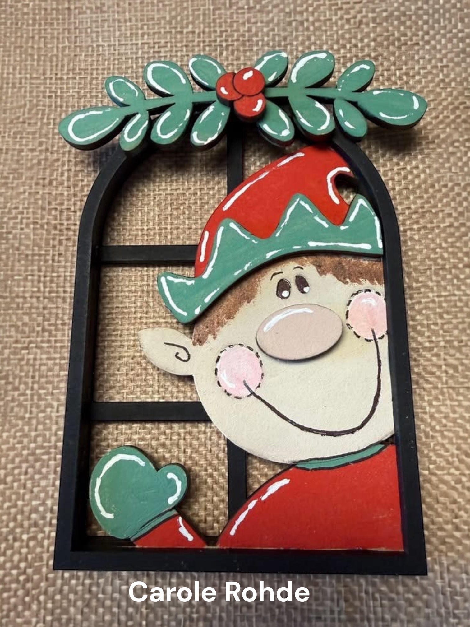 Bring holiday cheer to your crafting table with this festive Elf Arch Window Ornament! Featuring a smiling elf peeking through a window frame adorned with leaves and a flower topper, this piece makes a fun and whimsical addition to your Christmas décor.