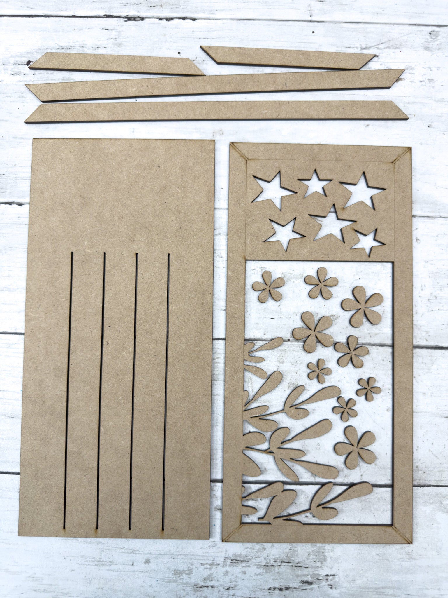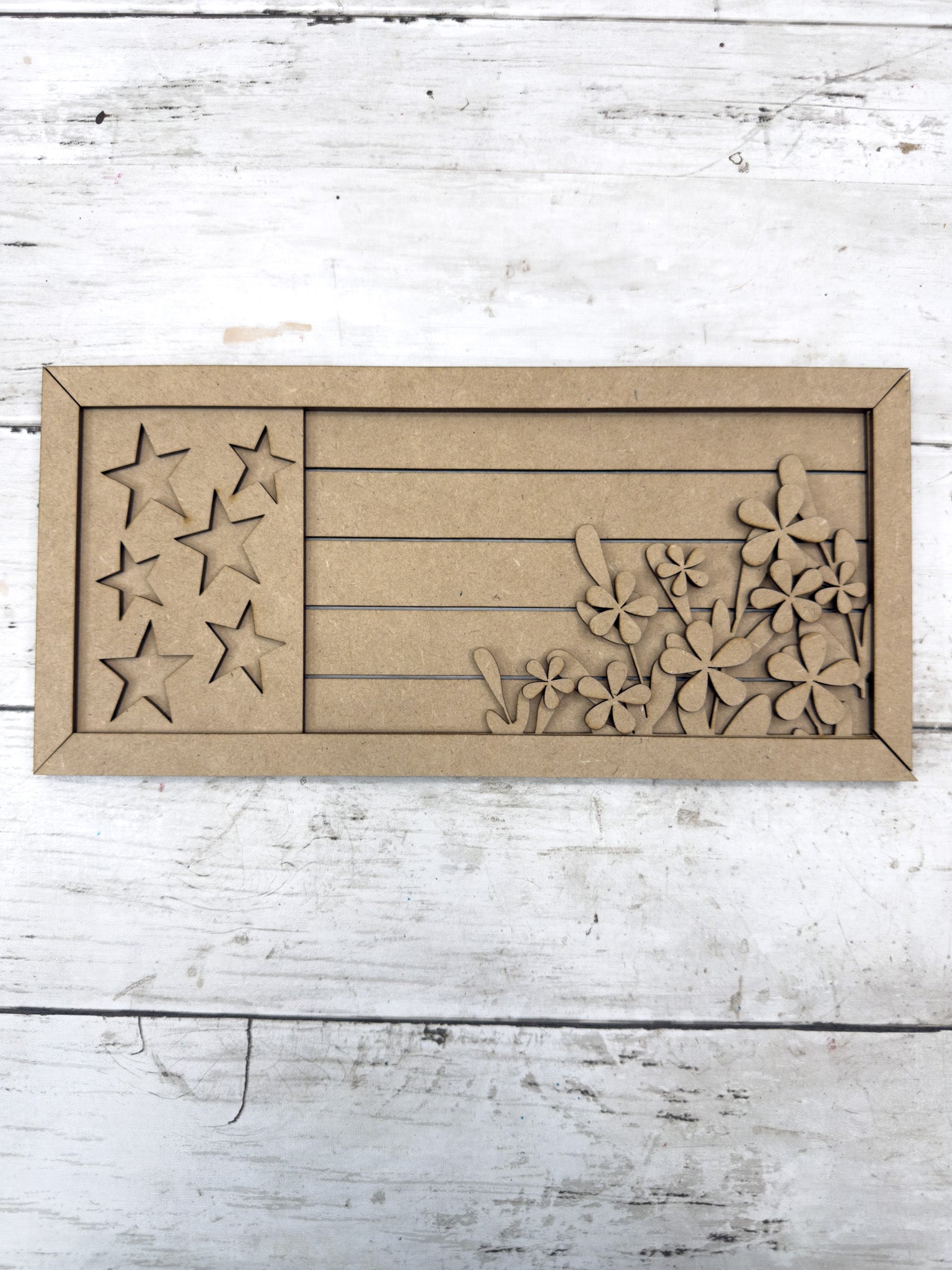 ow your patriotic spirit with a soft, floral twist! This Floral American Flag DIY Kit combines classic stars and stripes with beautiful layered flowers — perfect for summer décor, Memorial Day, Fourth of July, or year-round farmhouse style.