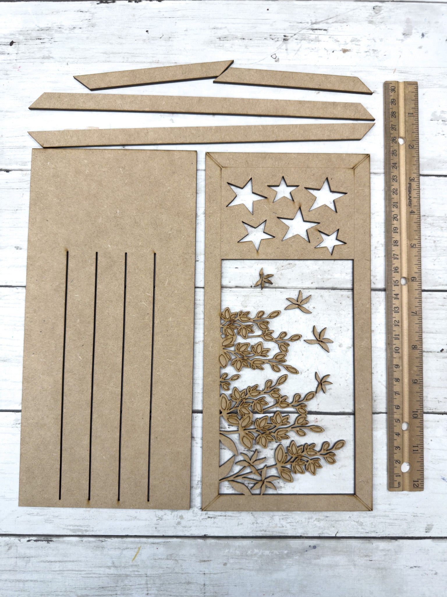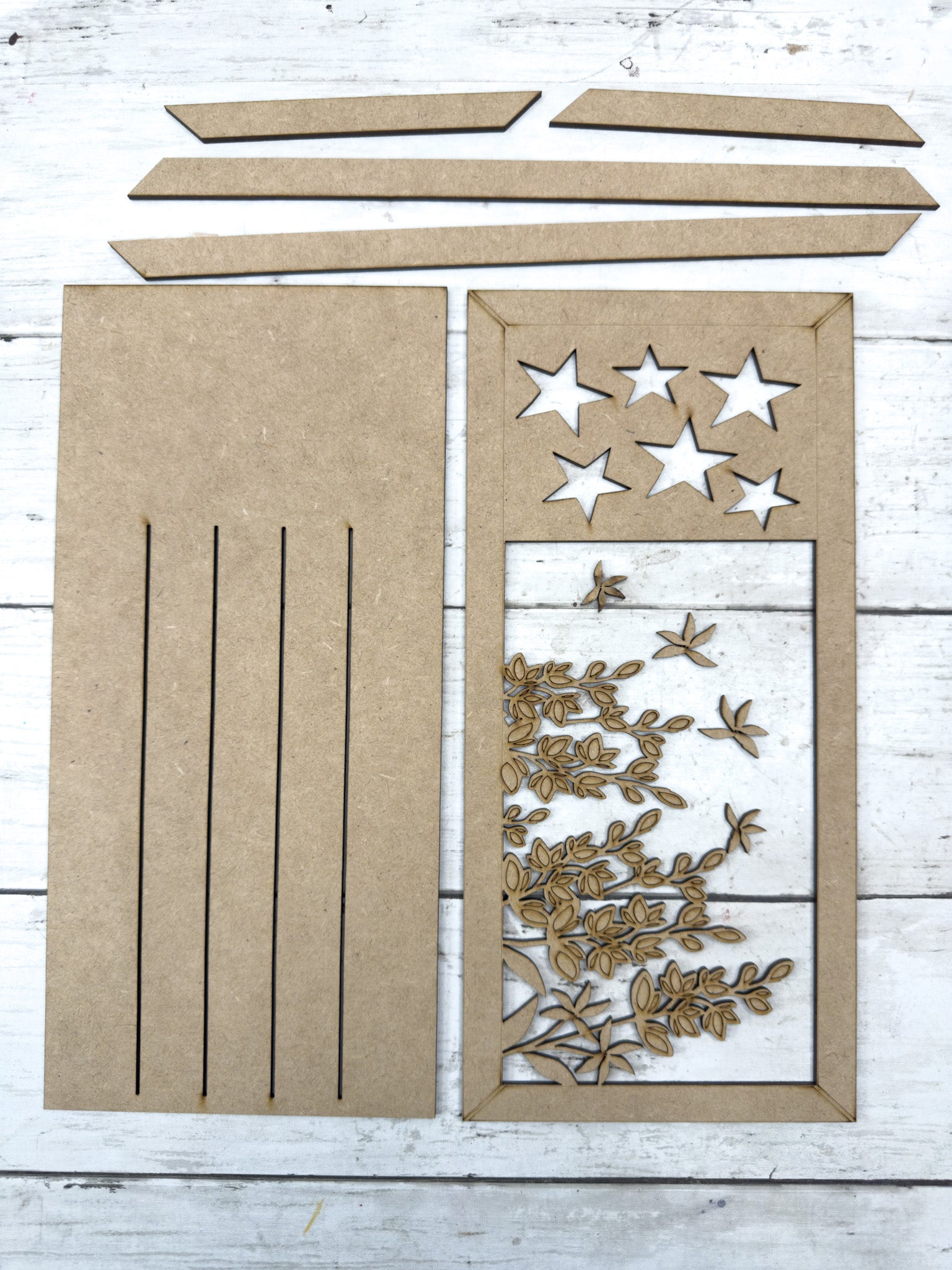 • Laser cut from HDF – high density fiberboard (1/8 inch)