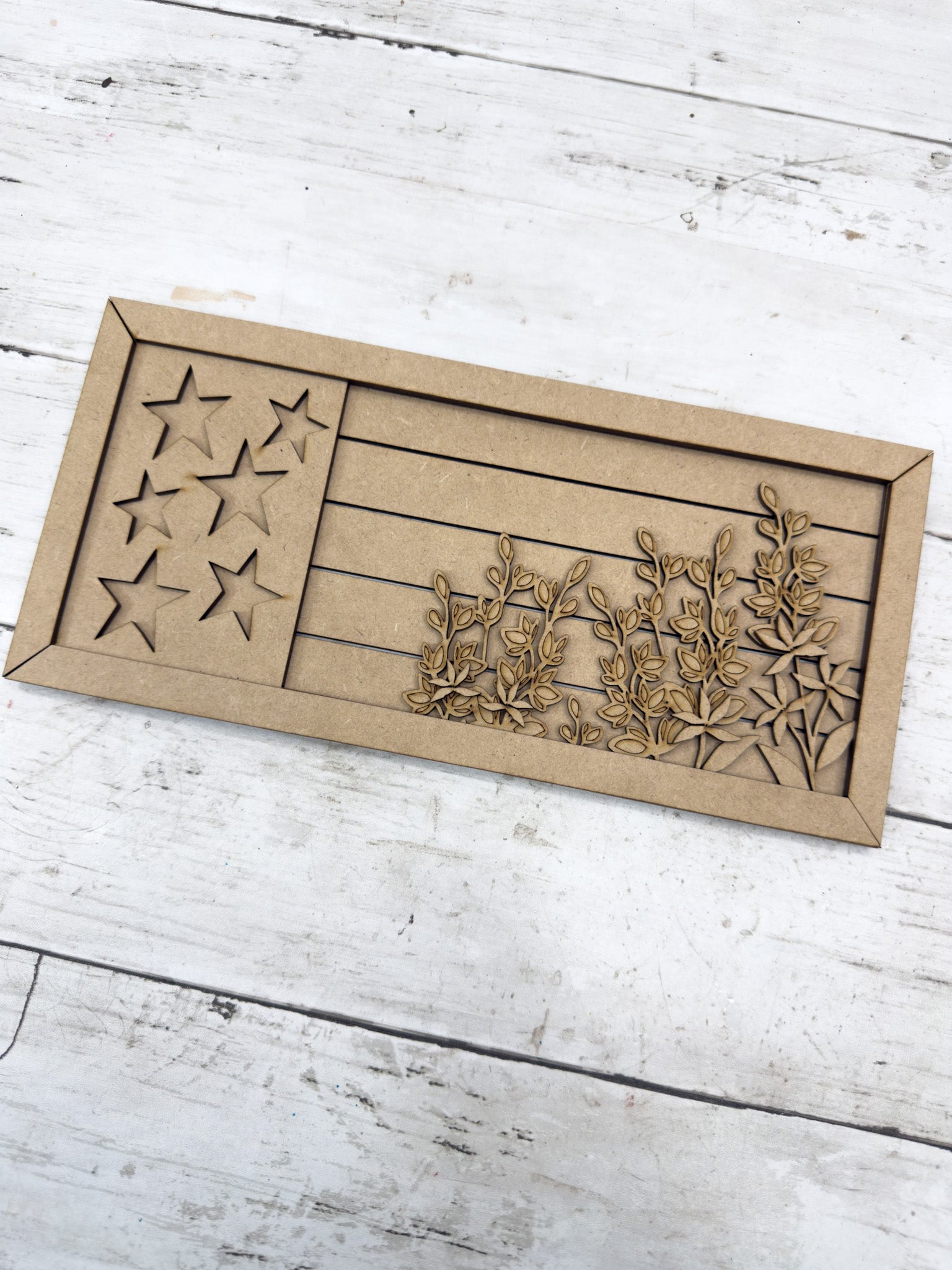 Celebrate home and country with this beautiful Floral American Flag DIY Kit – Style 2. This version features a fresh layout of stars, stripes, and layered flowers for a patriotic piece with a soft, farmhouse feel.