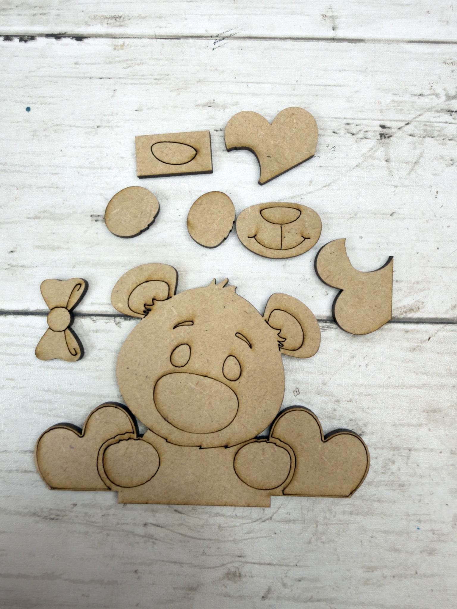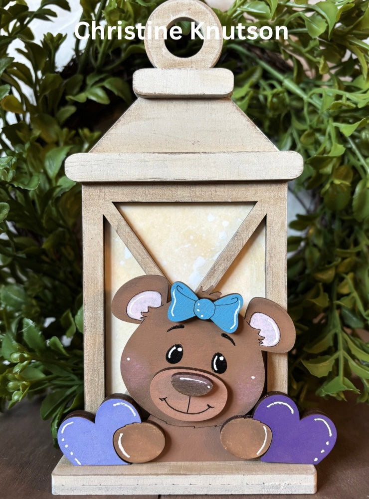 This Heart Teddy Bear Add on Insert is specifically for adding onto the Lantern insert for the Interchangeable Spindle Base, the lantern sitter base, and the interchangeable candlestick sitter, bird cage sitter, and picnic basket sitter. See photos for options