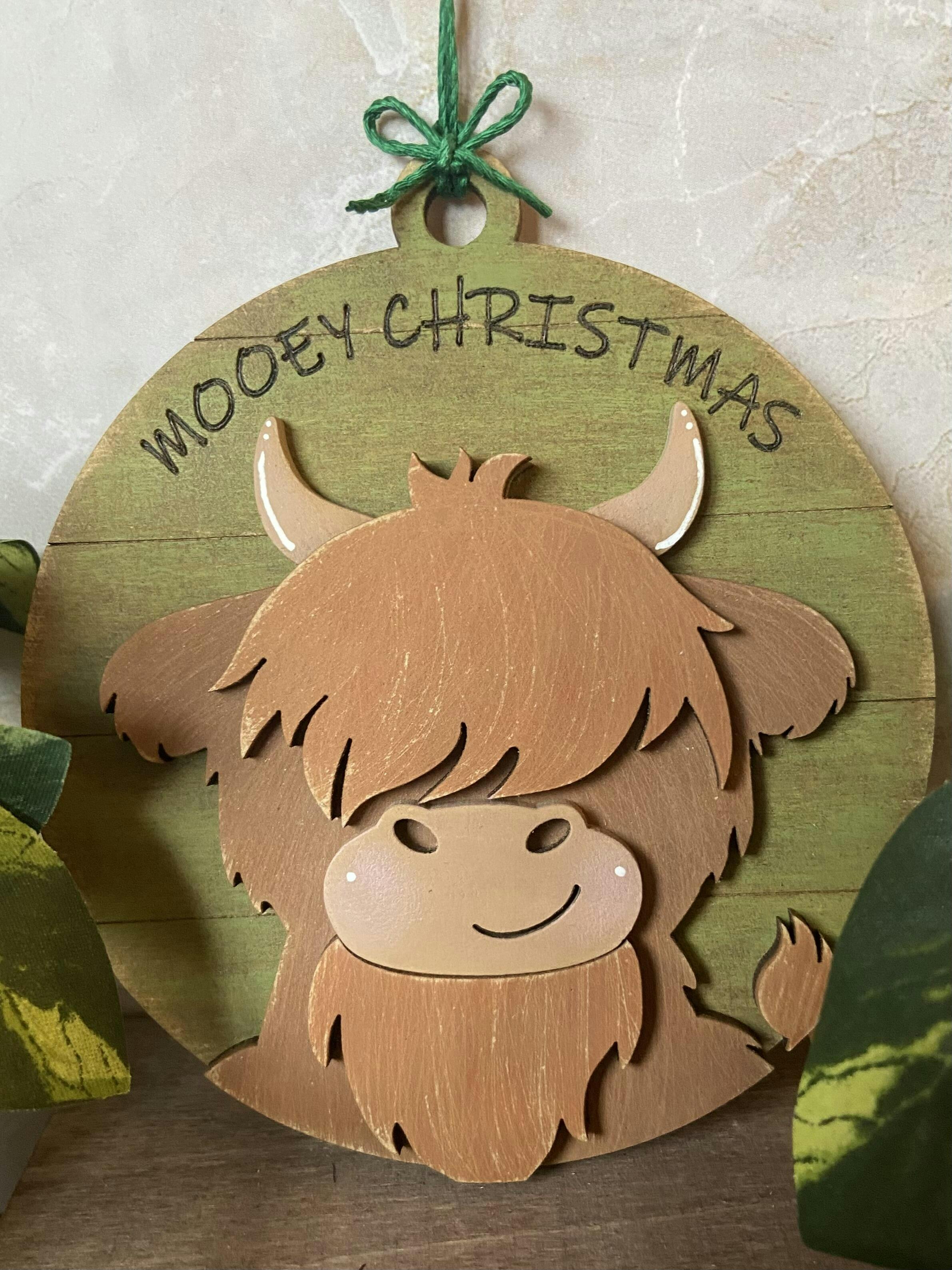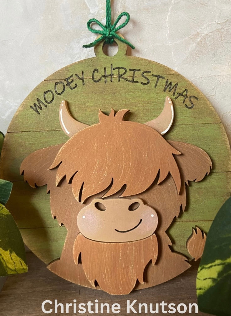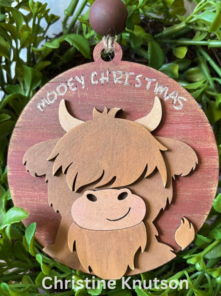 Highland Cow Round Mooey Christmas Ornament DIY Kit