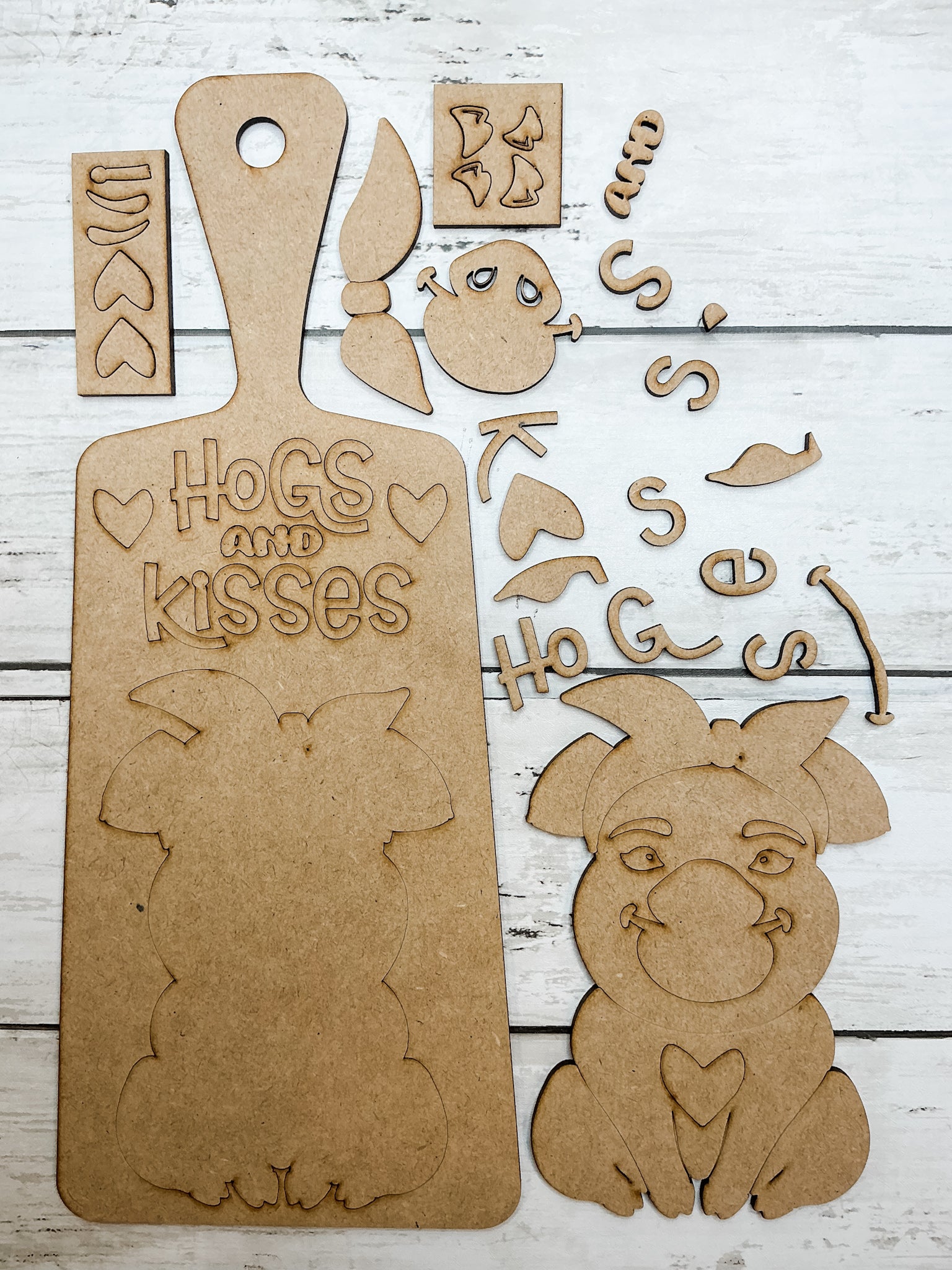 This hogs and kisses valentines Cutting Board  DIY Kit is going to be so much fun for adults or children who love to craft!
