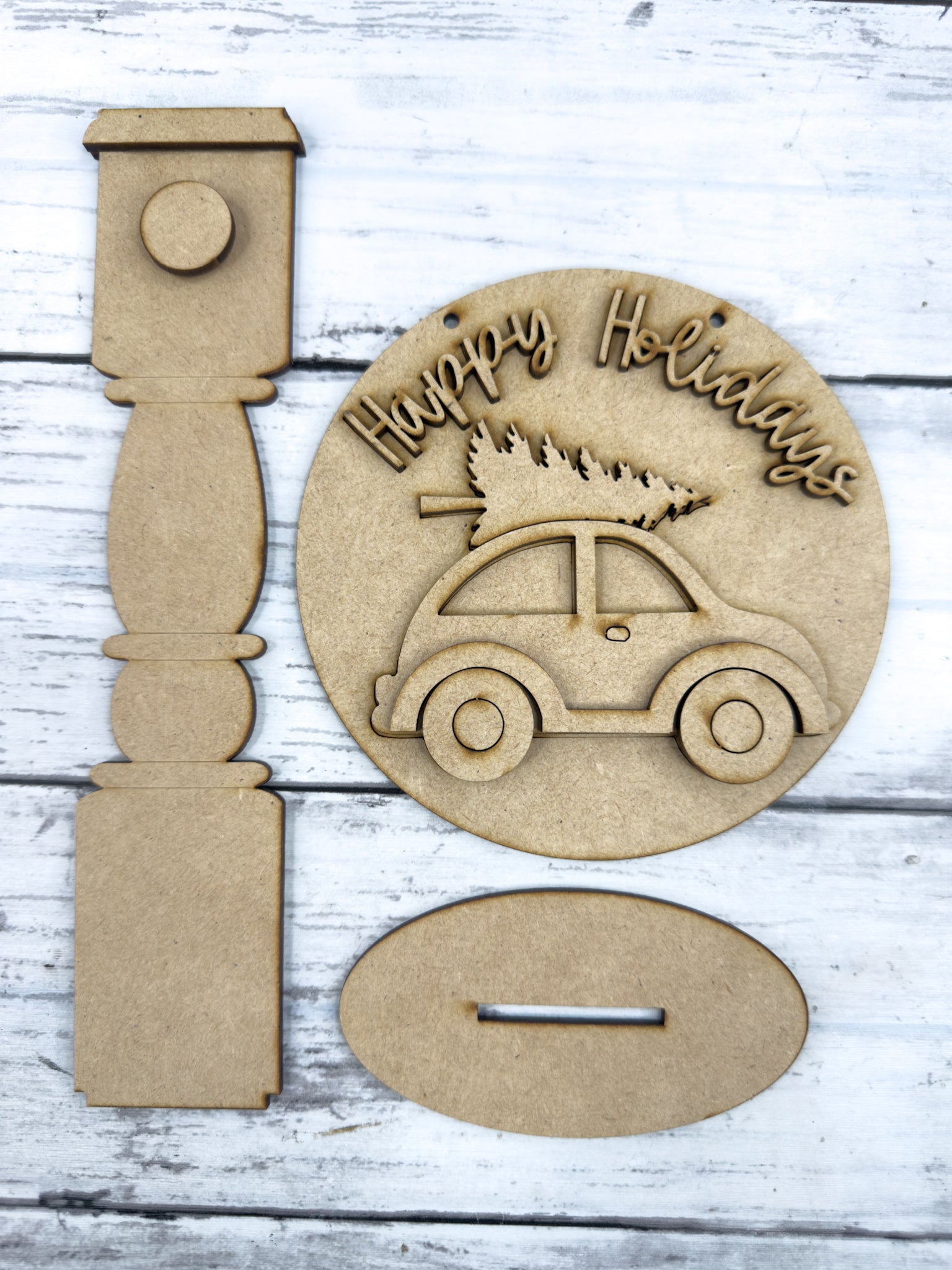 You are getting the parts shown. This listing includes the mini table top hanging sign stand and the 5 in holiday Car sign kit shown.