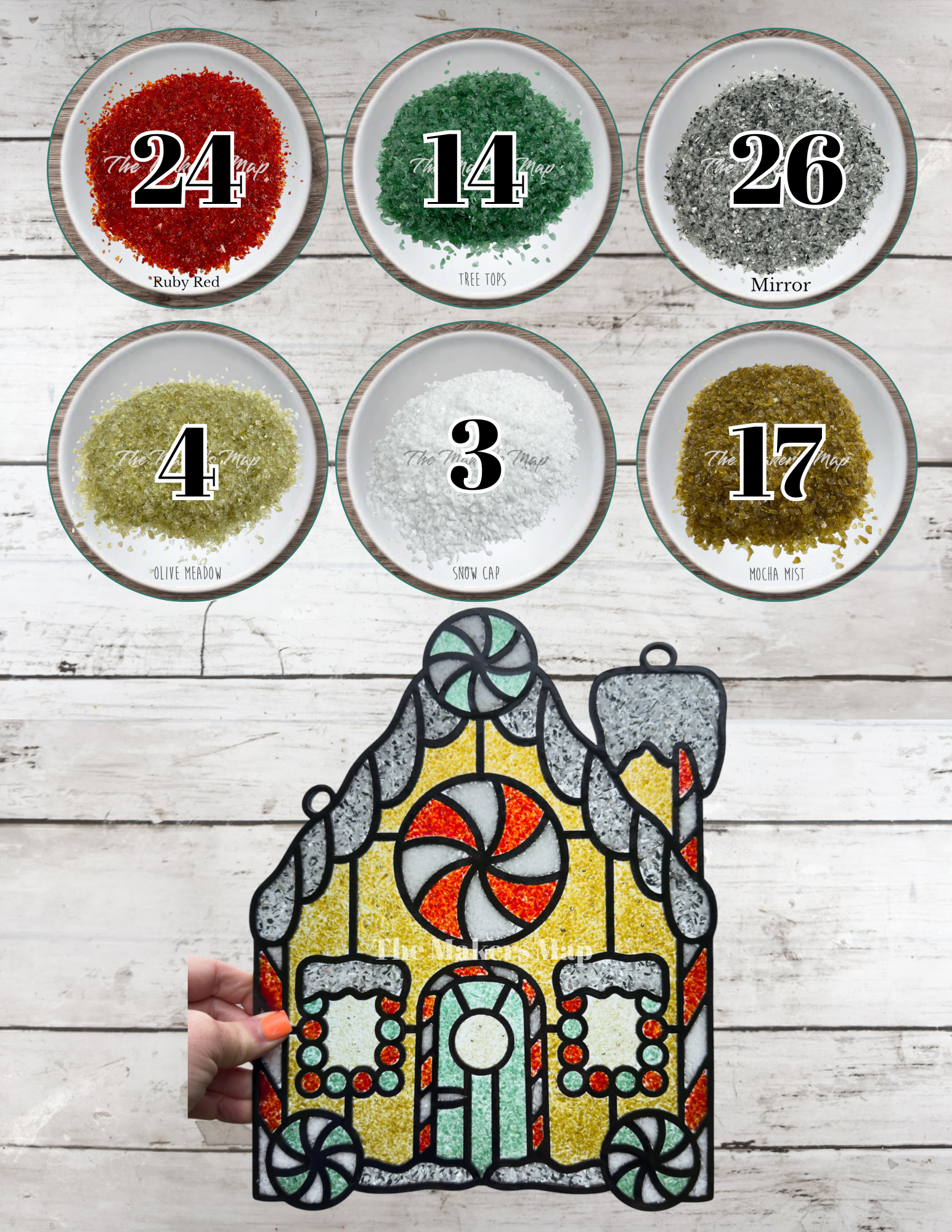 12 inch kit Create fun faux stained glass, sun catchers and dimensional decor with this laser wood outline cut out. This kit comes with 2 oz glass of the colors specified.