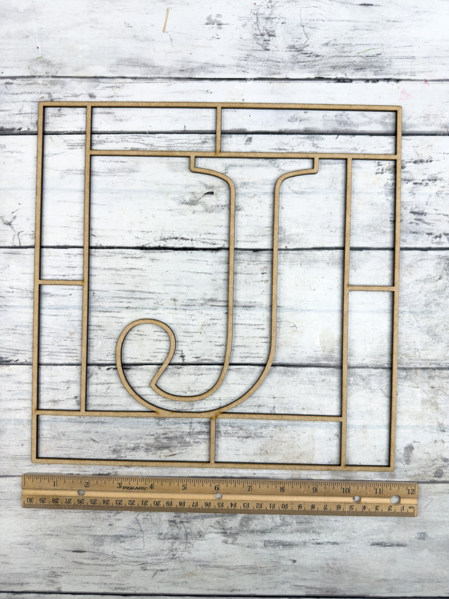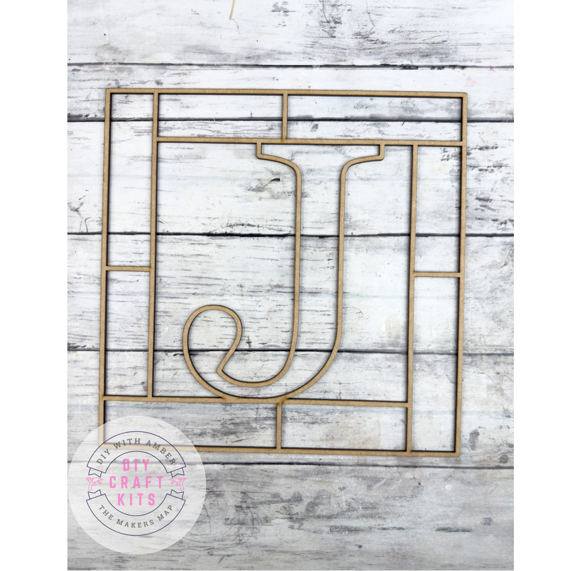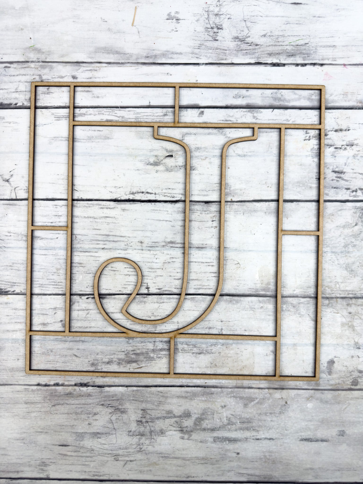 Letter J Square Monogram Laser Cut Outline Frame Blank