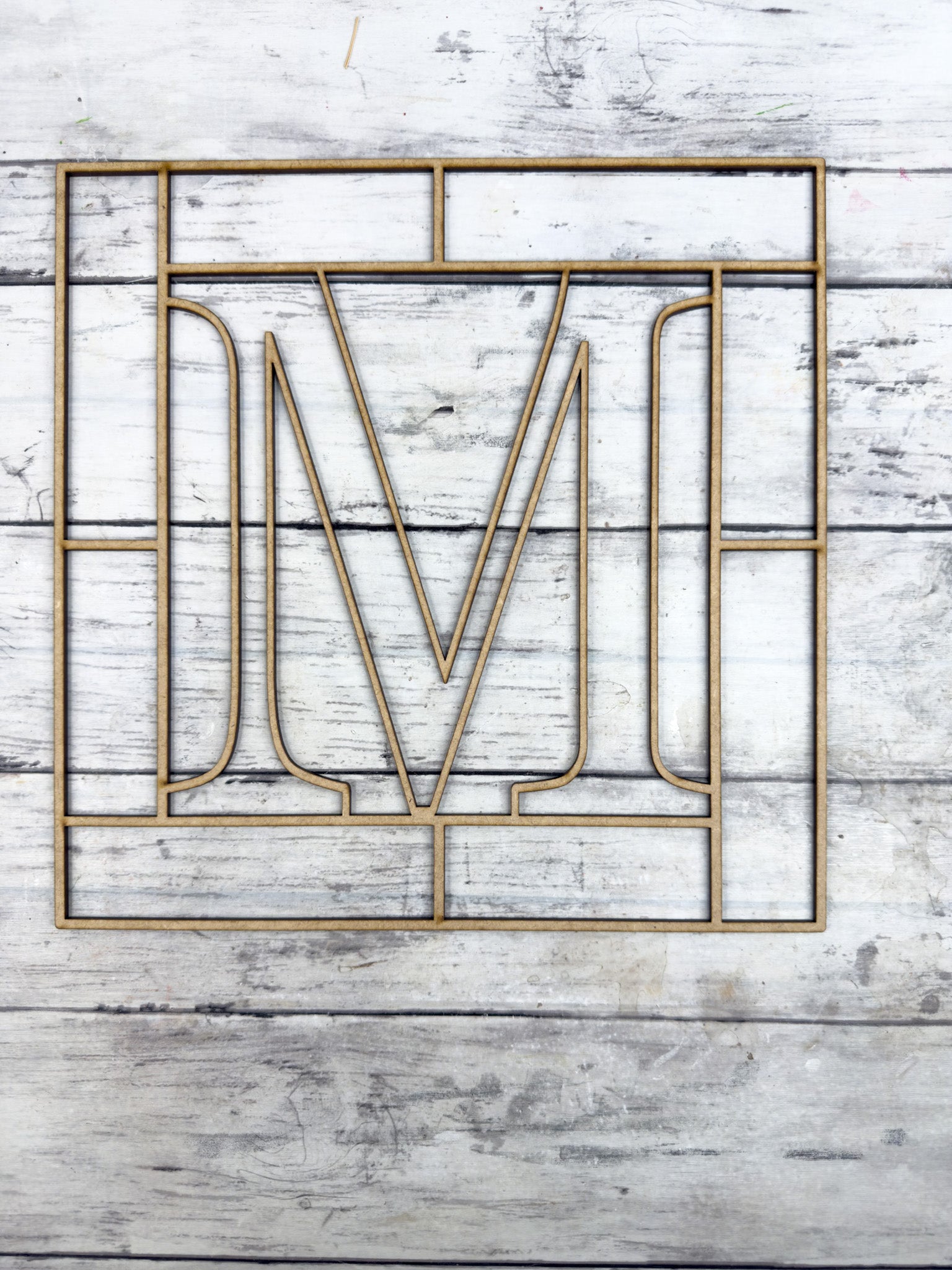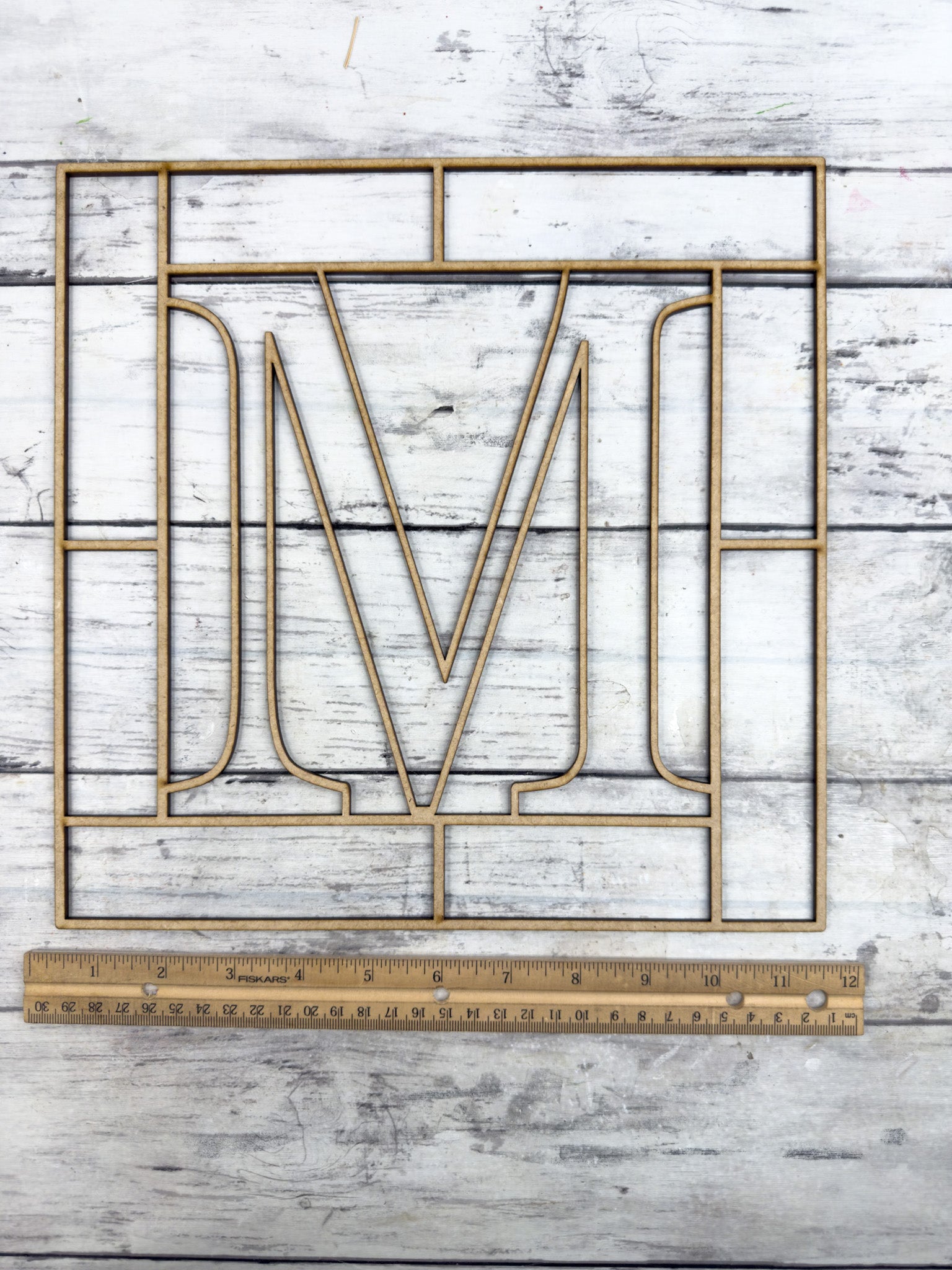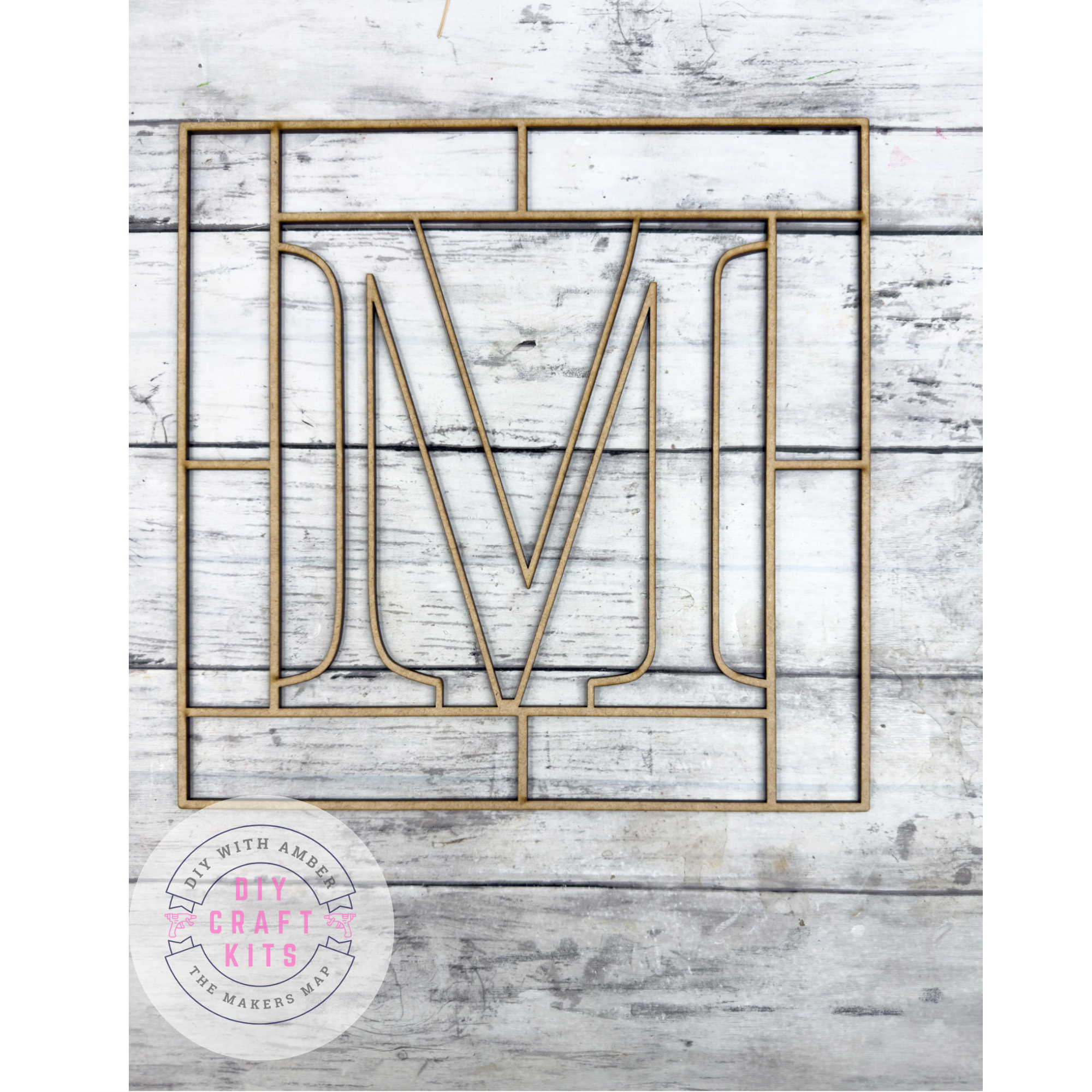 Letter M Square Monogram Laser Cut Outline Frame Blank
