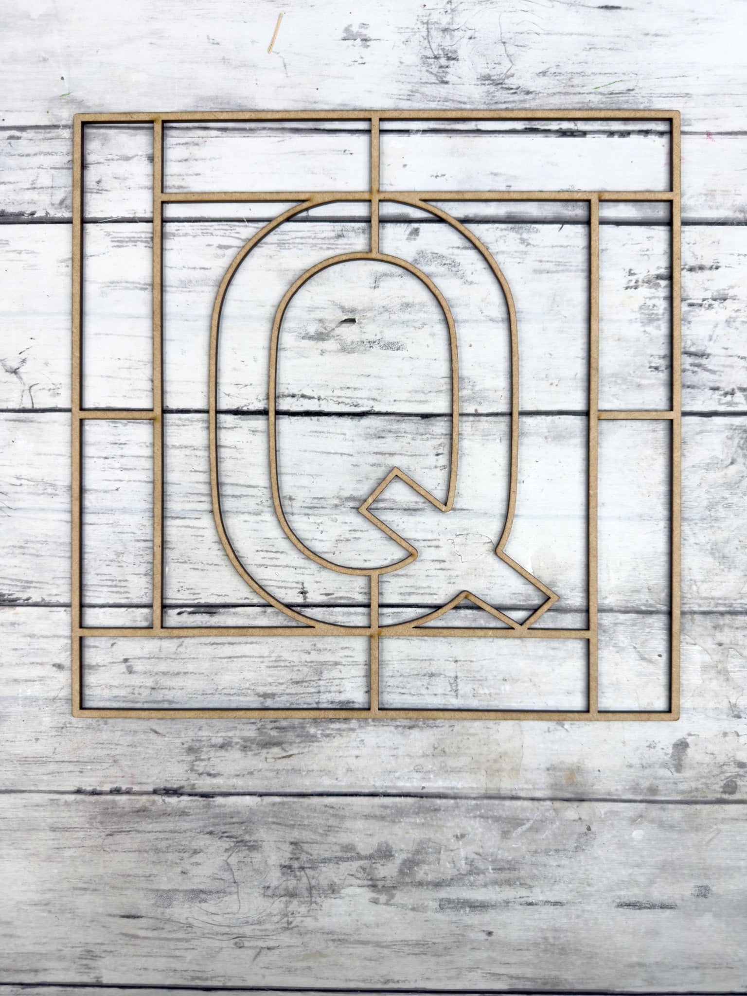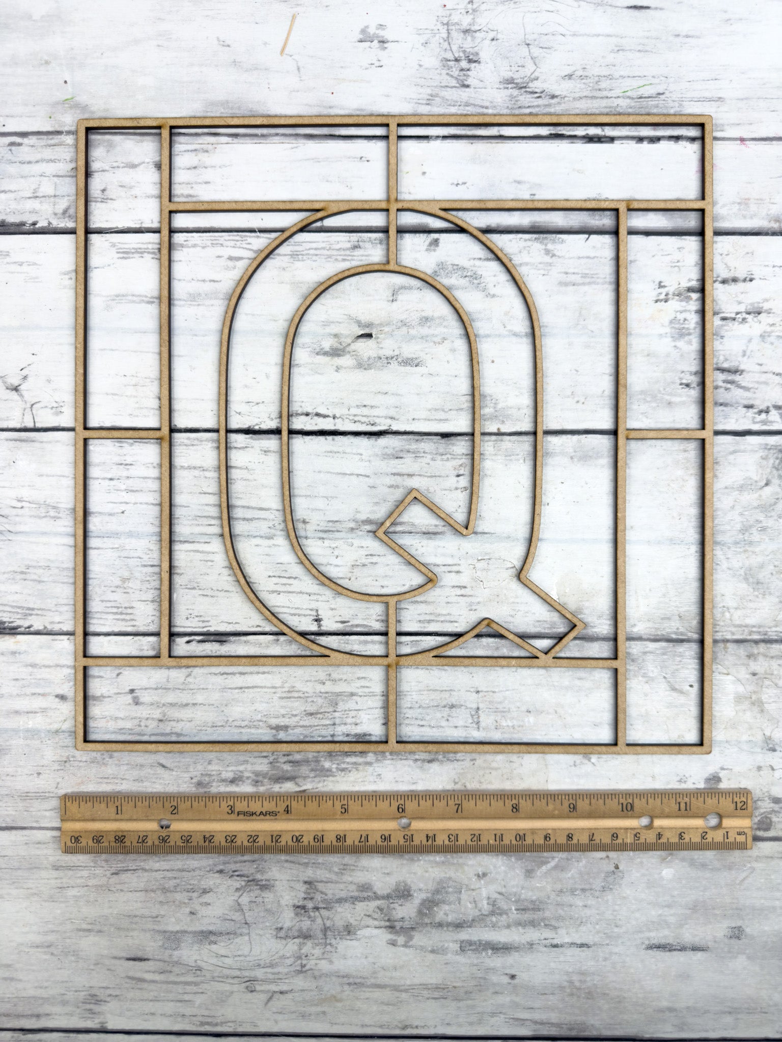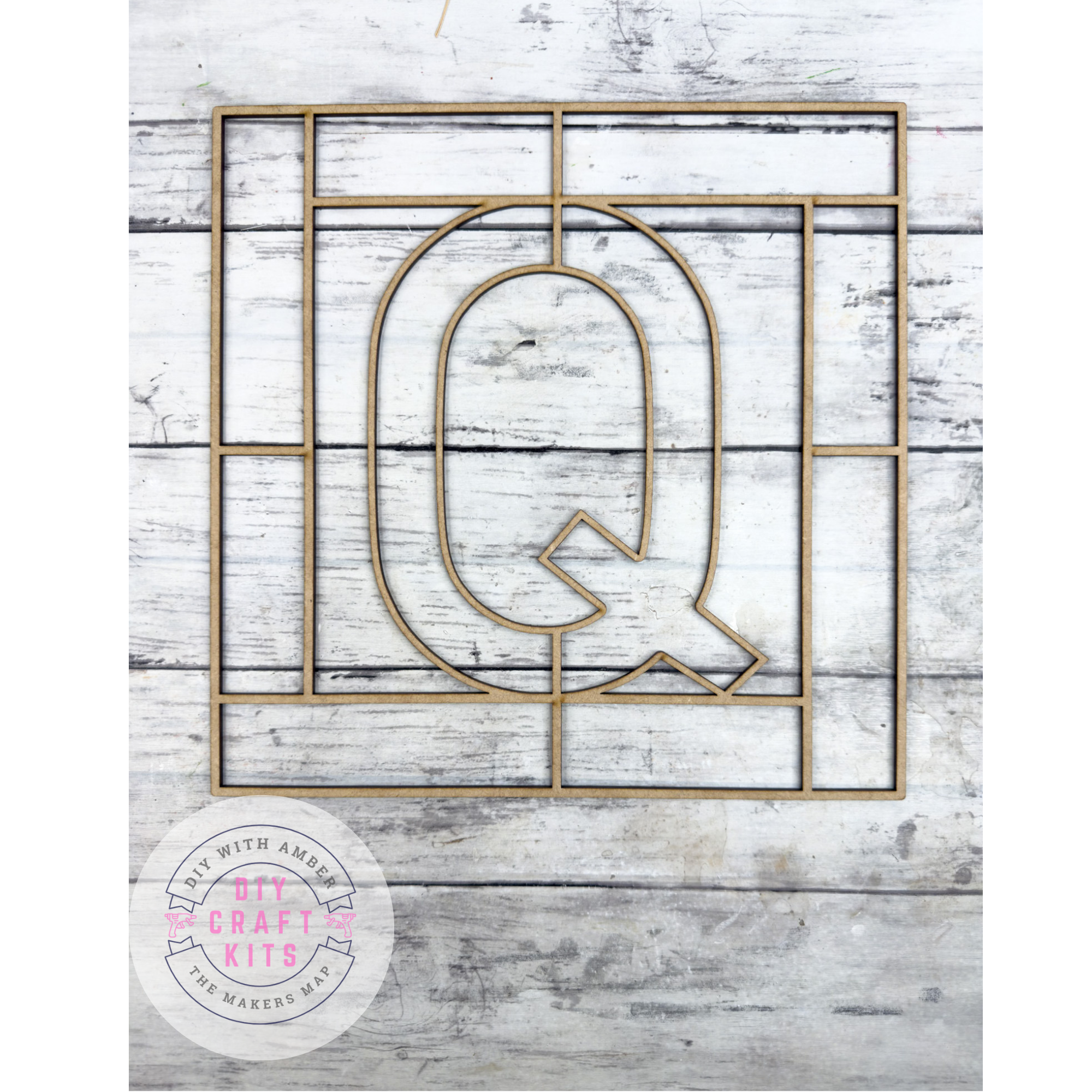 Letter Q Square Monogram Laser Cut Outline Frame Blank