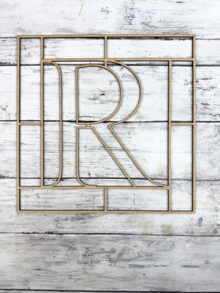 Letter R Square Monogram Laser Cut Outline Frame Blank