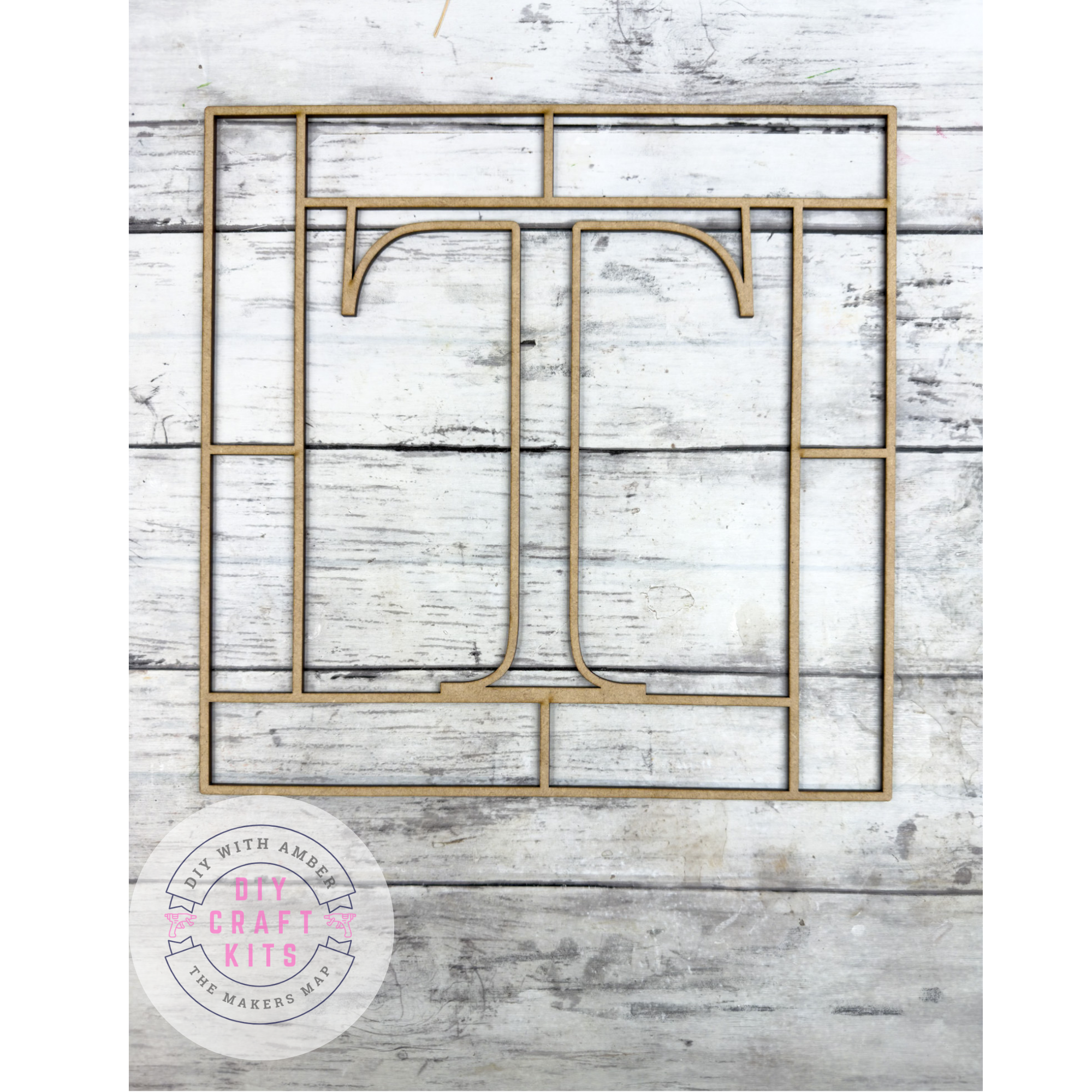 Letter T Square Monogram Laser Cut Outline Frame Blank