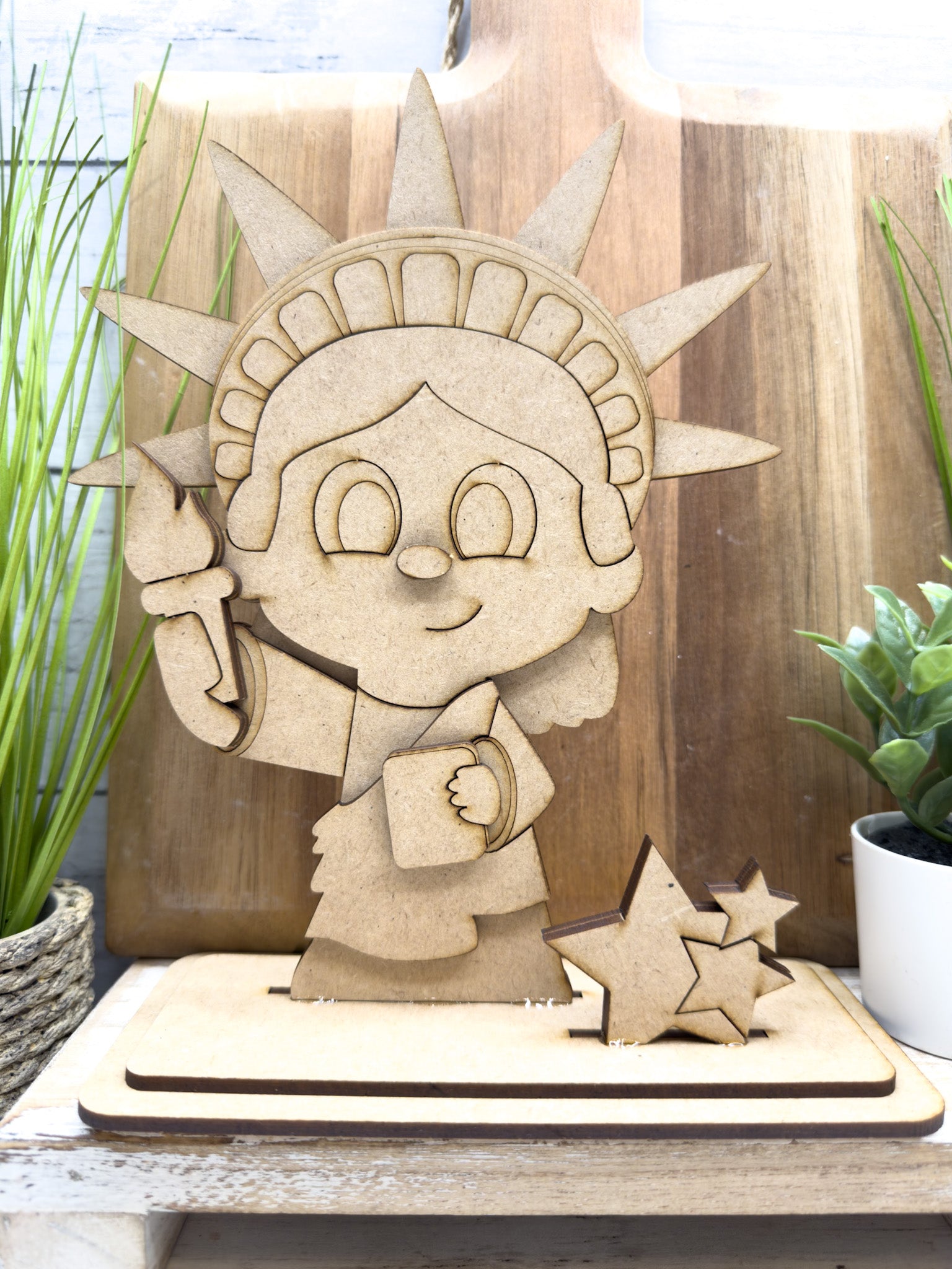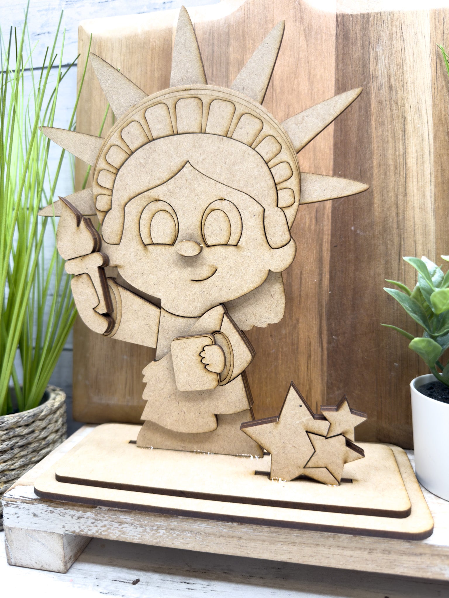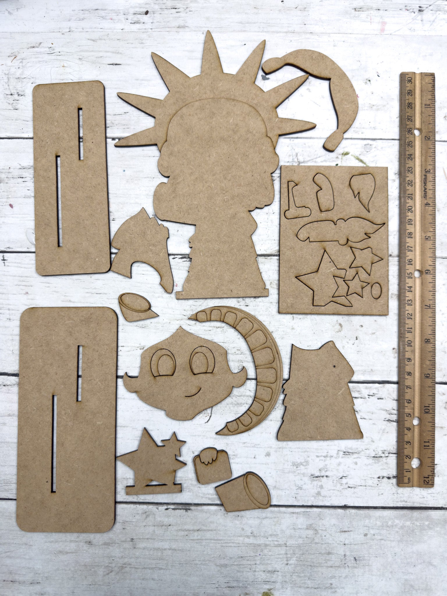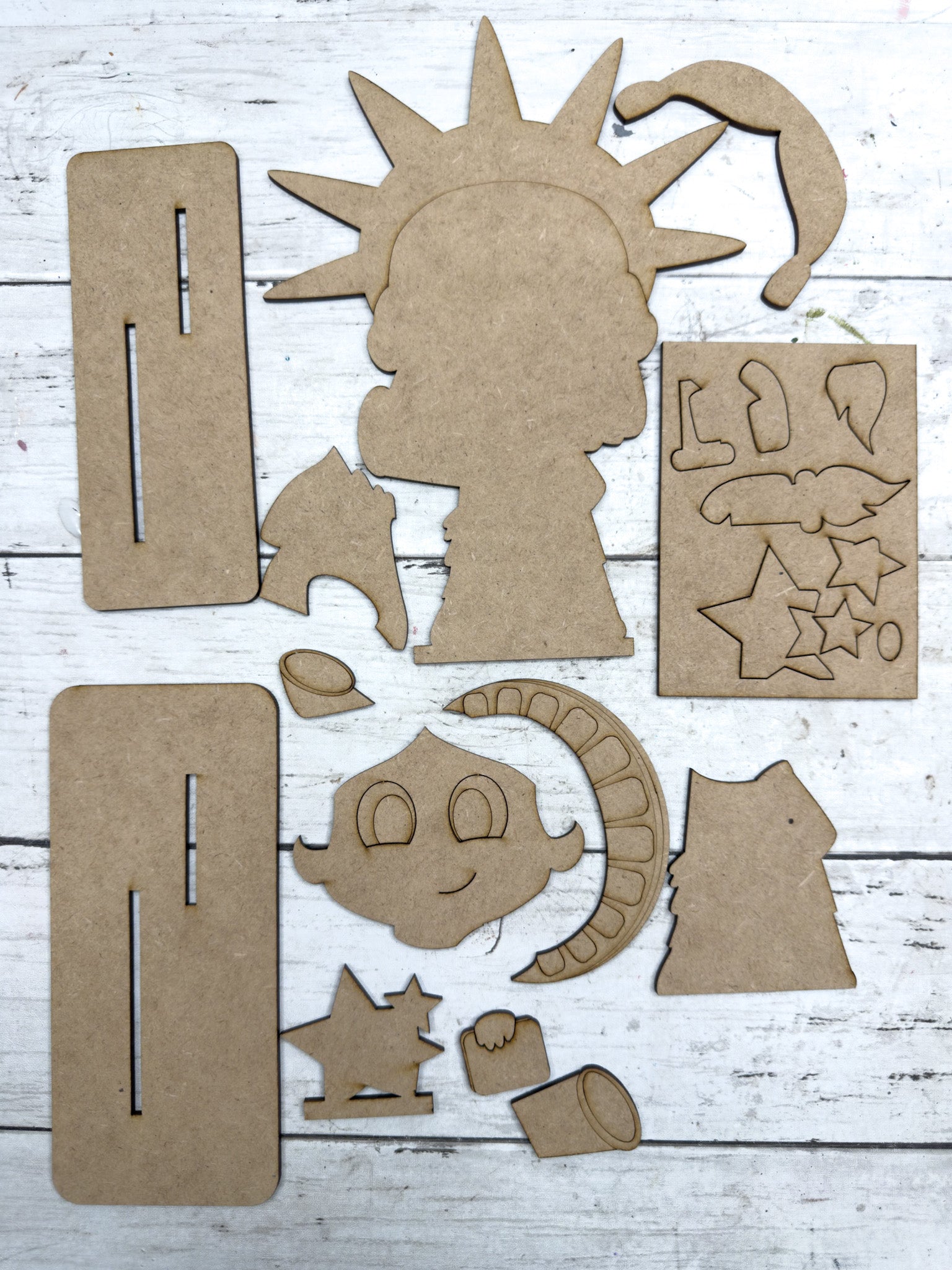 Layered wood pieces to complete the Little Lady Liberty design