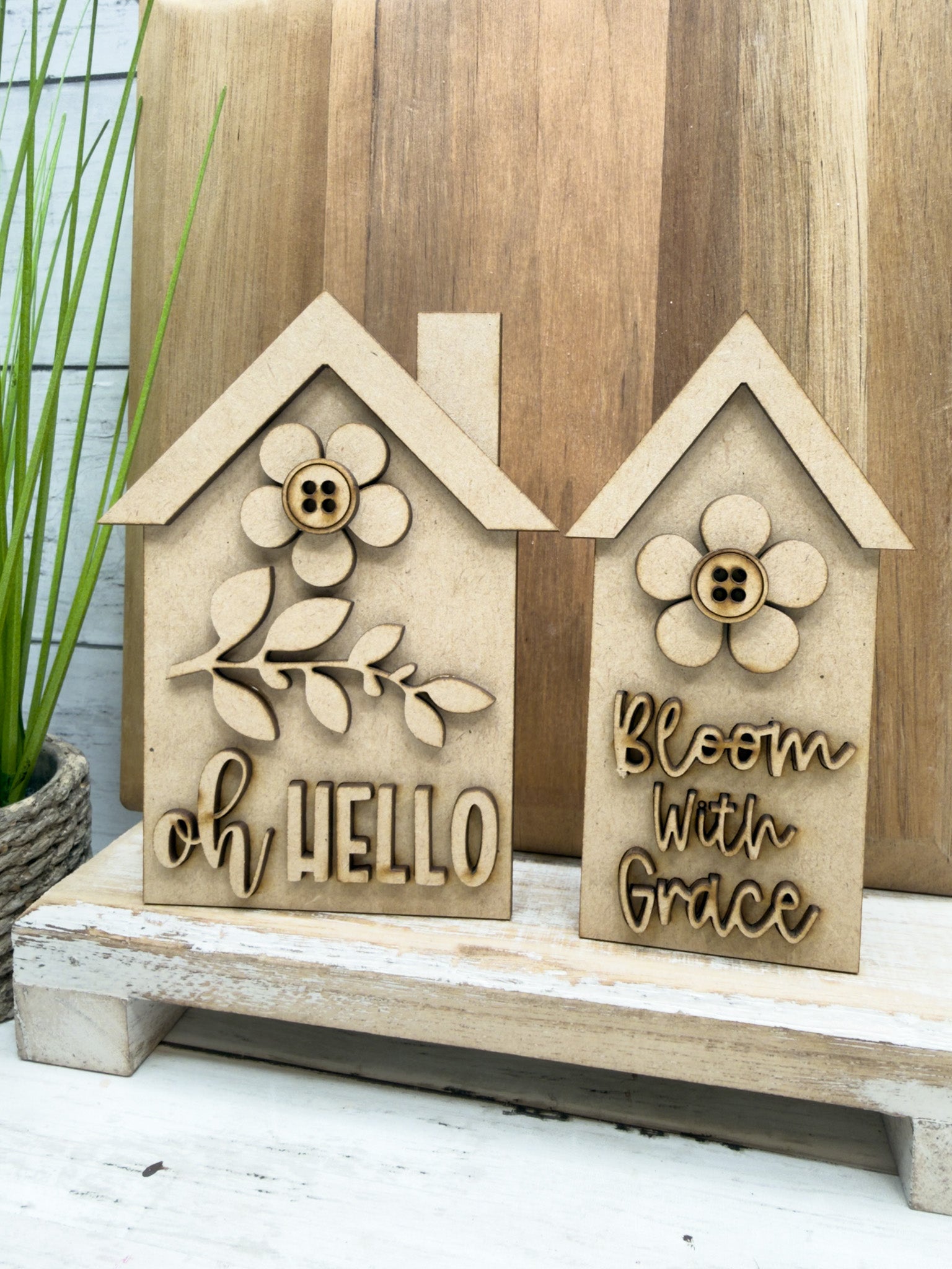 A little reminder to slow down, bloom where you’re planted, and greet each day with grace. This Oh Hello • Bloom with Grace Houses DIY Kit includes two charming layered house sitters that are perfect for everyday décor, tiered trays, or a thoughtful handmade gift.