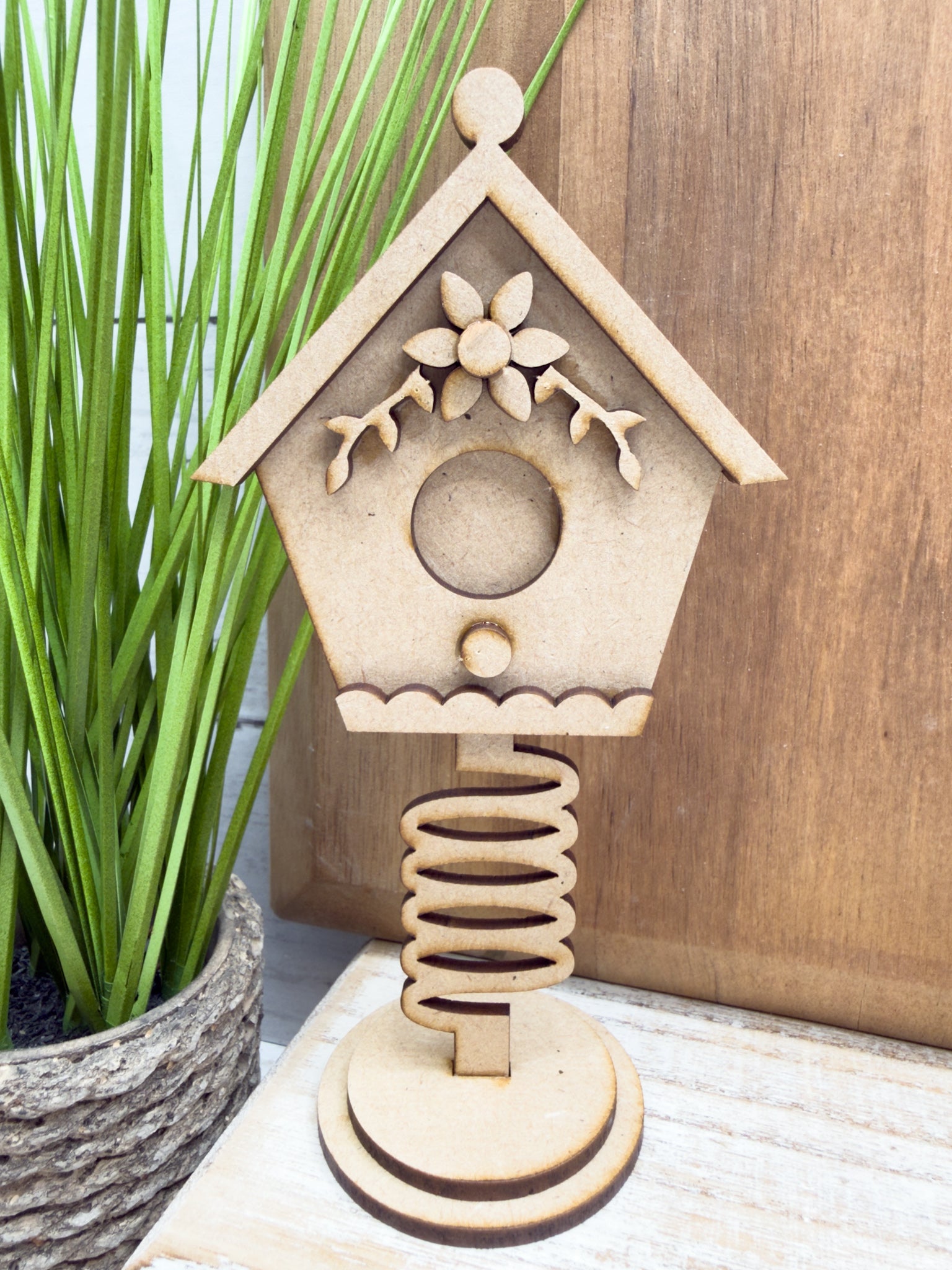 Laser-cut from smooth HDF, this shelf sitter arrives unfinished and ready to paint, stain, glitter, or embellish with your personal style. Perfect for rustic farmhouse sprint décor, festive craft nights, or holiday workshop projects.
