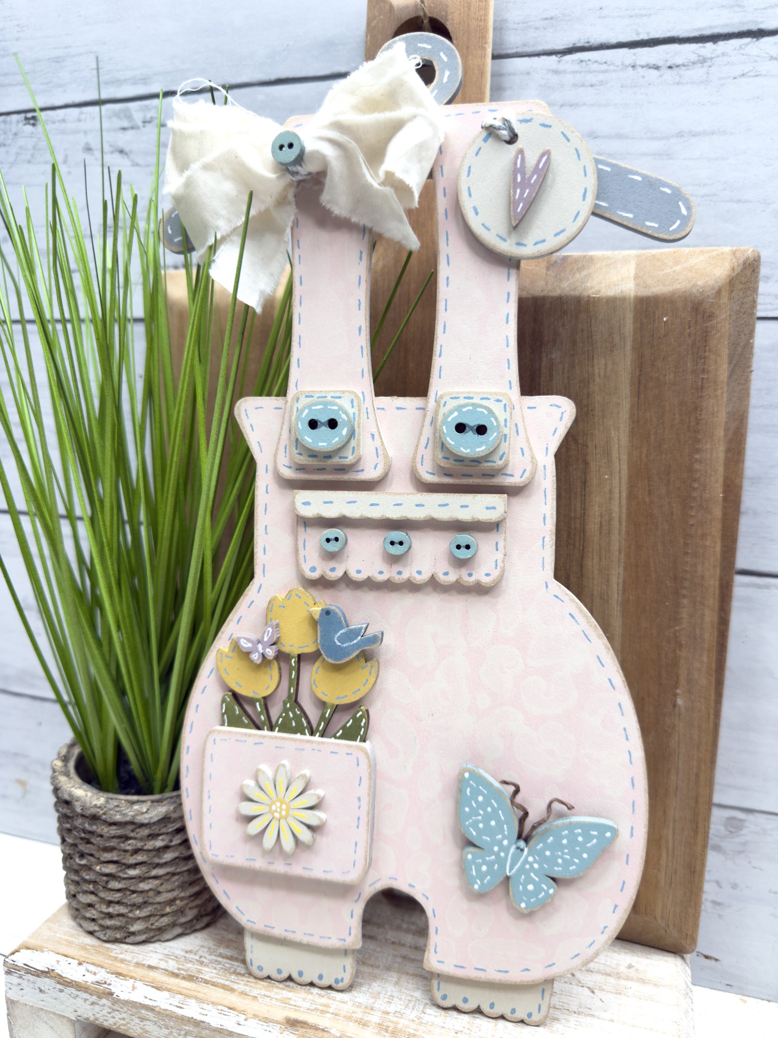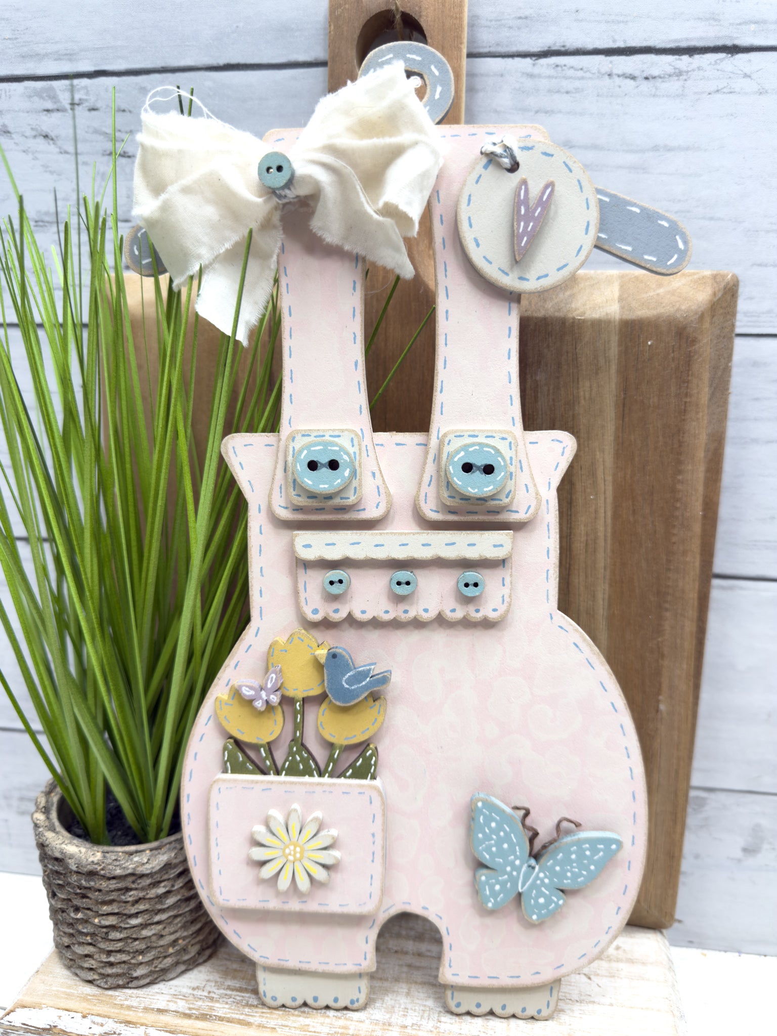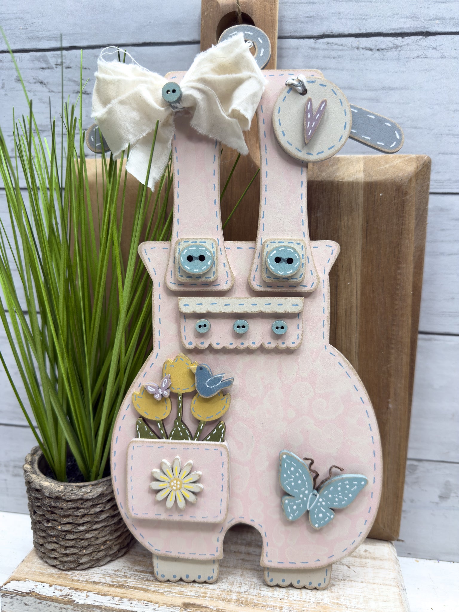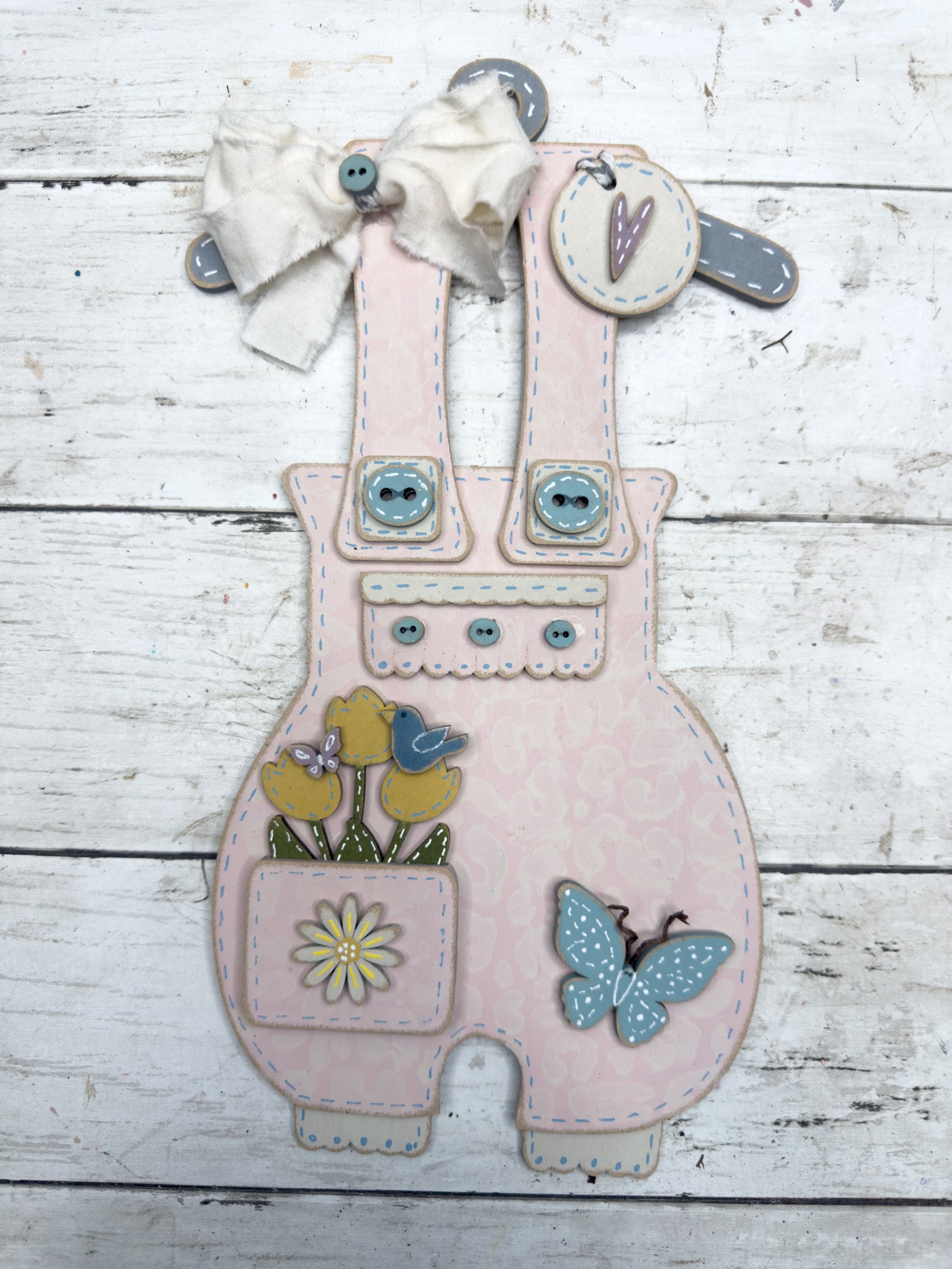 Create a cozy, handmade spring display with this charming primitive overall design. 🌸🦋