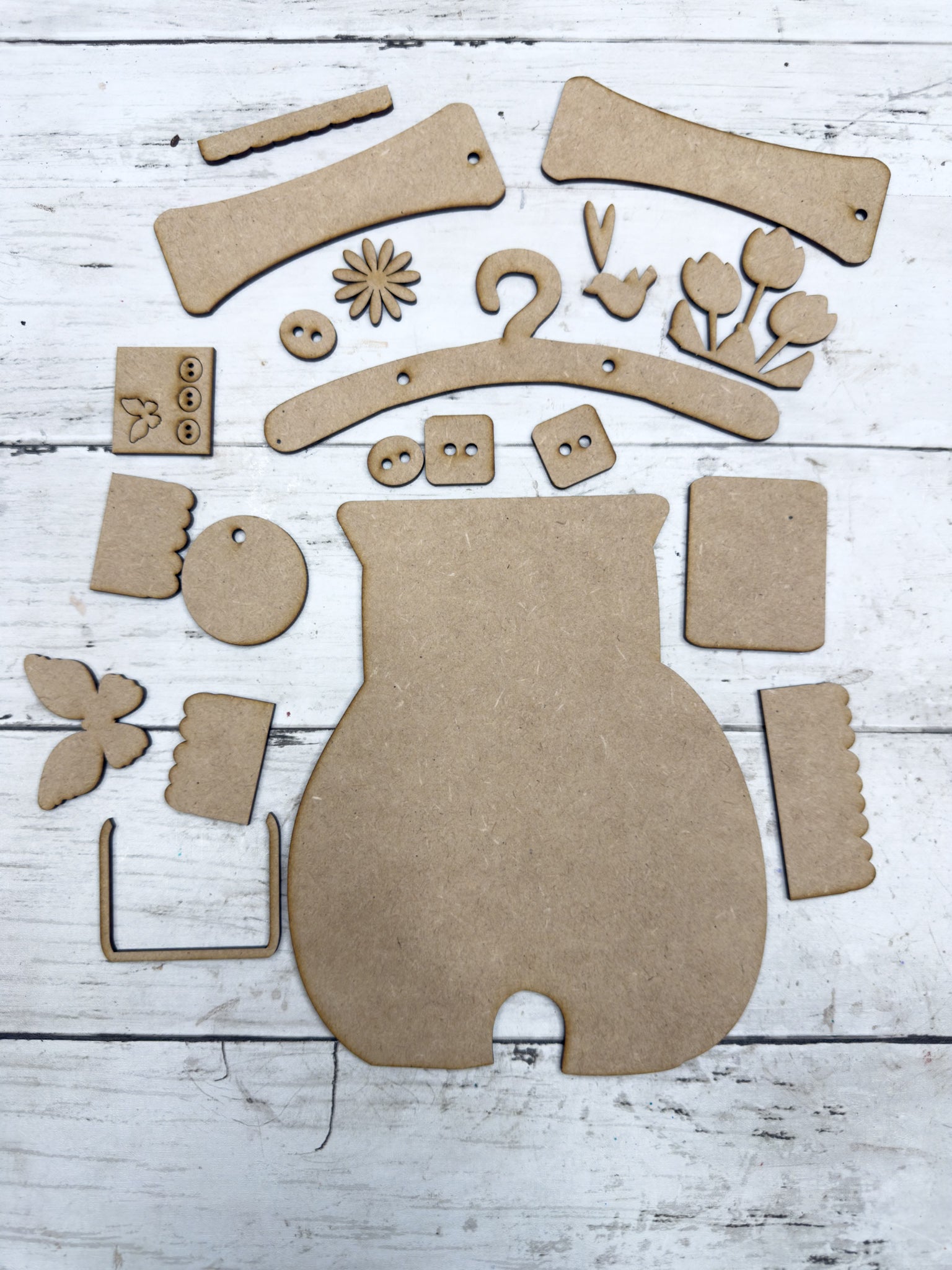 • Laser cut from 1/8” HDF (High Density Fiberboard)