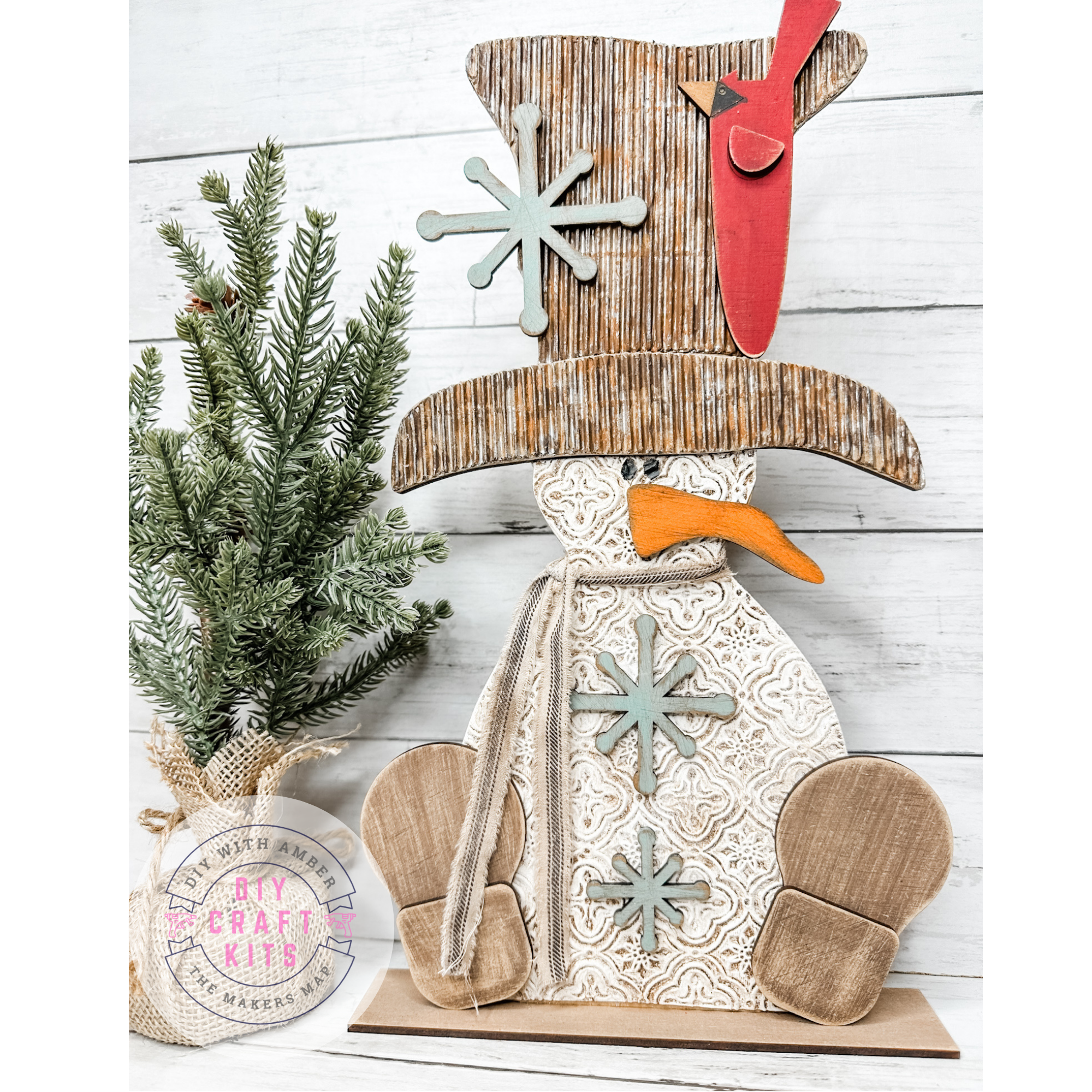 Create charming rustic decor with this Primitive Winter Chunky Snowman DIY Kit! This layered wood snowman features chunky primitive-style pieces, snowflake accents, a cardinal, mittens, and a tall hat — perfect for painting, distressing, or embellishing to match your farmhouse or winter style.