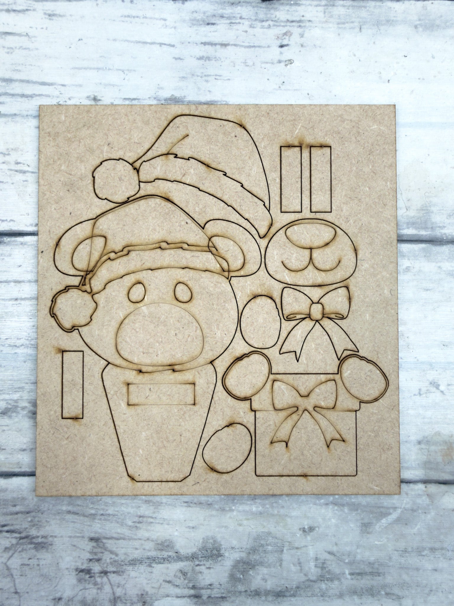 You will only receive the wooden craft kit pieces shown in the photos.