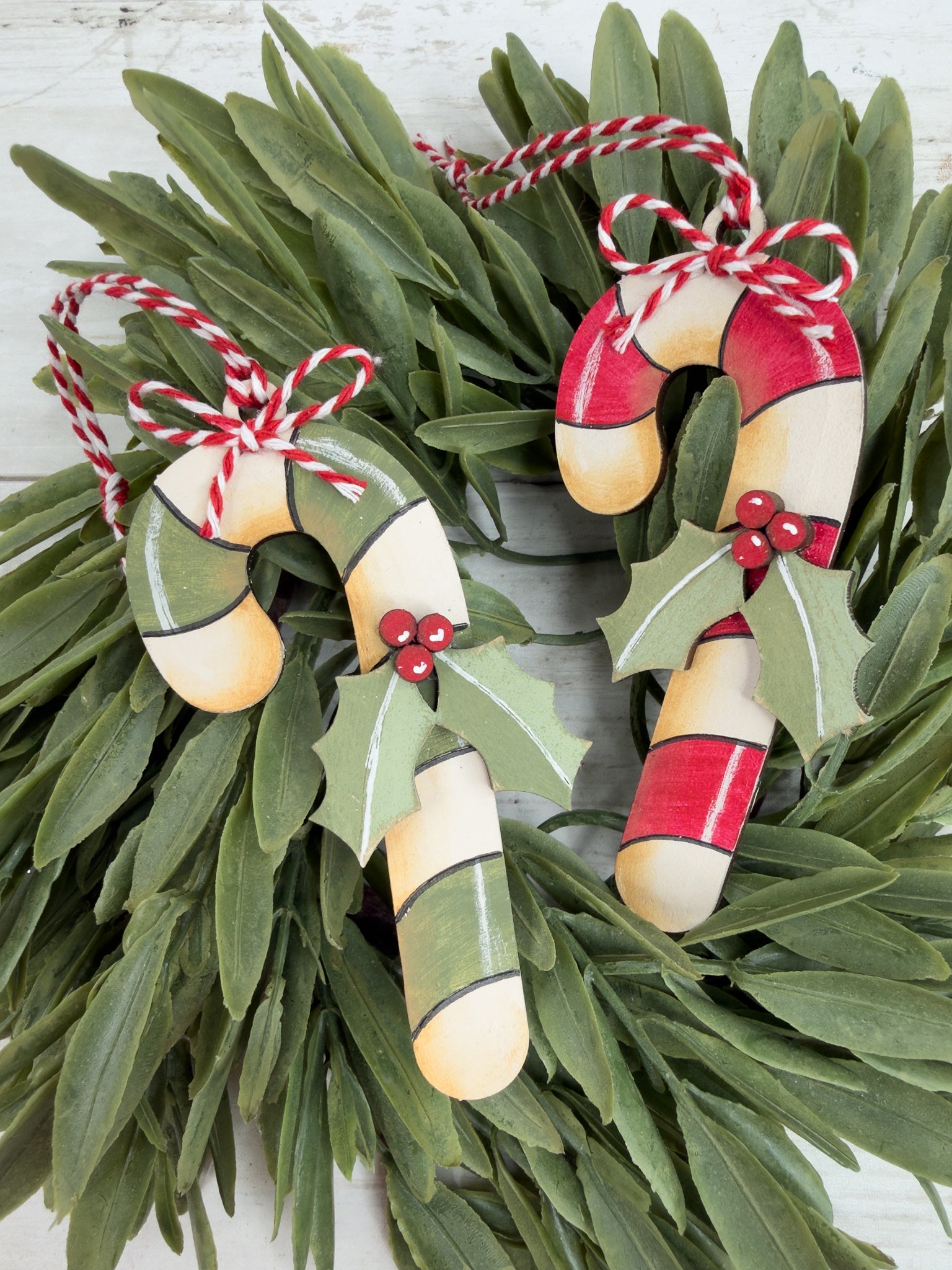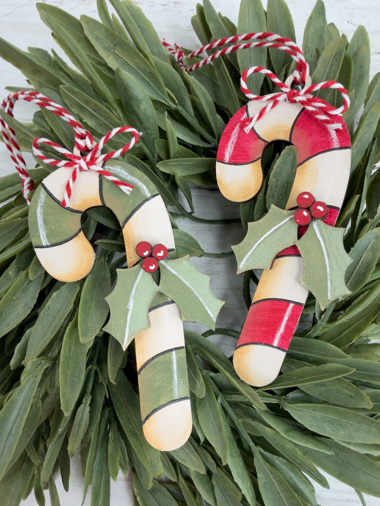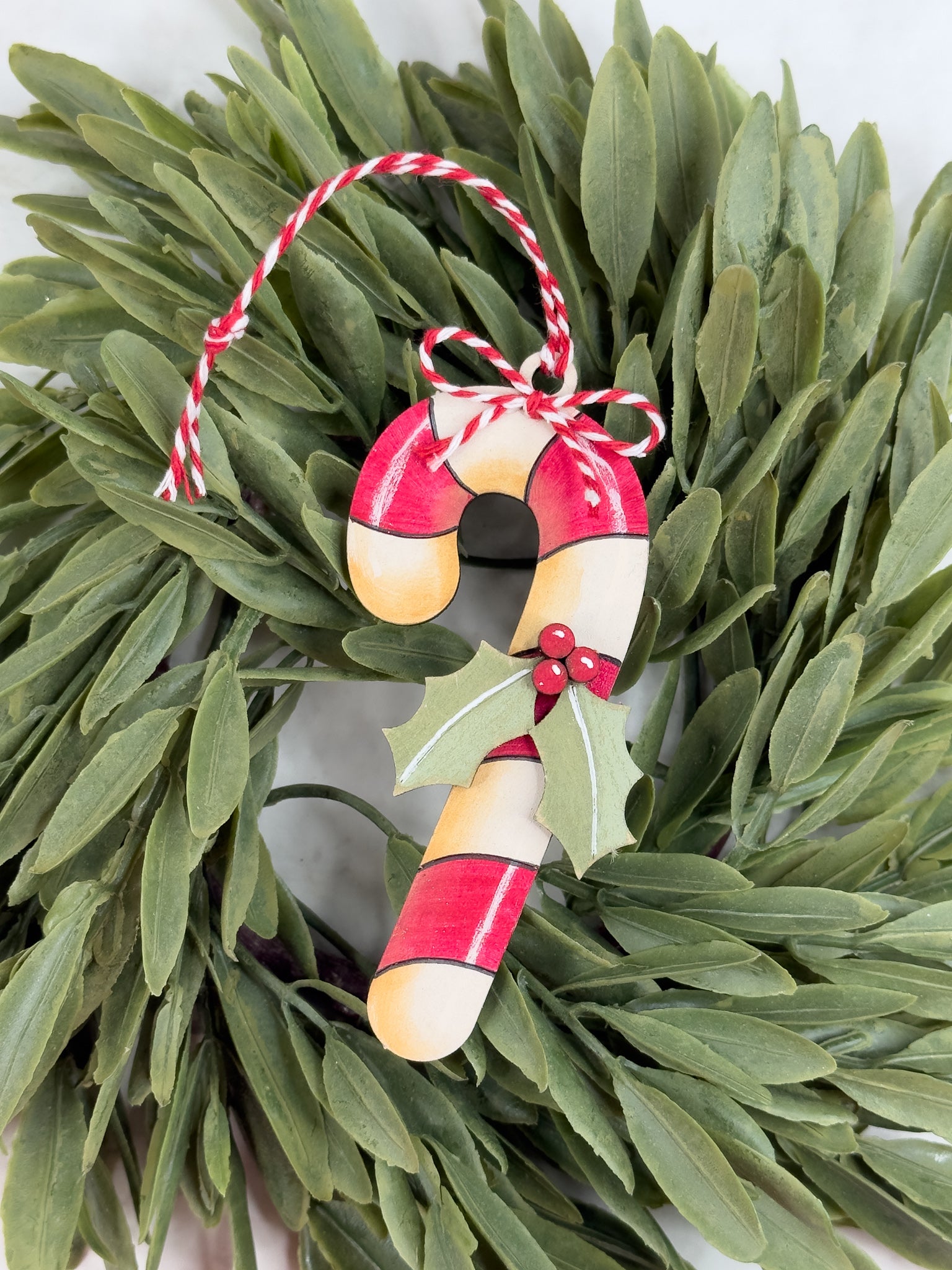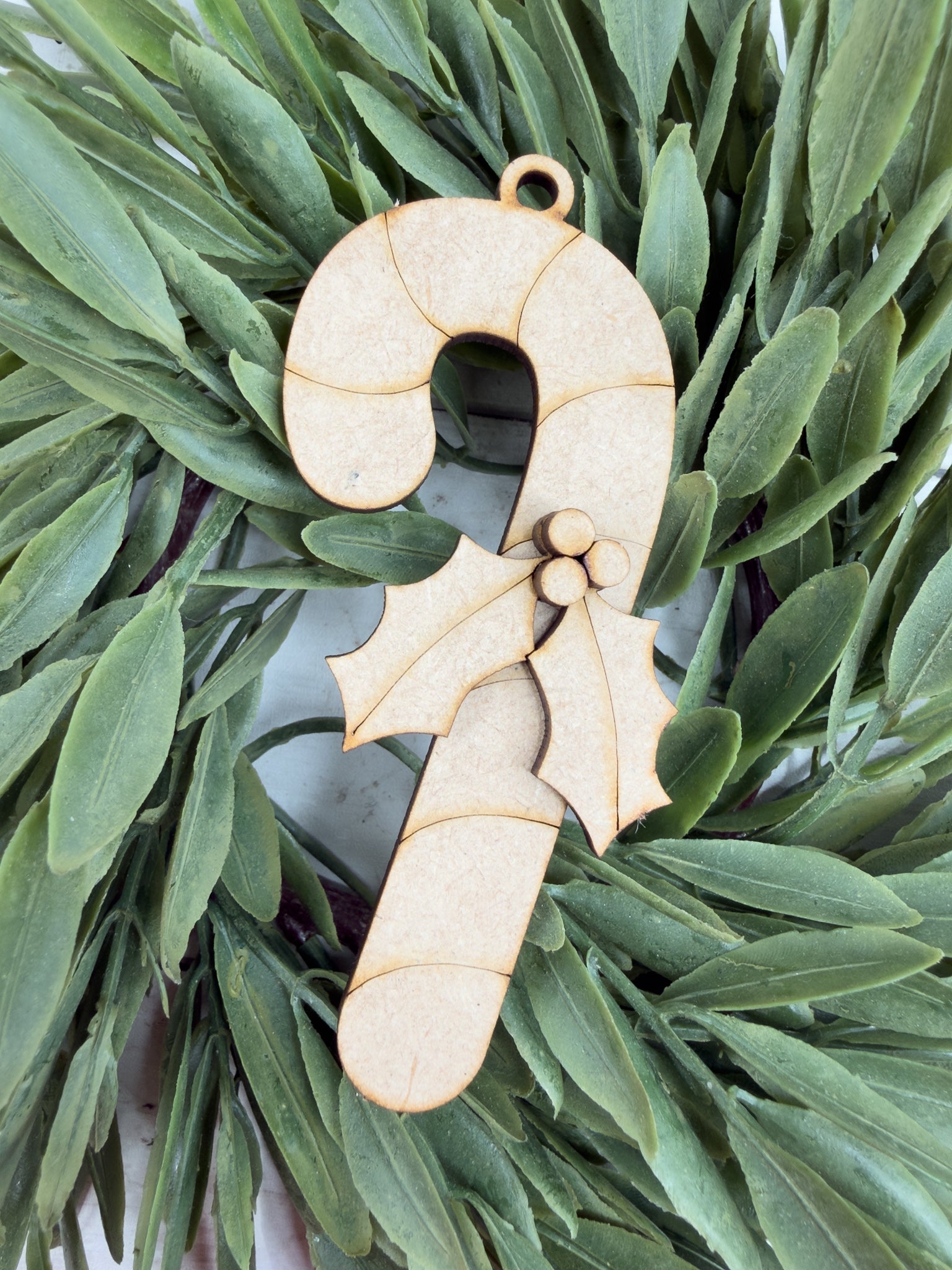 Add a sweet touch to your Christmas décor with this Cute Candy Cane Ornament! Featuring one candy cane festive honly and berries, this piece makes the perfect rustic farmhouse decoration for your holiday tree, wreaths, or handmade gifts.