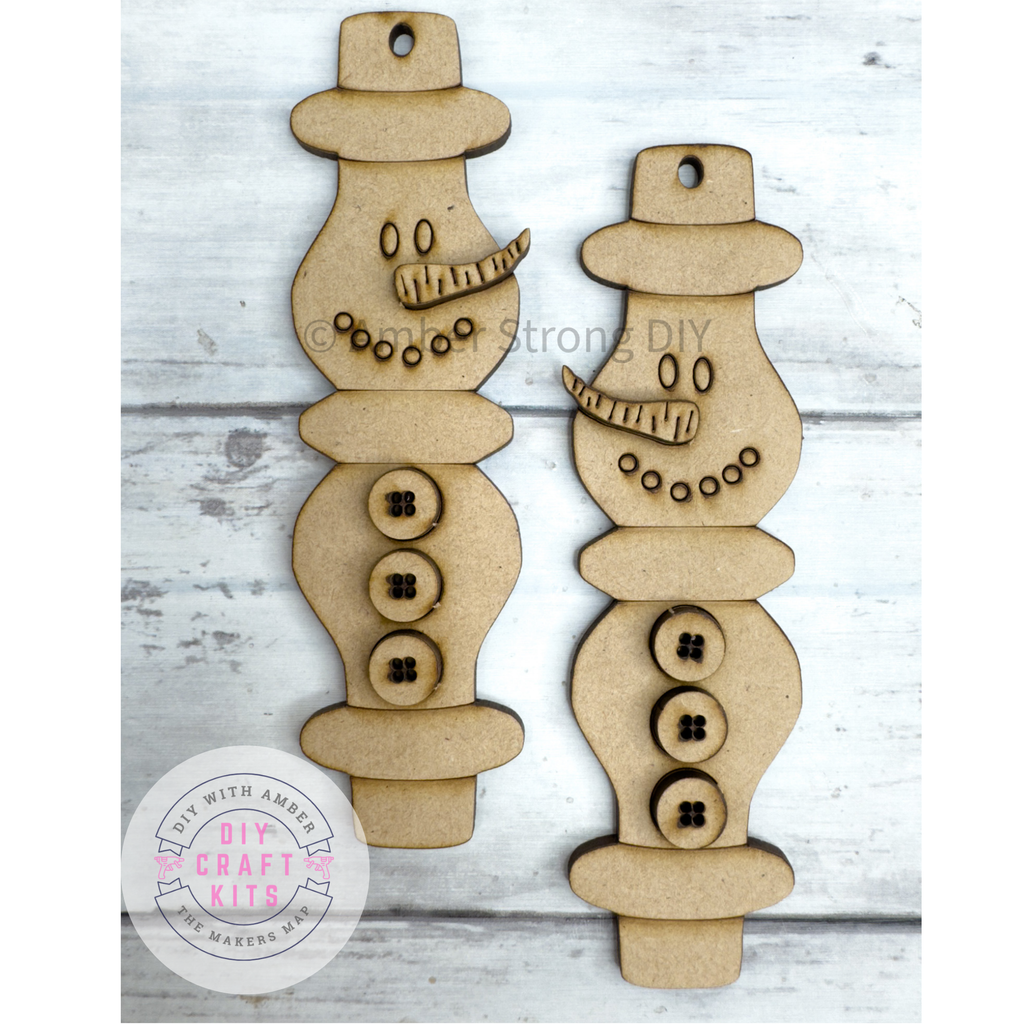 This Small Spindle Snowmen Ornaments DIY Kit is so unique! You get two smaller sized spindle snowmen that you can hang as ornaments on your Christmas tree!