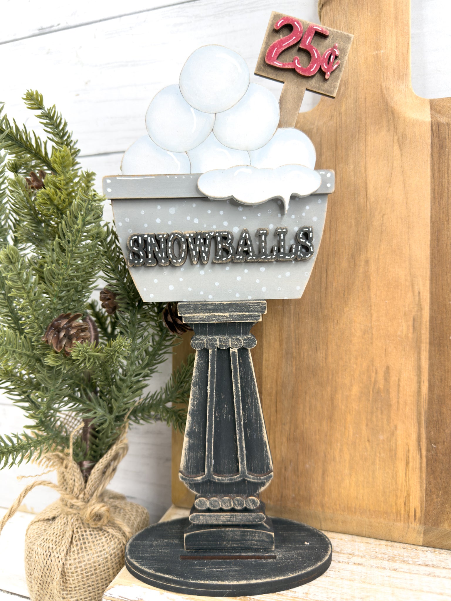 This Snowballs insert for our Interchangeable Spindle Base would look amazing added into your winter decor or mixed in with the decor on your shelves.