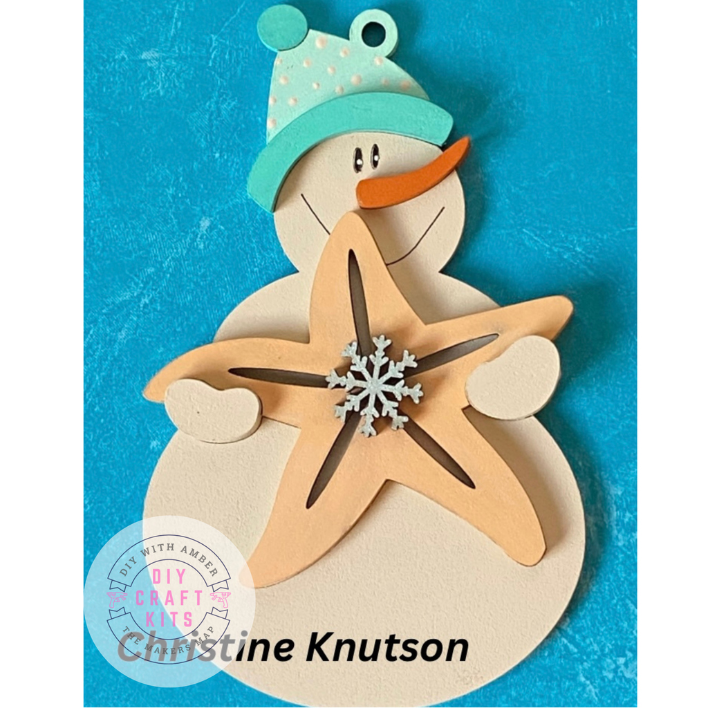 Bring a coastal twist to your holiday décor with this charming Snowman with Starfish ornament! Made from laser-cut 1/8” HDF, this layered ornament features a festive snowman hugging a starfish with a delicate snowflake detail in the center. Ready for paint, glitter, and holiday cheer!