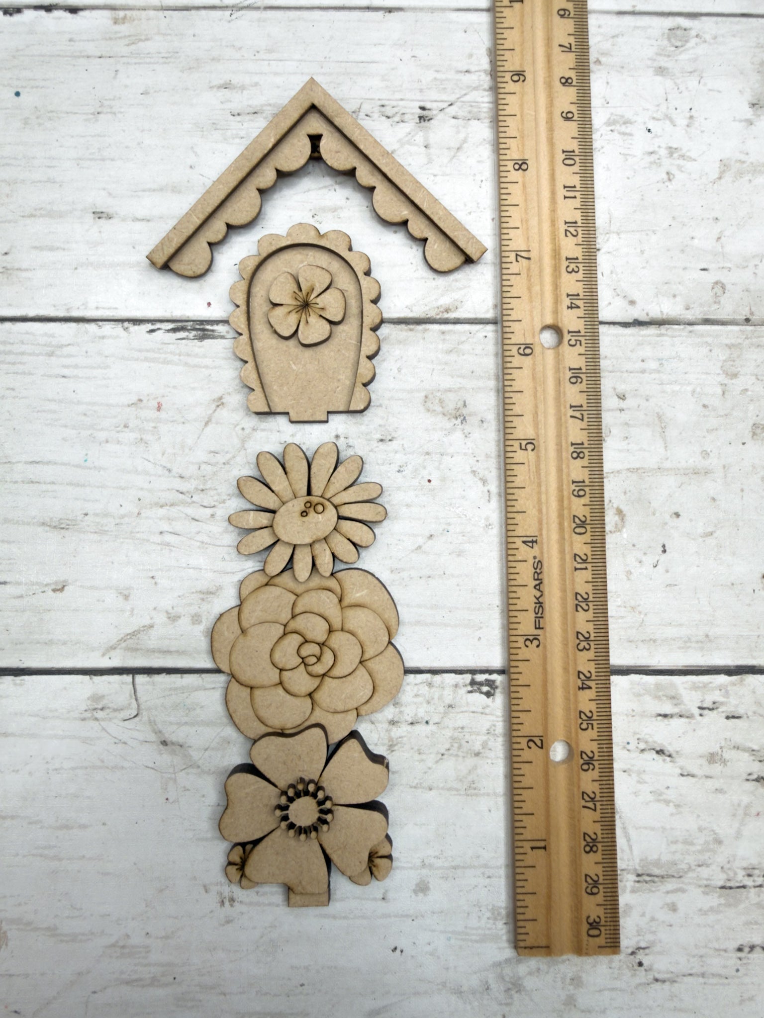 You will only receive the wooden craft kit pieces shown in the photos. Finished, painted examples are for inspiration only.