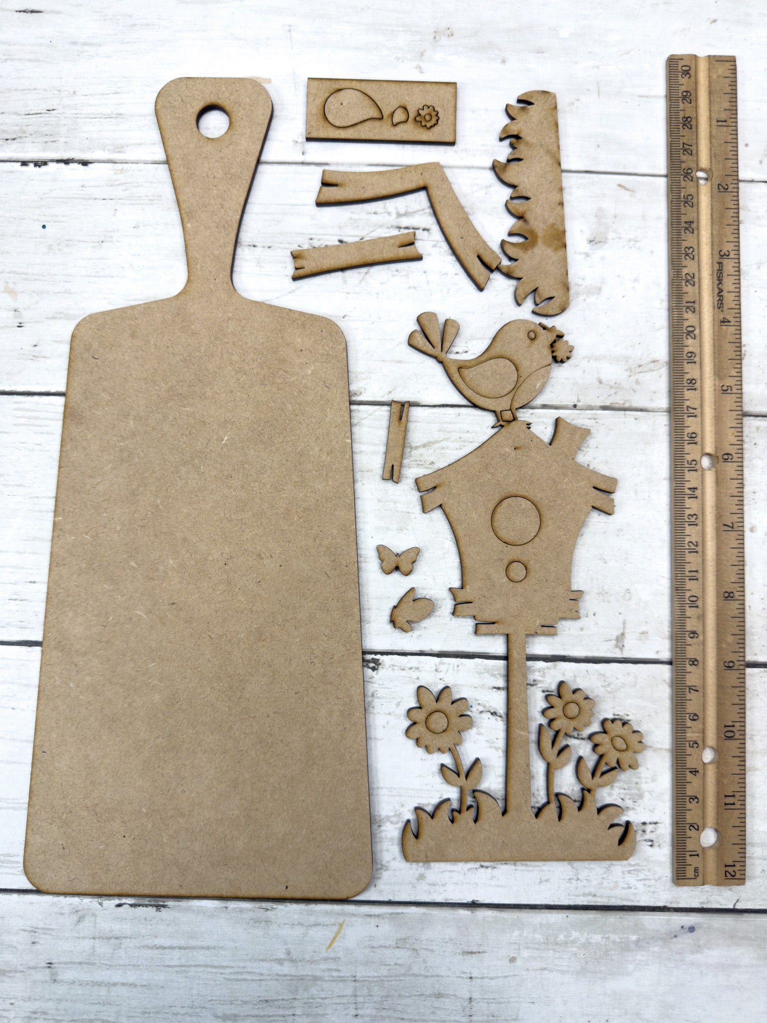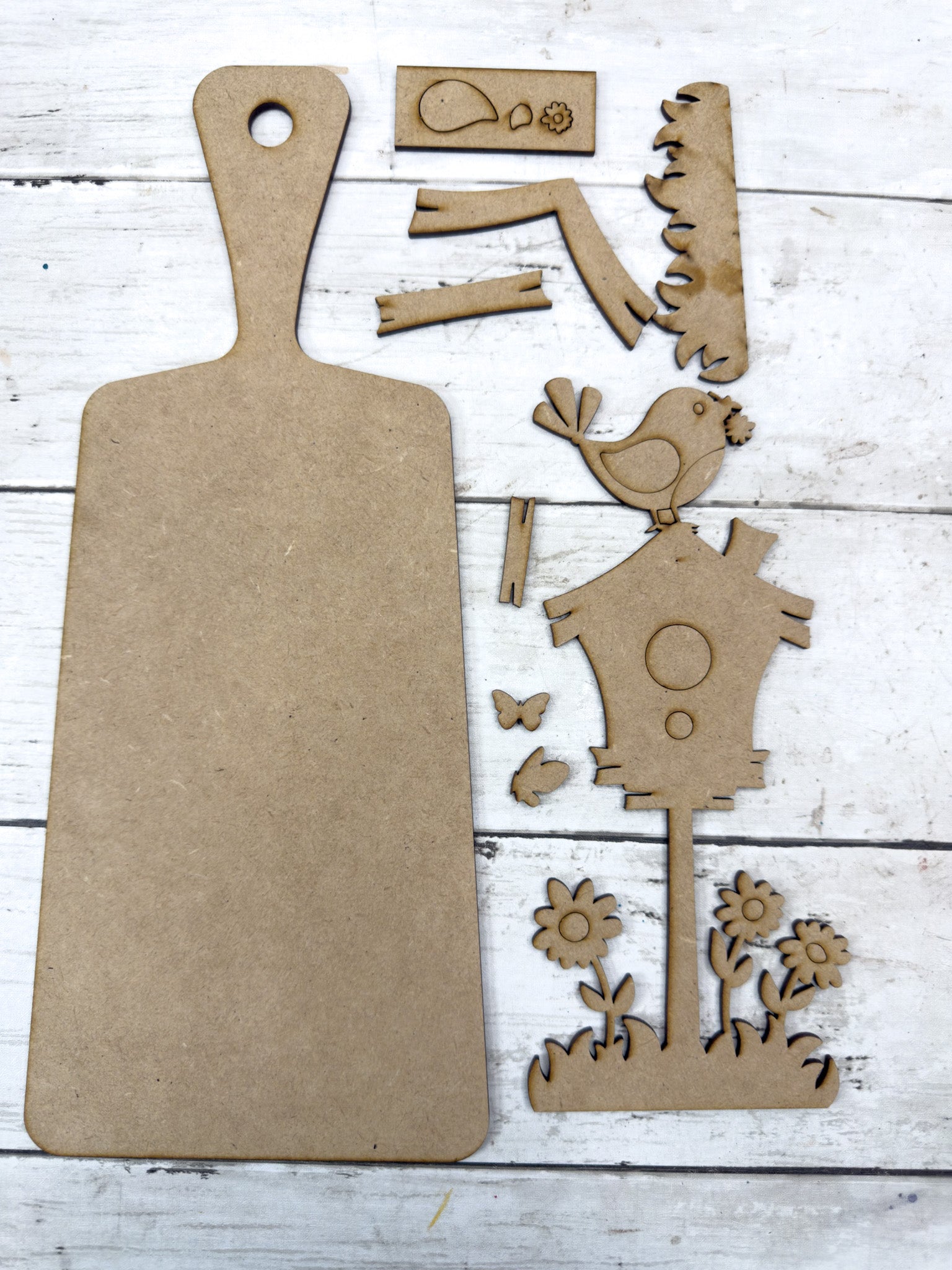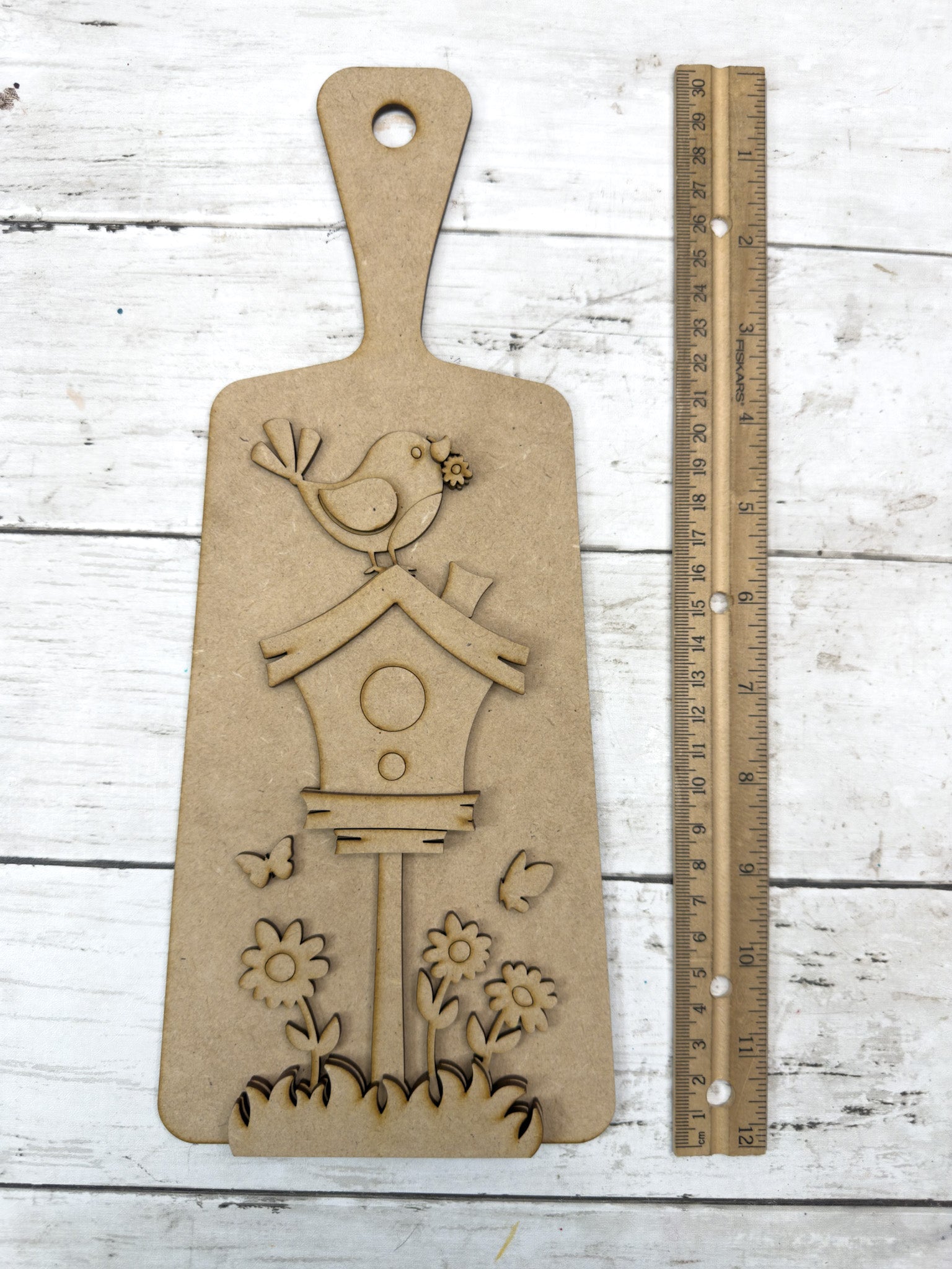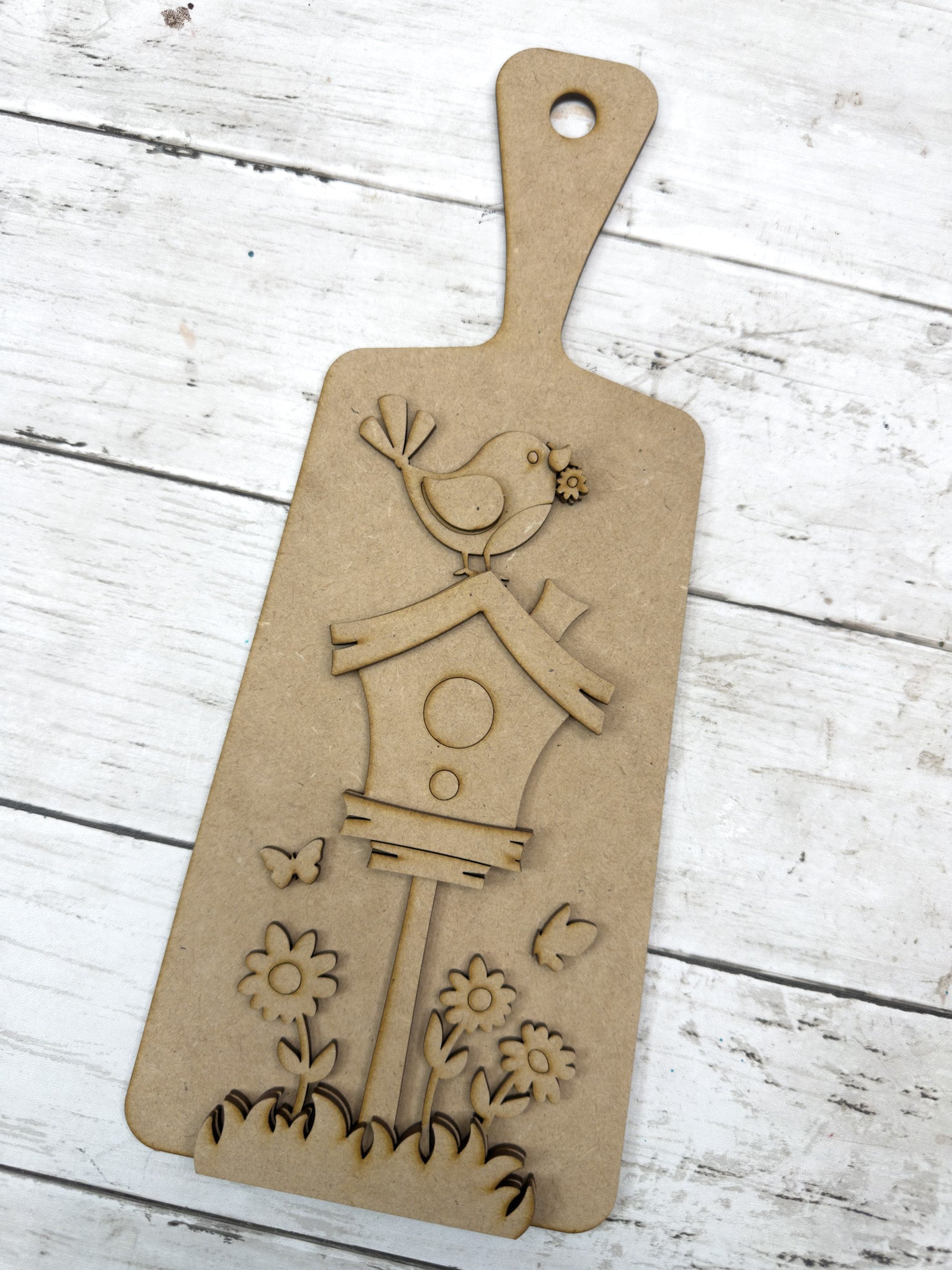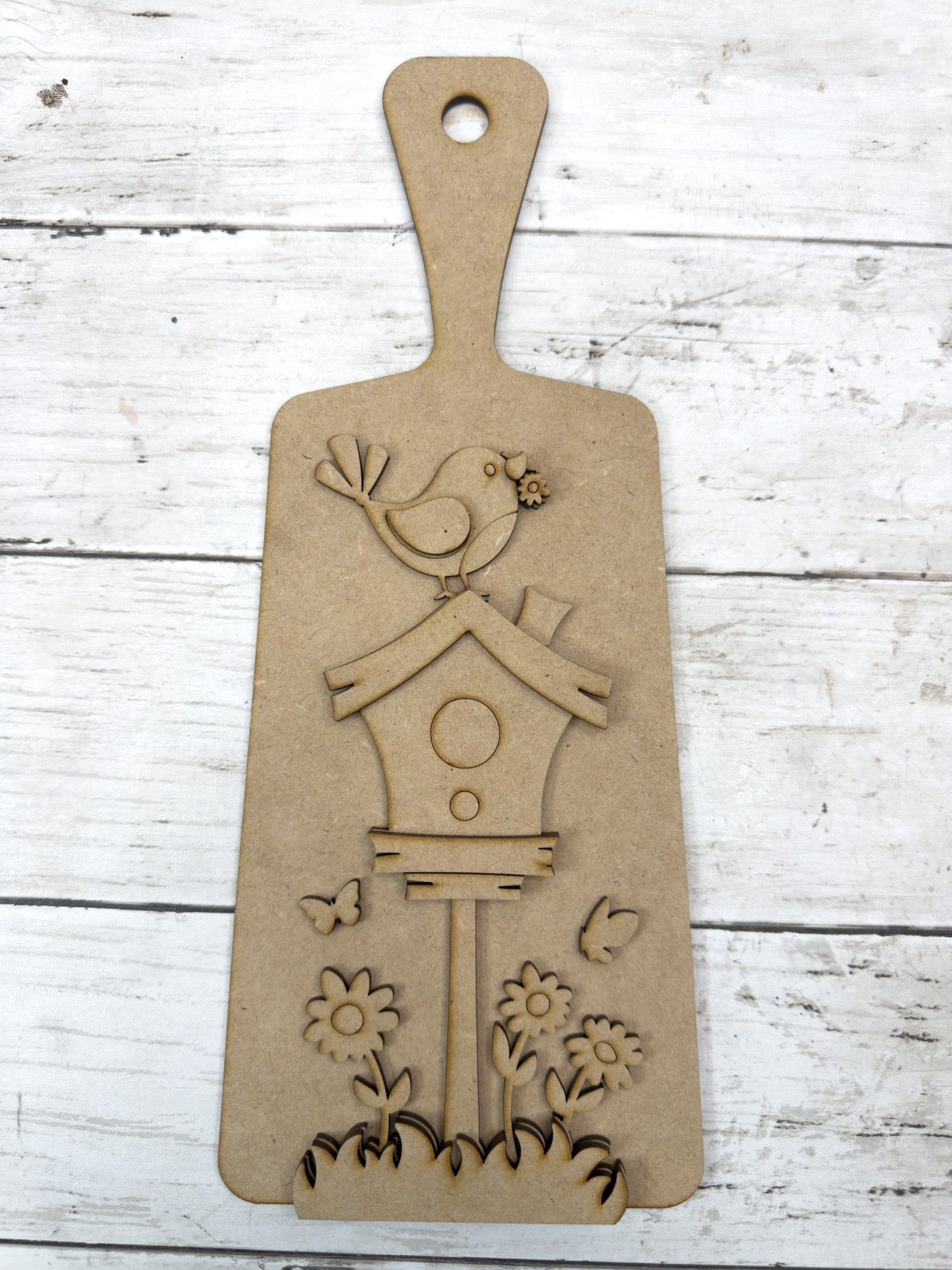 This sweet Spring Birdhouse Cutting Board Paddle DIY Kit is full of cheerful charm with its layered birdhouse and floral details. Perfect for shelves, tiered trays, or a happy handmade gift for any bird lover.