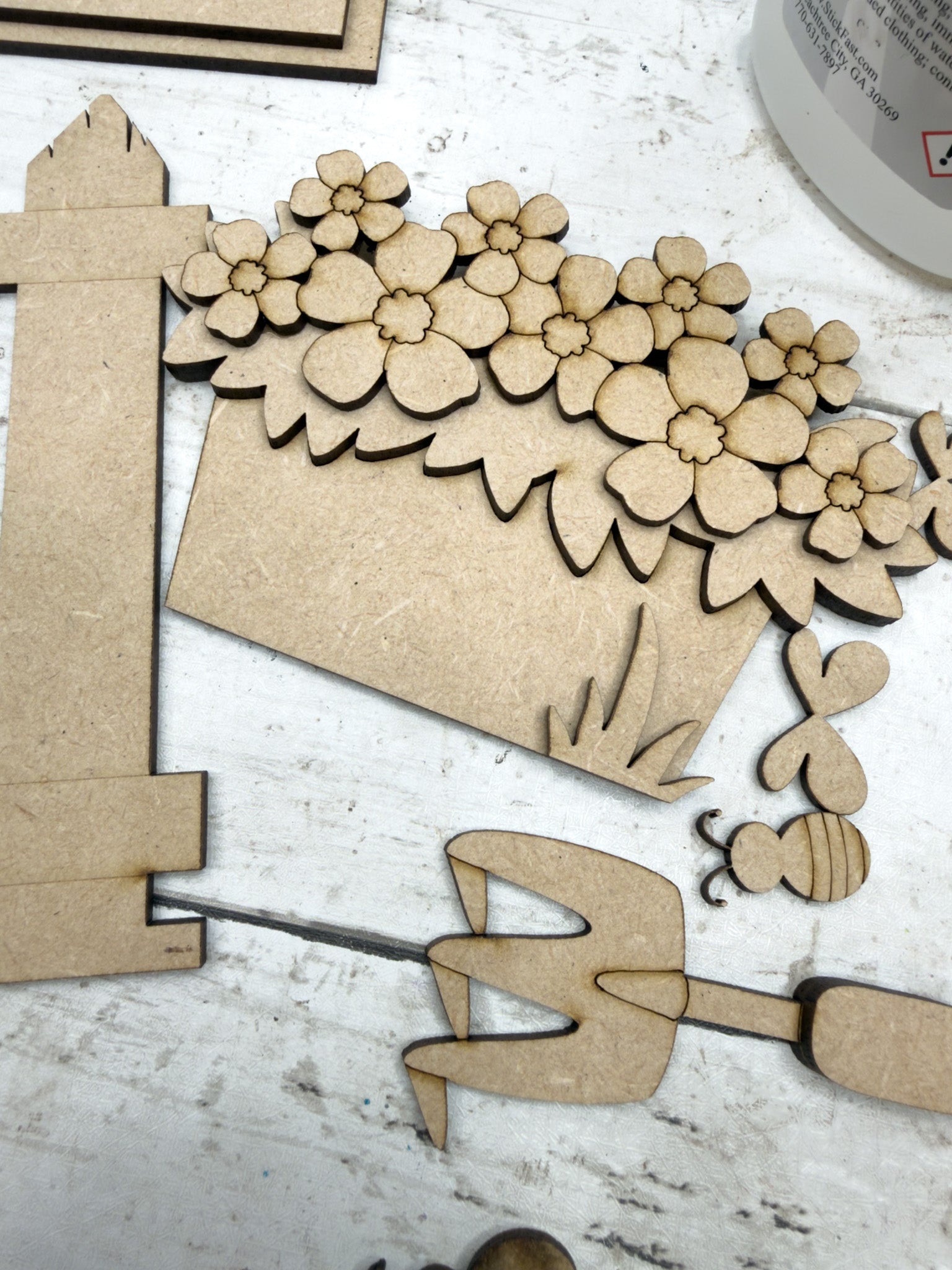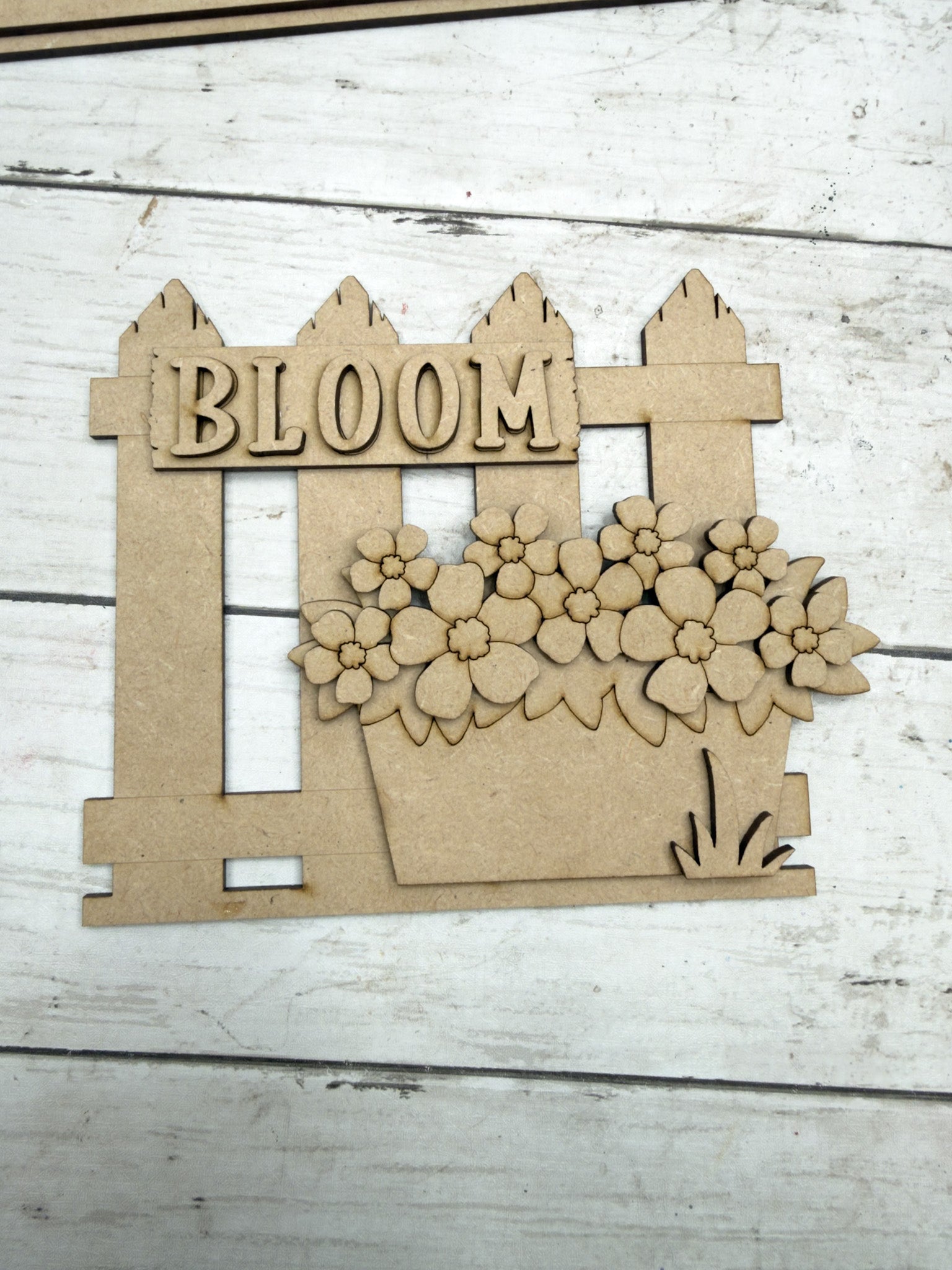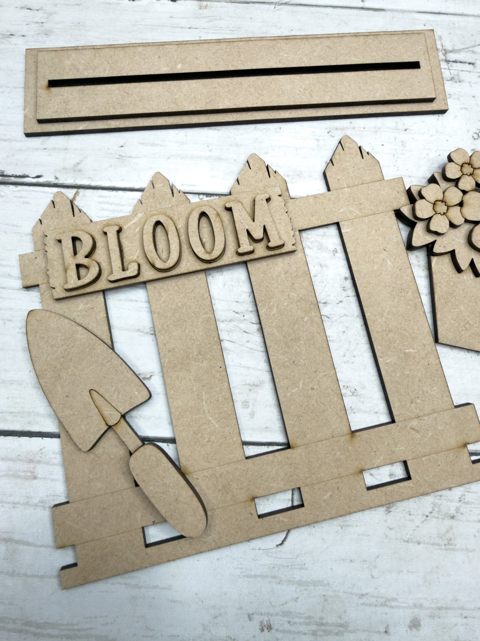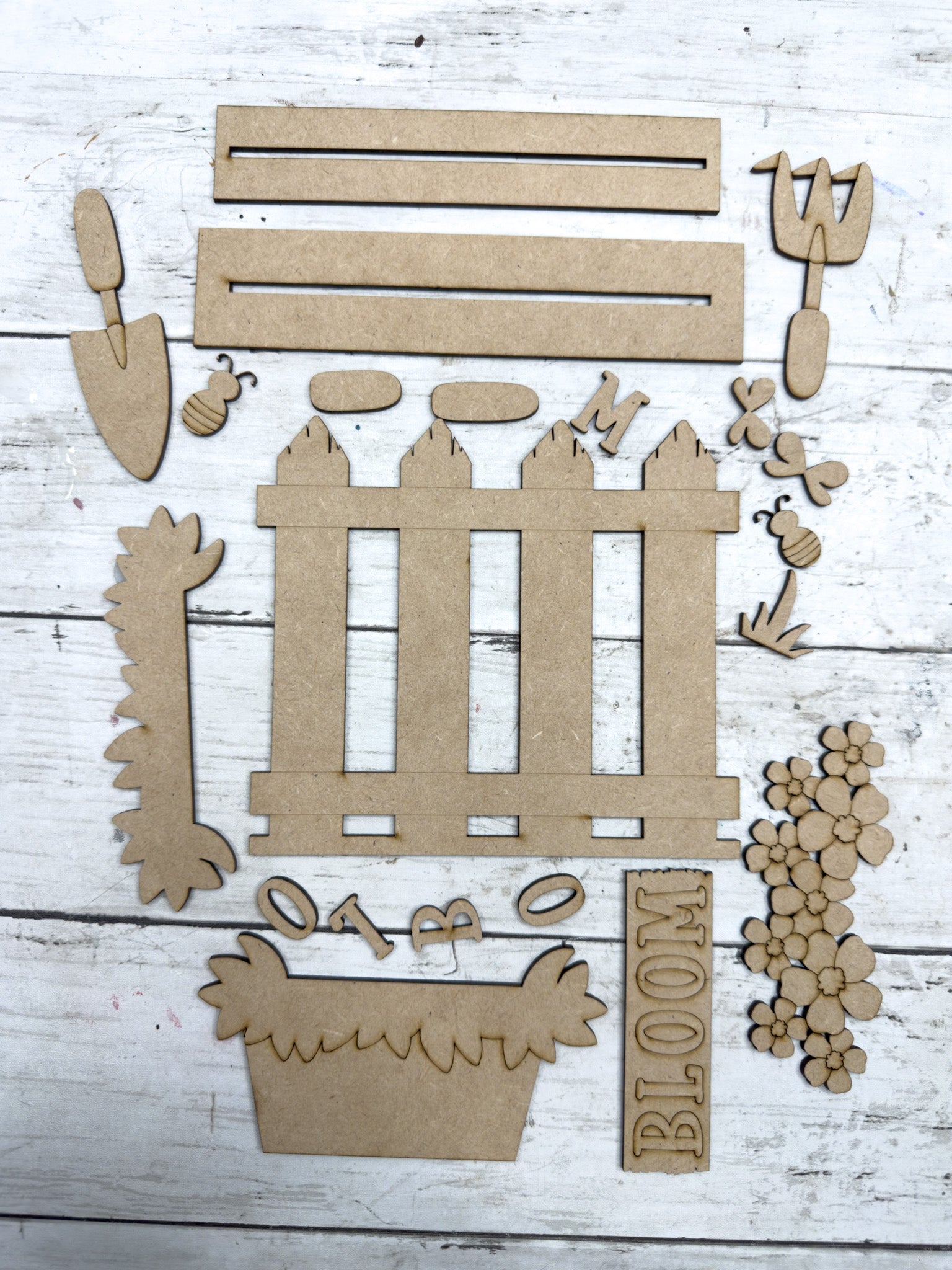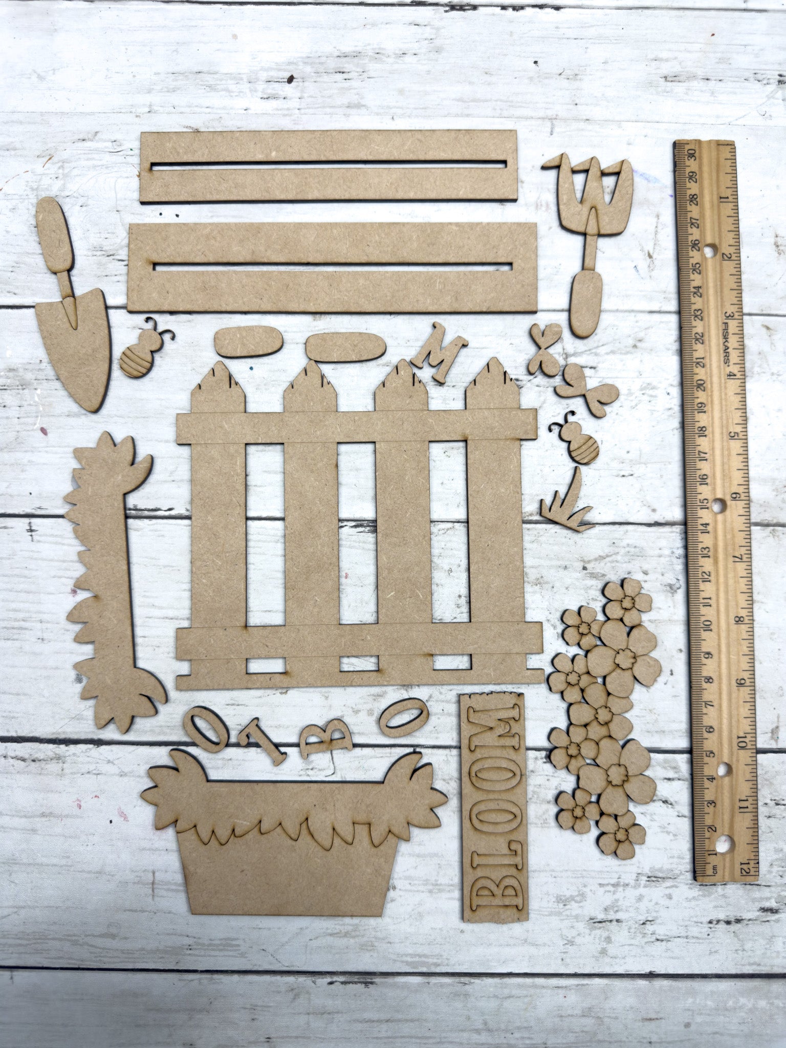 Welcome spring the handmade way with our Spring Bloom Fence DIY Kit! This layered laser-cut design features a charming picket fence, blooming flower box, sweet bees, garden tools, and a bold “BLOOM” sign — everything you love about spring in one beautiful shelf sitter.
