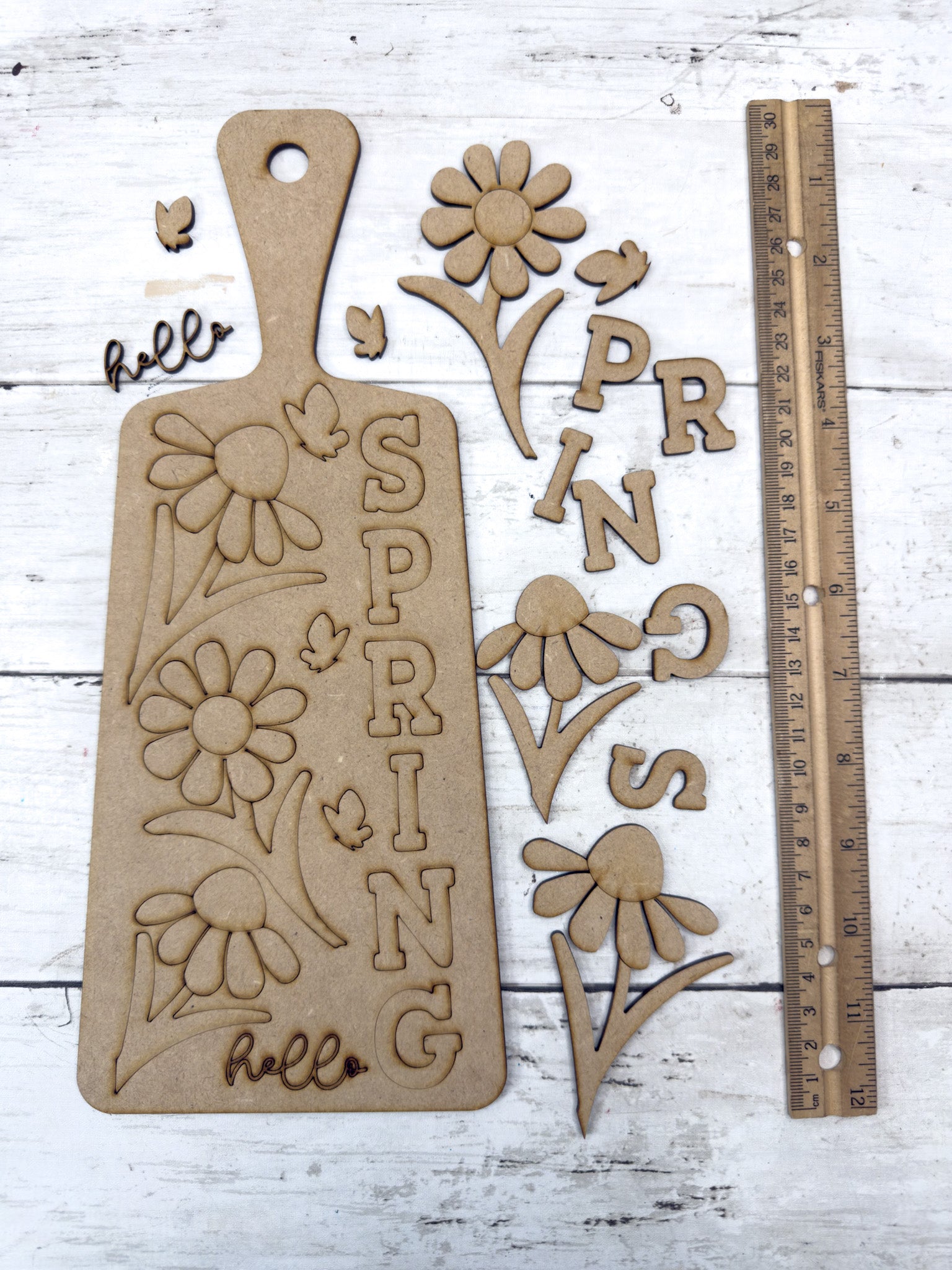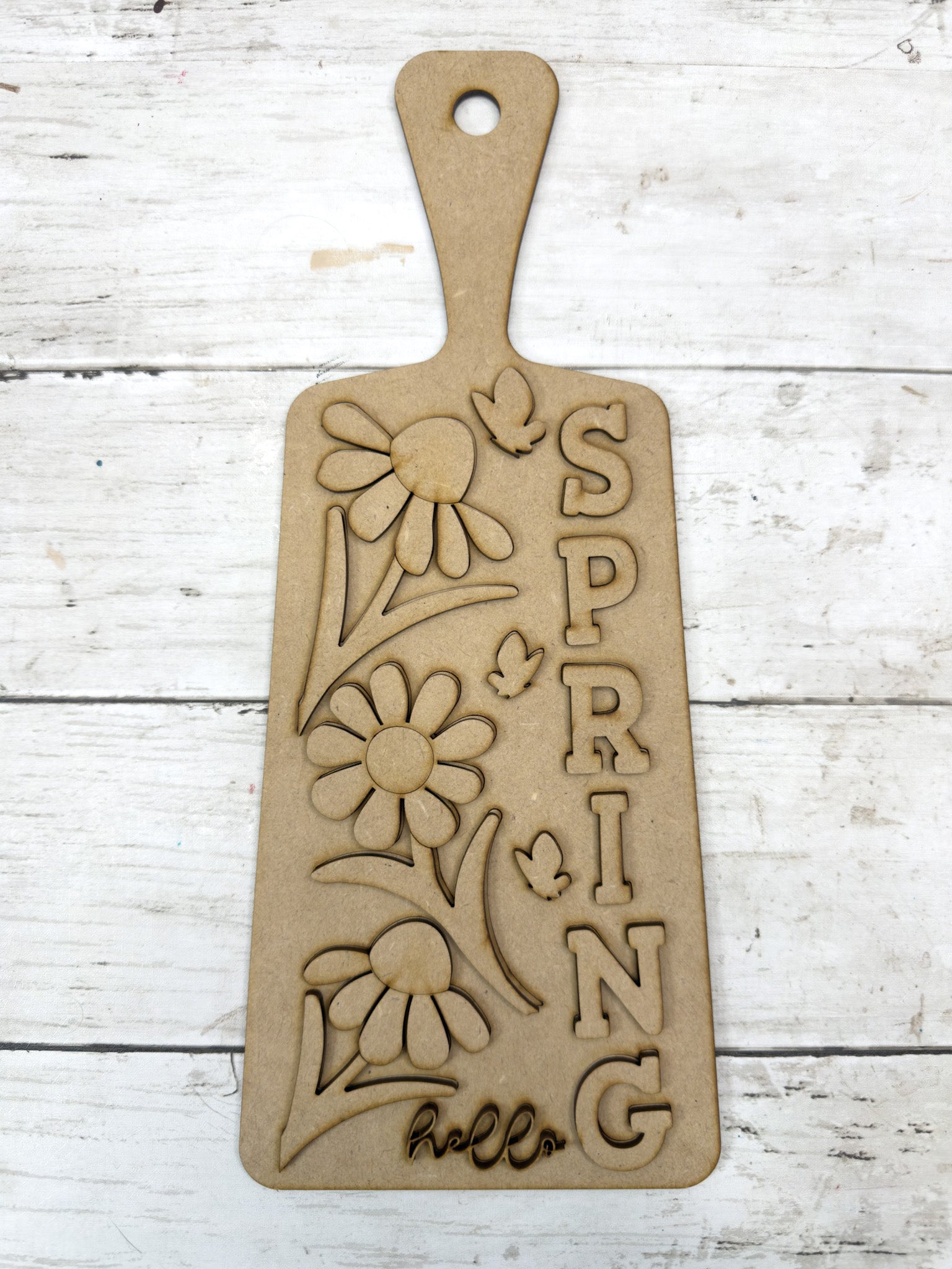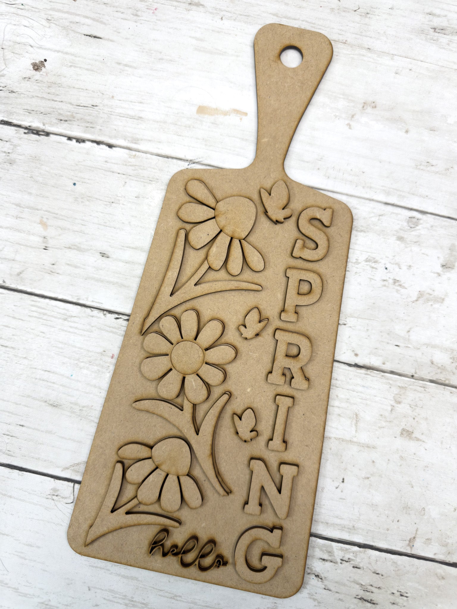 Bright, happy, and full of spring charm — this Spring Flowers Cutting Board Paddle DIY Kit is perfect for shelves, tiered trays, or adding a handmade touch to your seasonal décor. The layered floral design makes it fun to paint and easy to personalize.