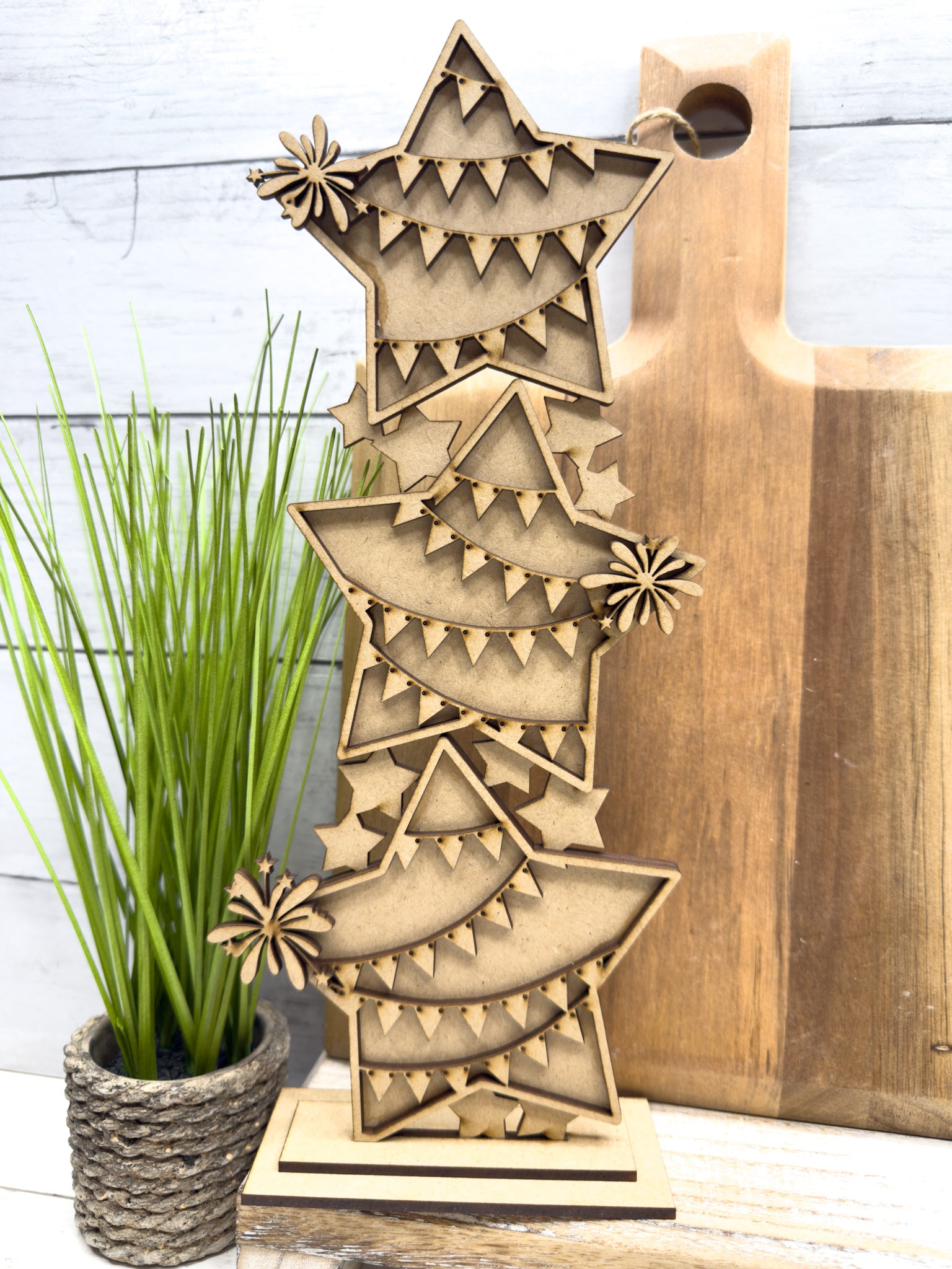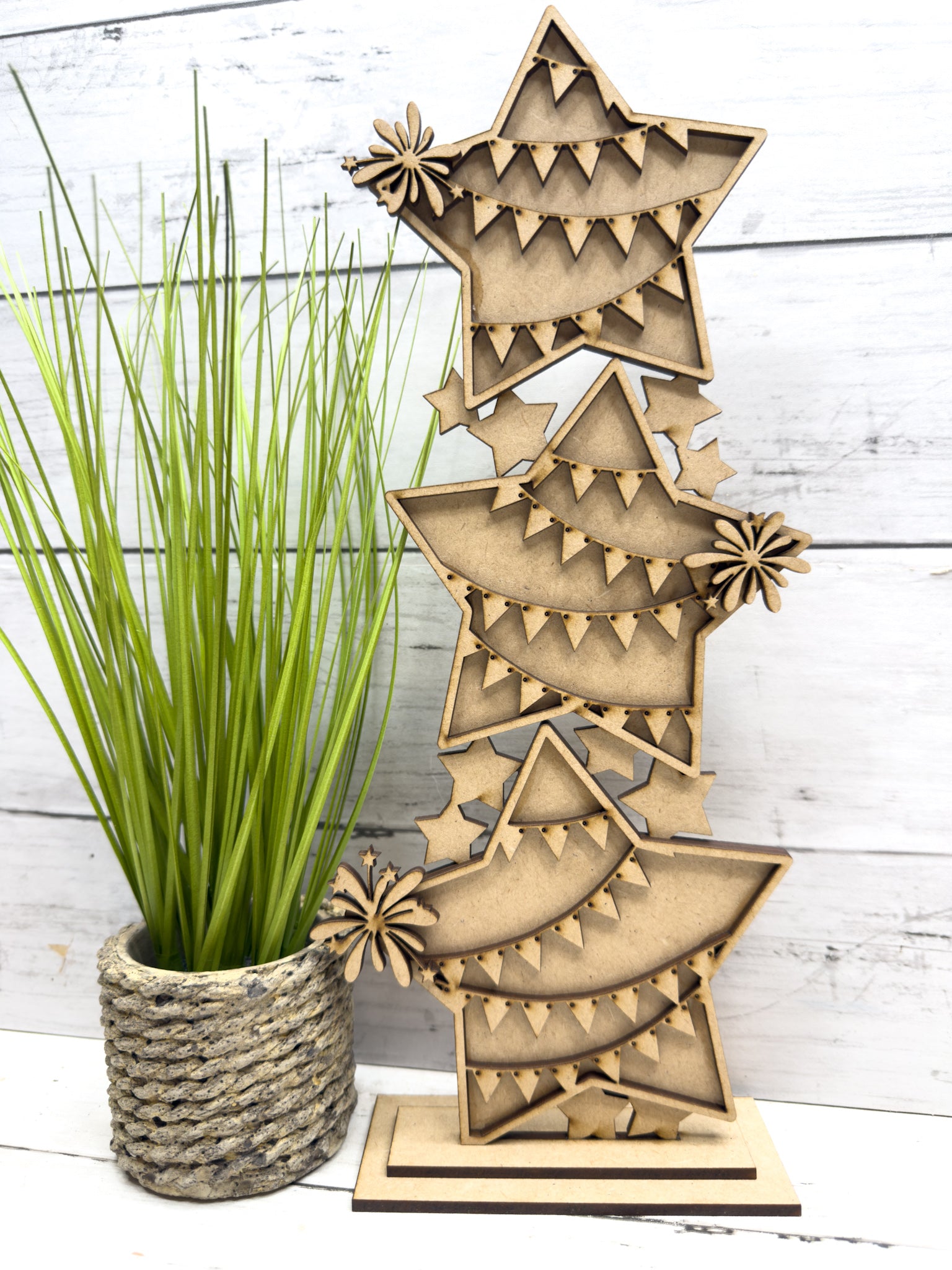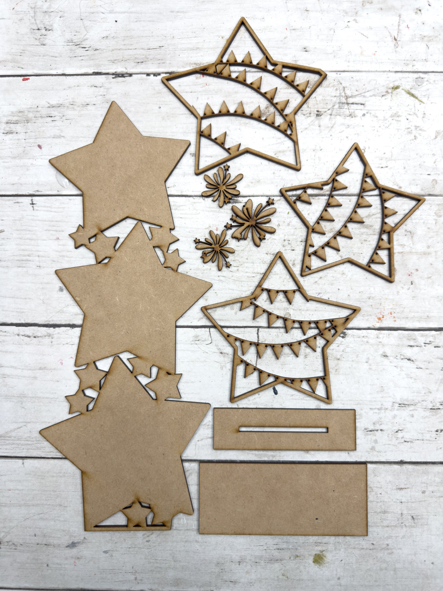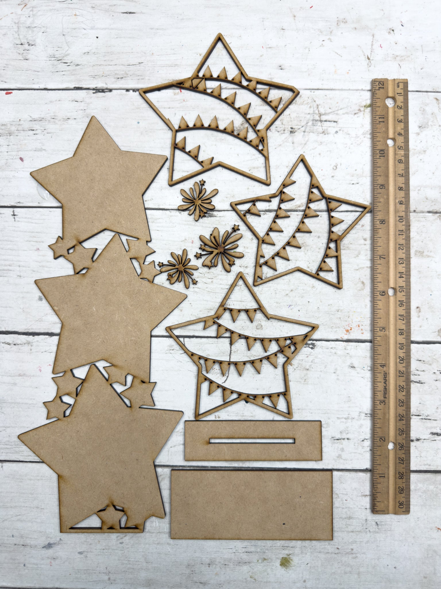 Celebrate freedom and creativity with this bold and festive Stacked “pennant ” Stars DIY Kit! Designed as a standing sitter, this piece makes a beautiful statement on shelves, mantles, tiered trays, or entryway displays.