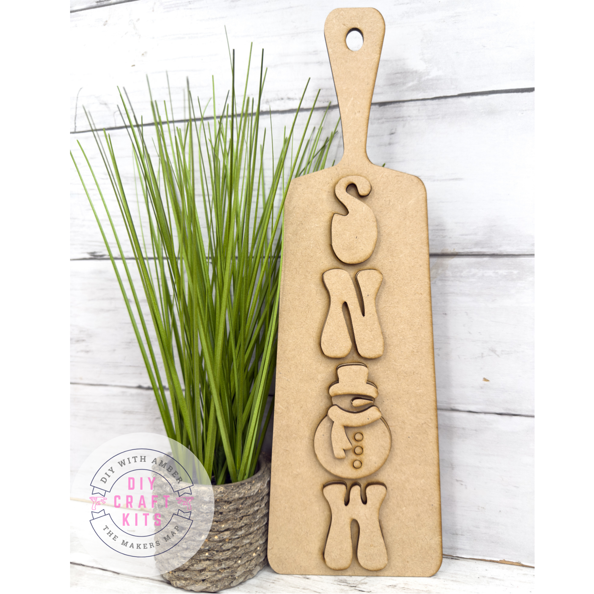 Add a handmade touch to your Christmas and winter decor with this DIY Snow Paddle Sign Wood Craft Kit! Made from durable 1/8” HDF (high-density fiberboard), this laser-cut kit features individual pieces that spell out S-N-O-W, with the “O” creatively designed as a snowman.