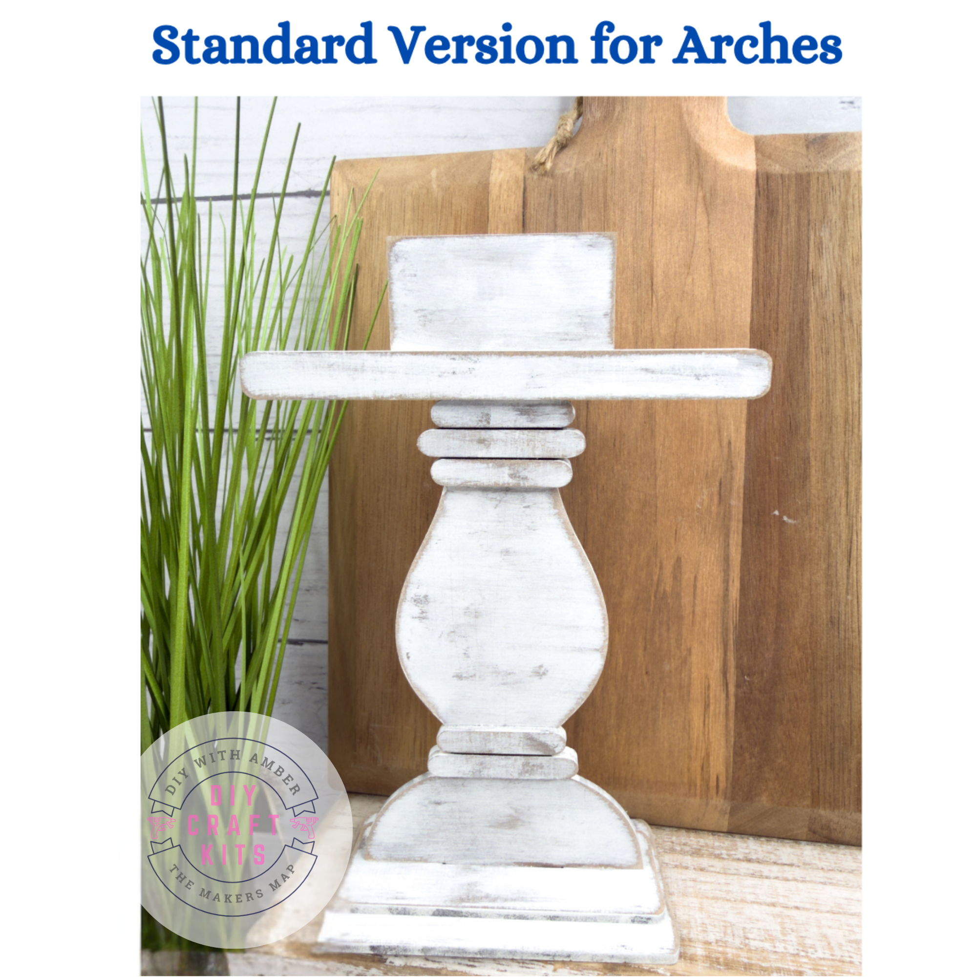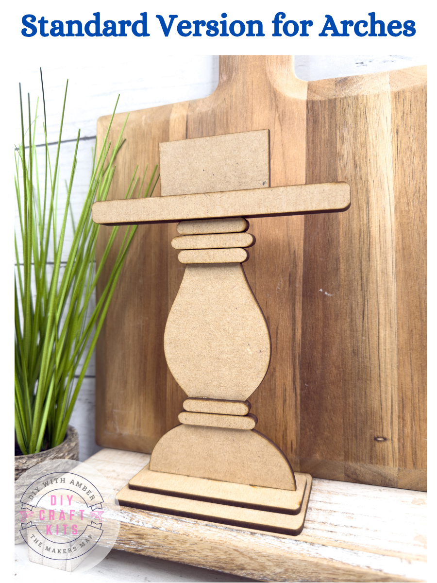 Designed to coordinate with our standard interchangeable arch insert series, this Standard wood base adds a charming touch to any shelf, tiered tray, or tabletop display. Its pedestal-style spindle design gives your arch pieces the perfect elevation to stand out in your holiday or everyday décor.
