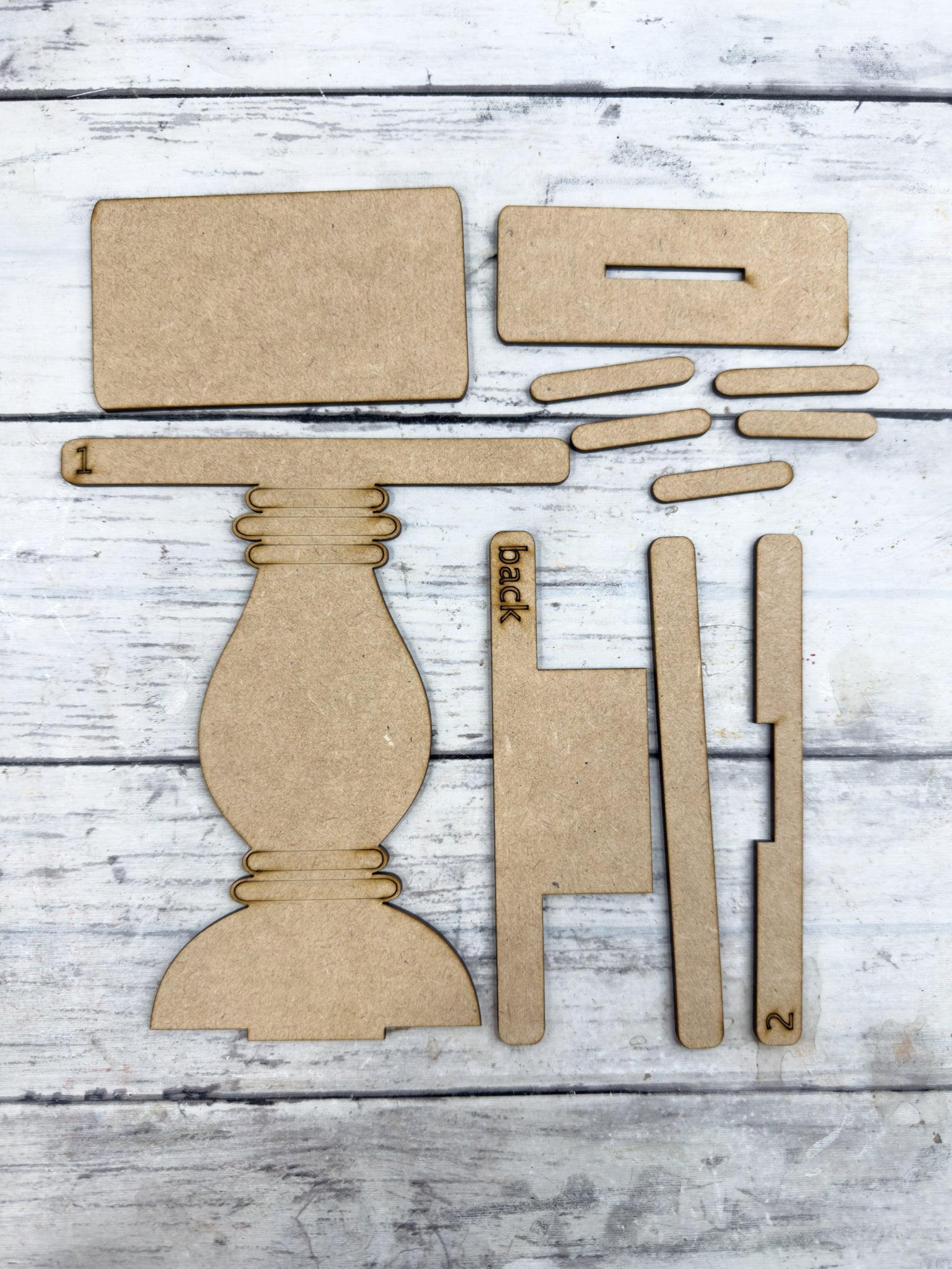 Laser cut from 1/8” HDF (High-Density Fiberboard)