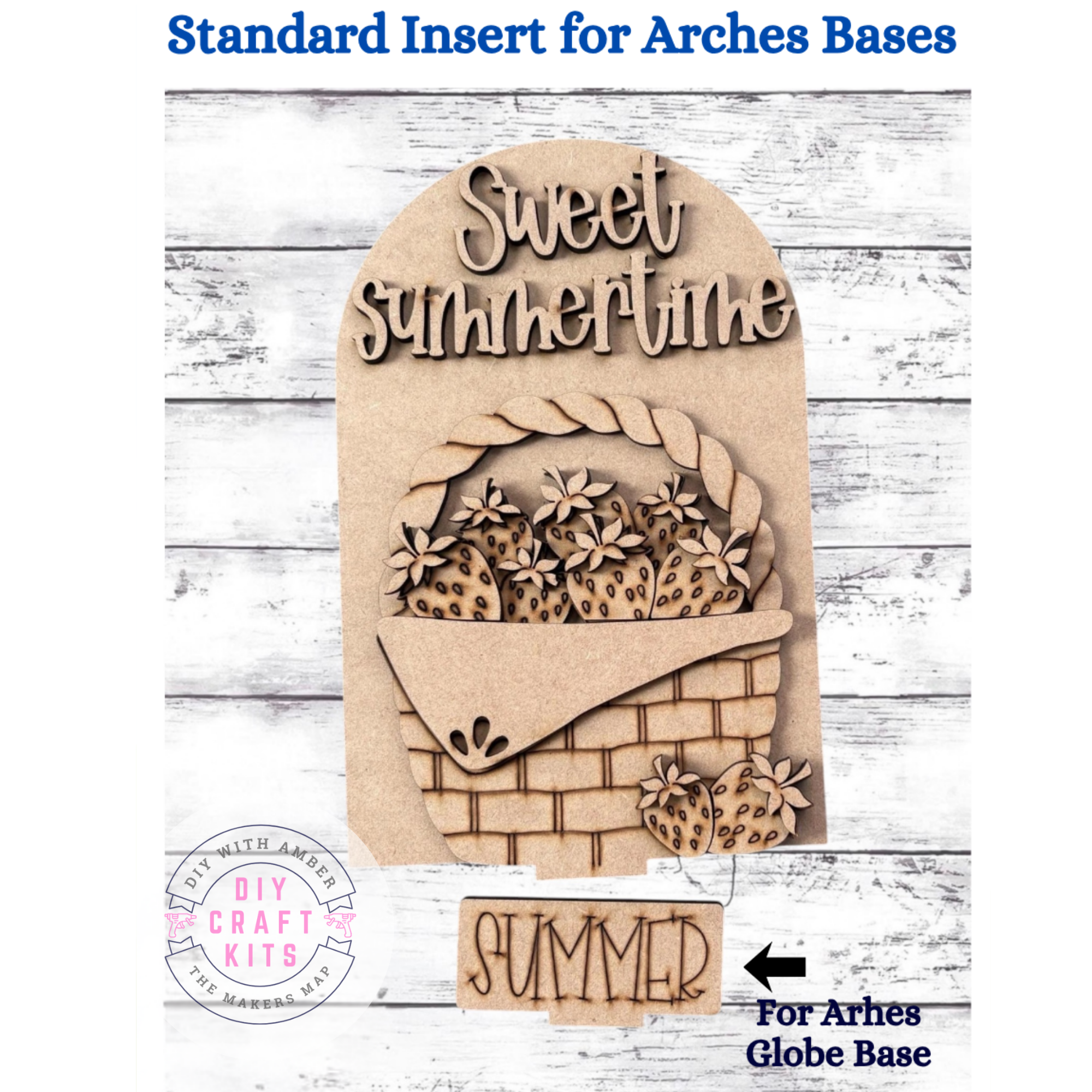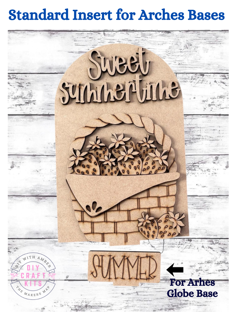 This fun wood insert is designed to fit perfectly into our Standard Arch Bases (Beaded Framed, Flat, Easel, Spindle, or Globe). It arrives unfinished and ready to paint, stain, and decorate — perfect for tiered trays, shelves, or seasonal home décor.