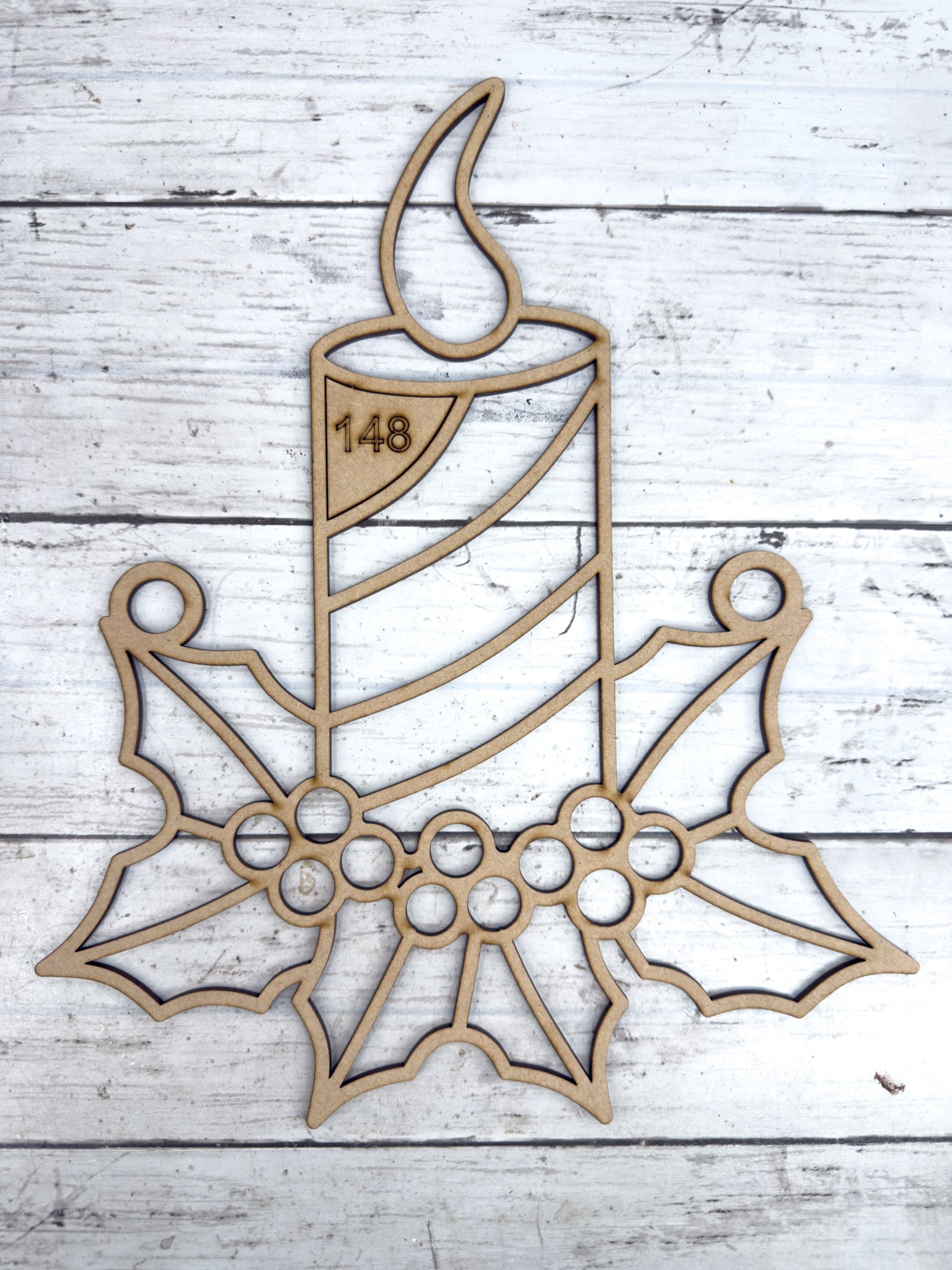 Style 148 Candle with Holly laser Cut Outline Frame Blank