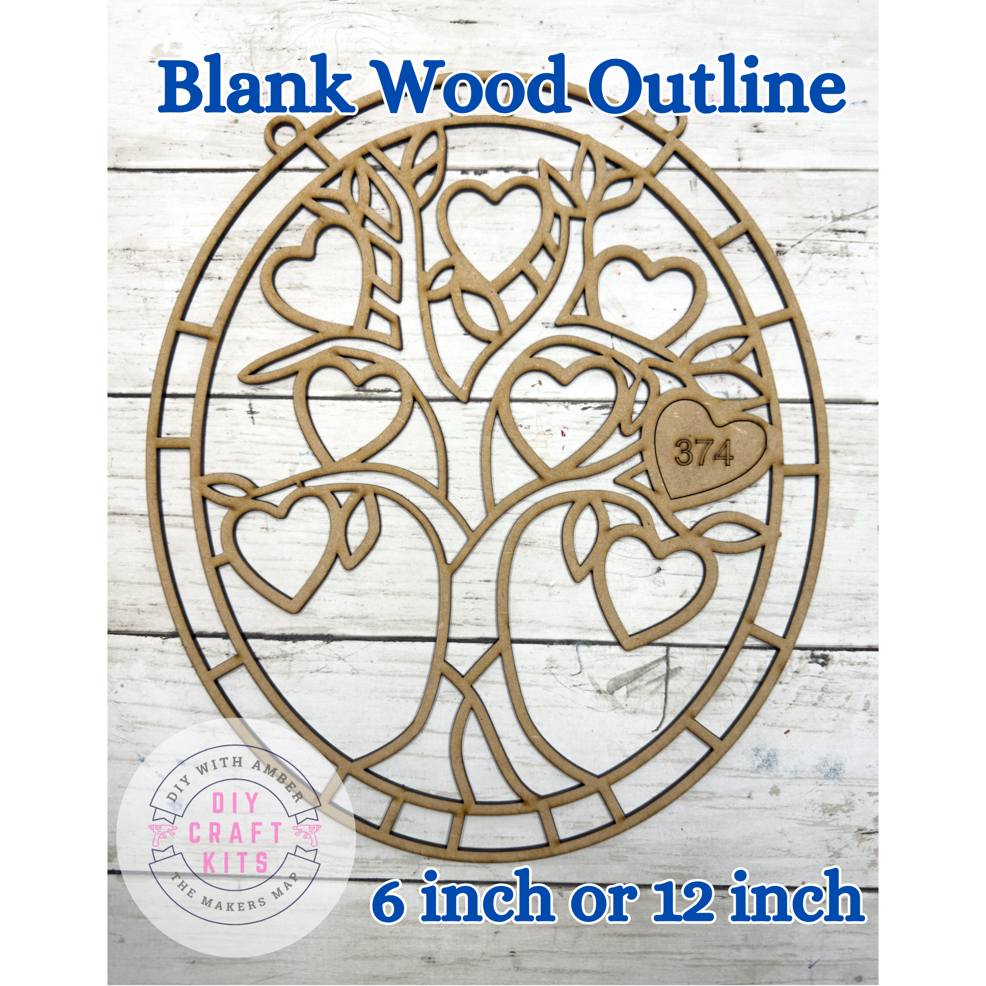 Style 374 Oval Heart Tree Laser Cut Outline Frame Blank