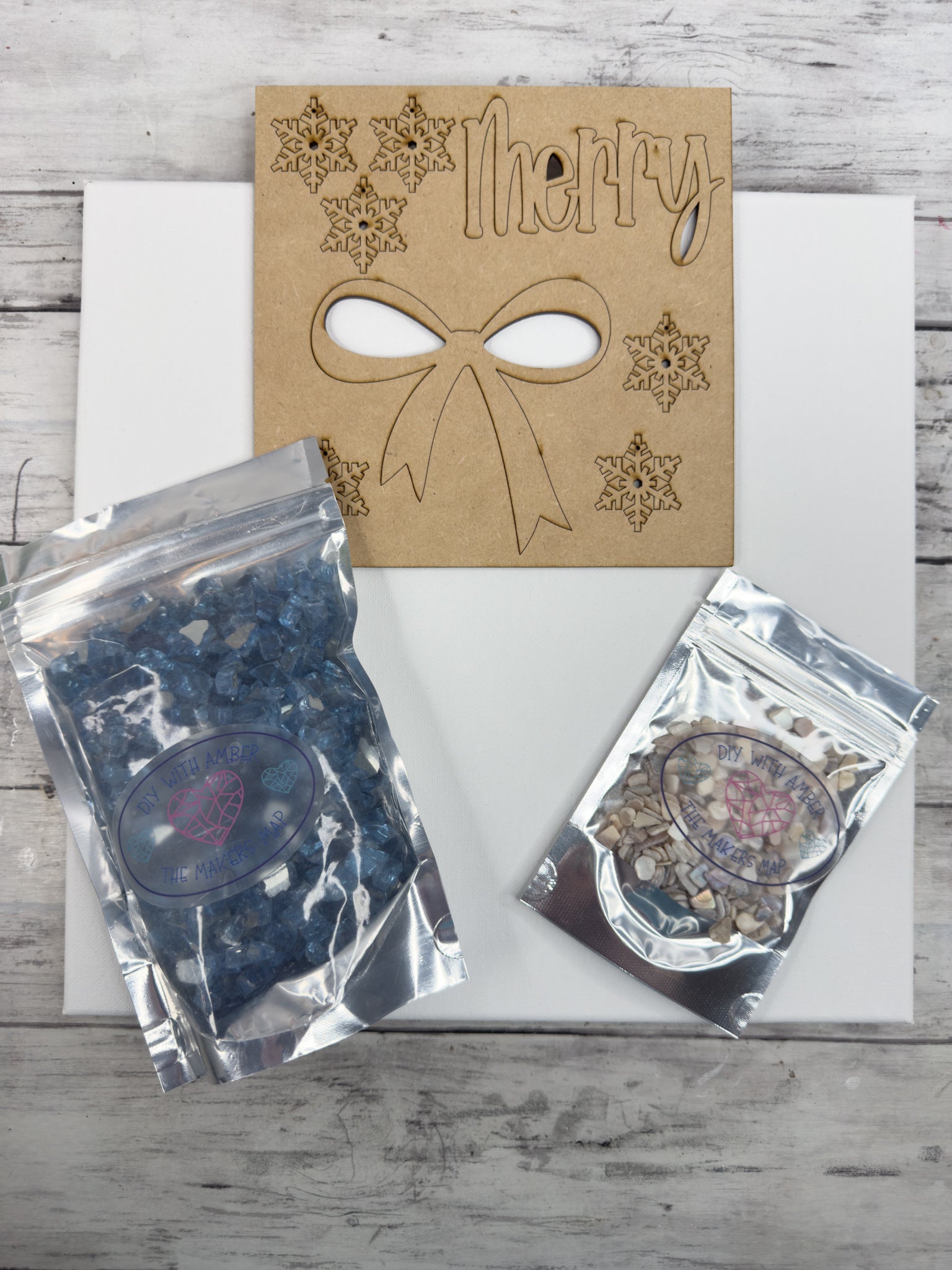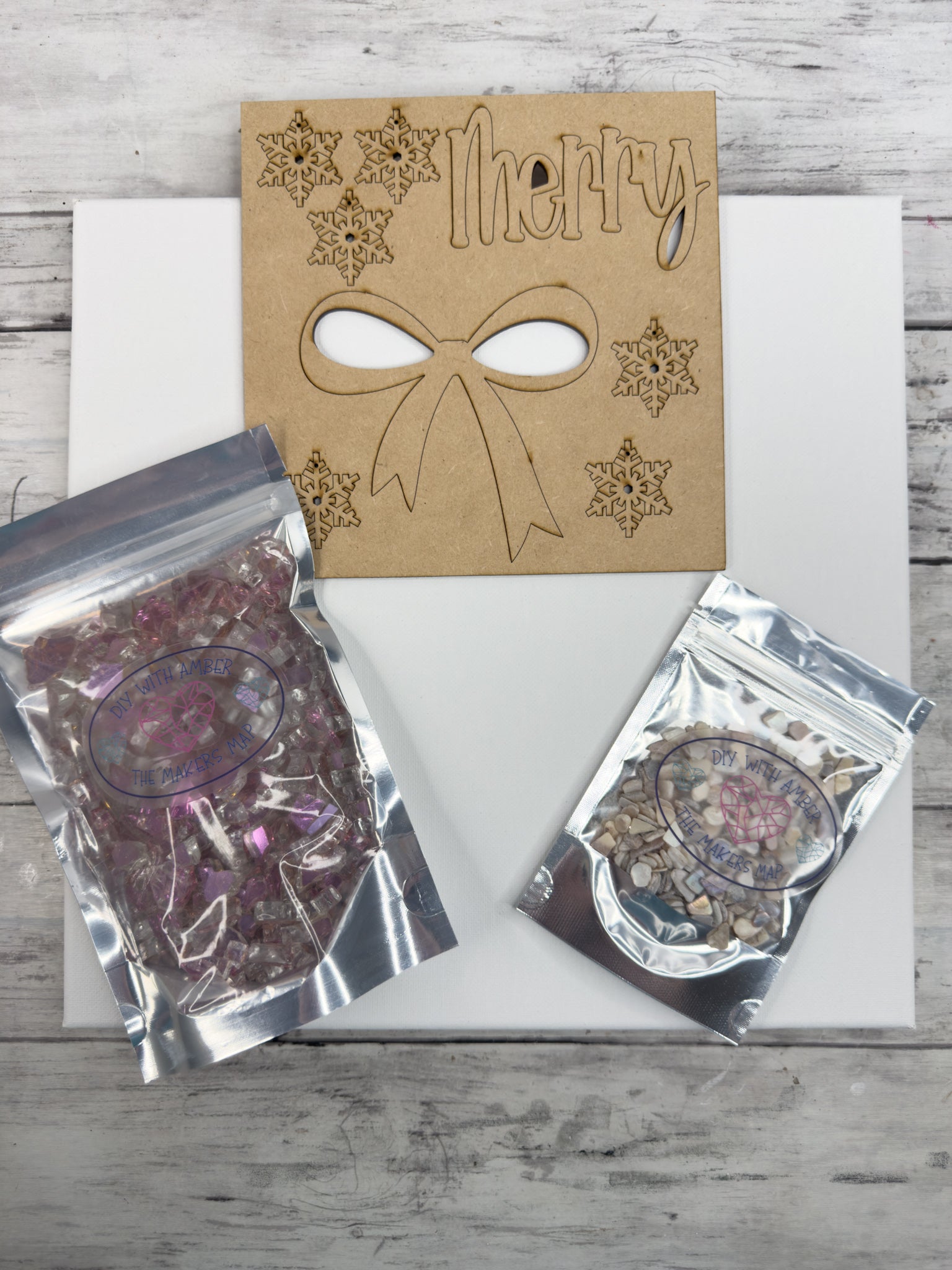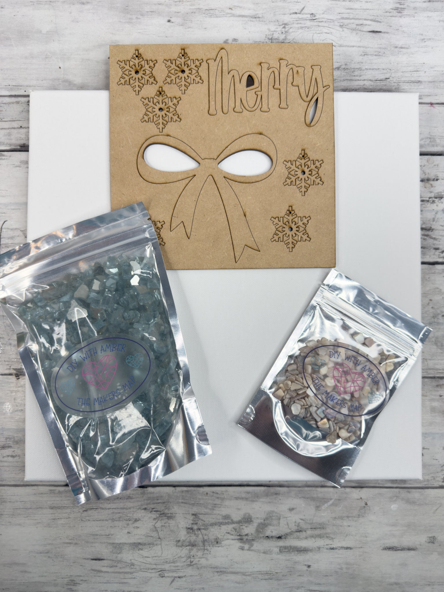 Create beautiful crushed glass Wreath canvas art with this kit. Purchase resin here